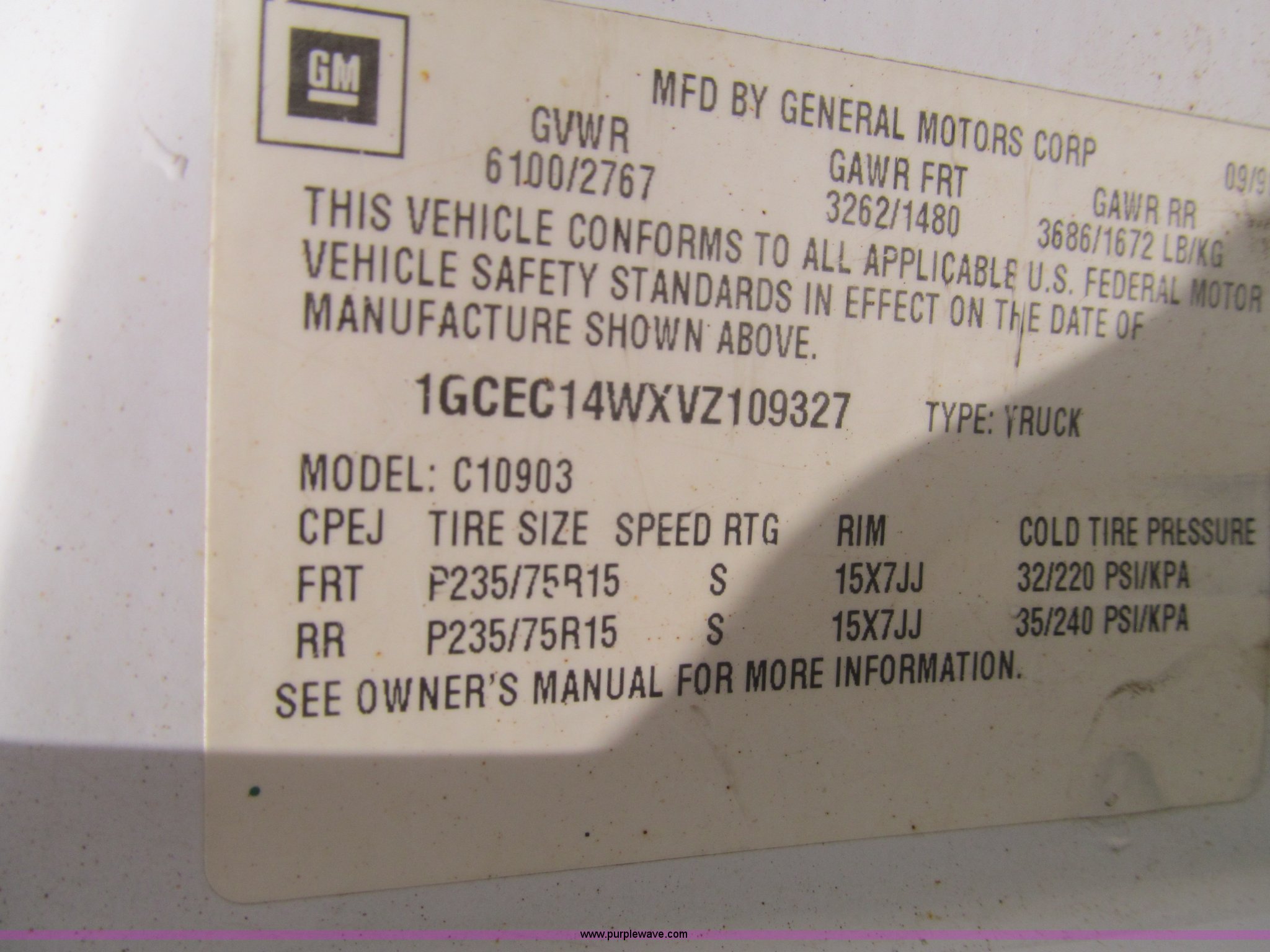 Purple Wave is selling a used 1/2 Ton Pickup or Van in Kansas. This item is a 1997 Chevrolet 1500 pickup truck with the following: 102,609 actual miles, 4.3L V6 OHV 12V gas engine, Automatic transmission, AC and heat, AM/FM, Manual windows and locks, Cloth interior, Headache rack, LT235/75R15 tires, Exterior cosmetic damage, Rust