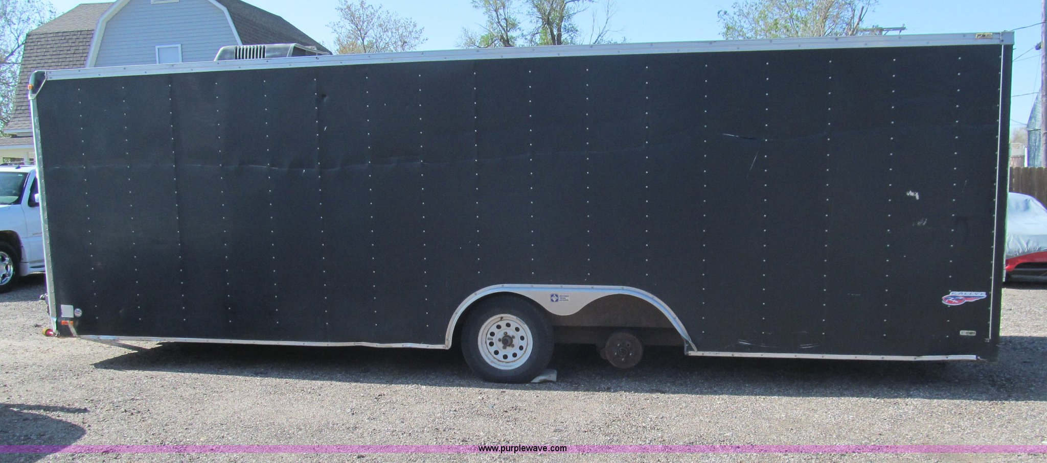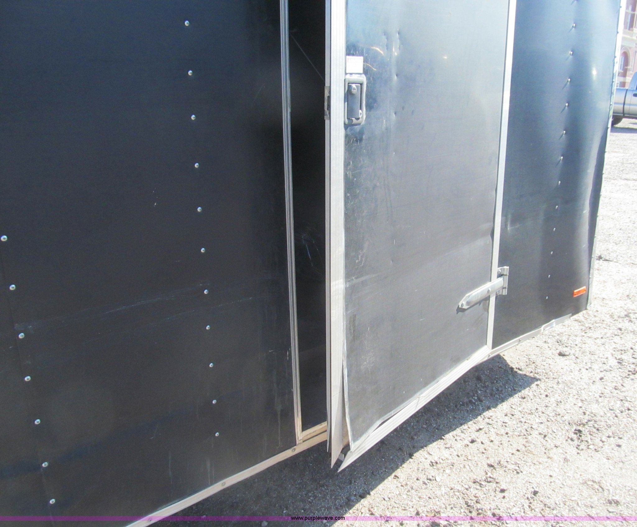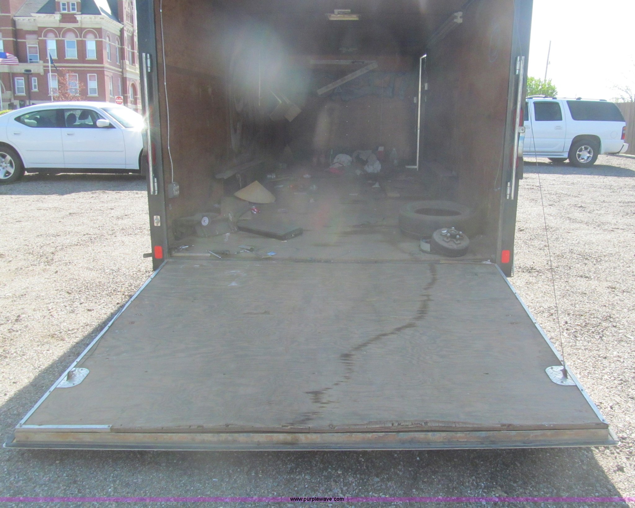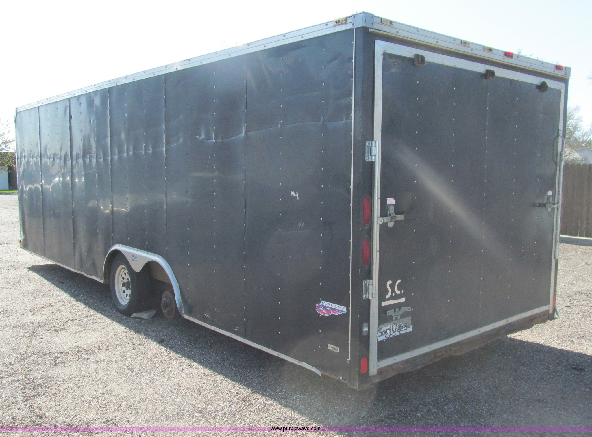 Purple Wave is selling a used Enclosed Cargo Trailer in Kansas. This item is a 2004 Pace American enclosed cargo trailer with the following: 24'L, Drop down rear ramp door, Cable and spring assist, Right side walk through door, Damaged, Interior lights, 2" ball hitch, 205/75R15 tires, One has been removed, GVWR 7,000 lbs, Landing gear has been removed, Exterior cosmetic damage