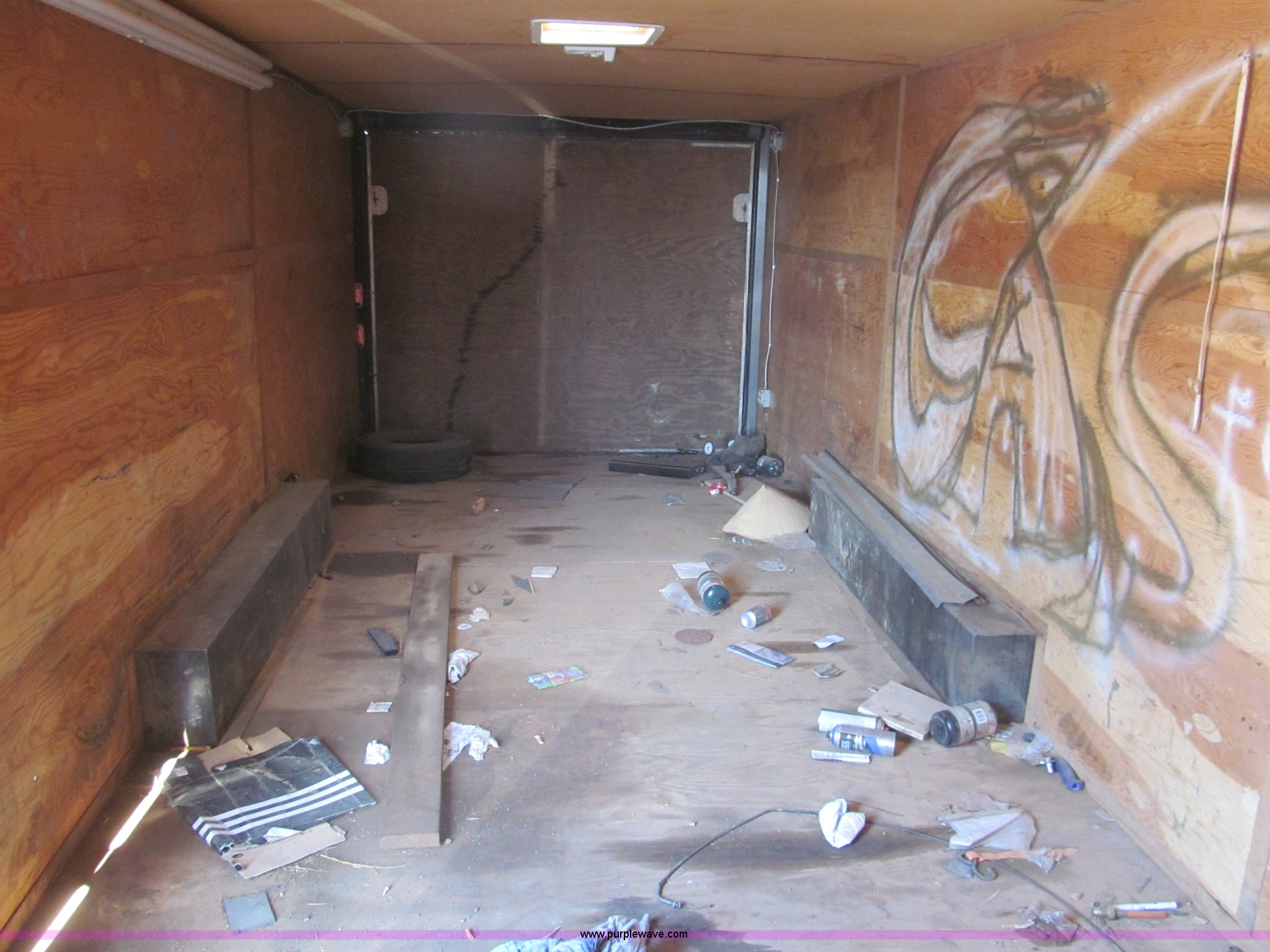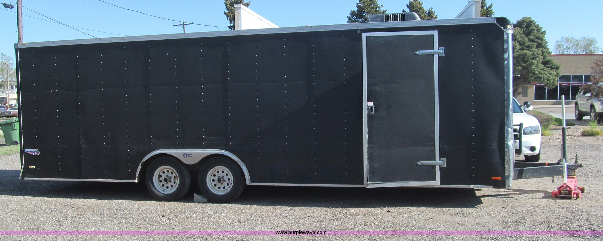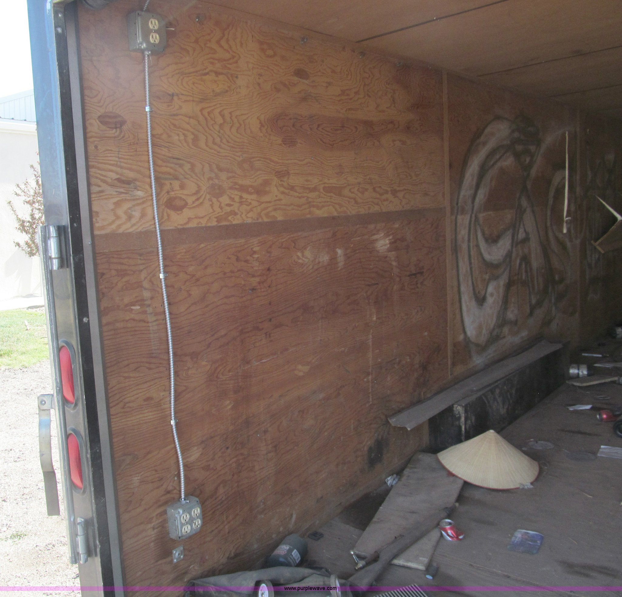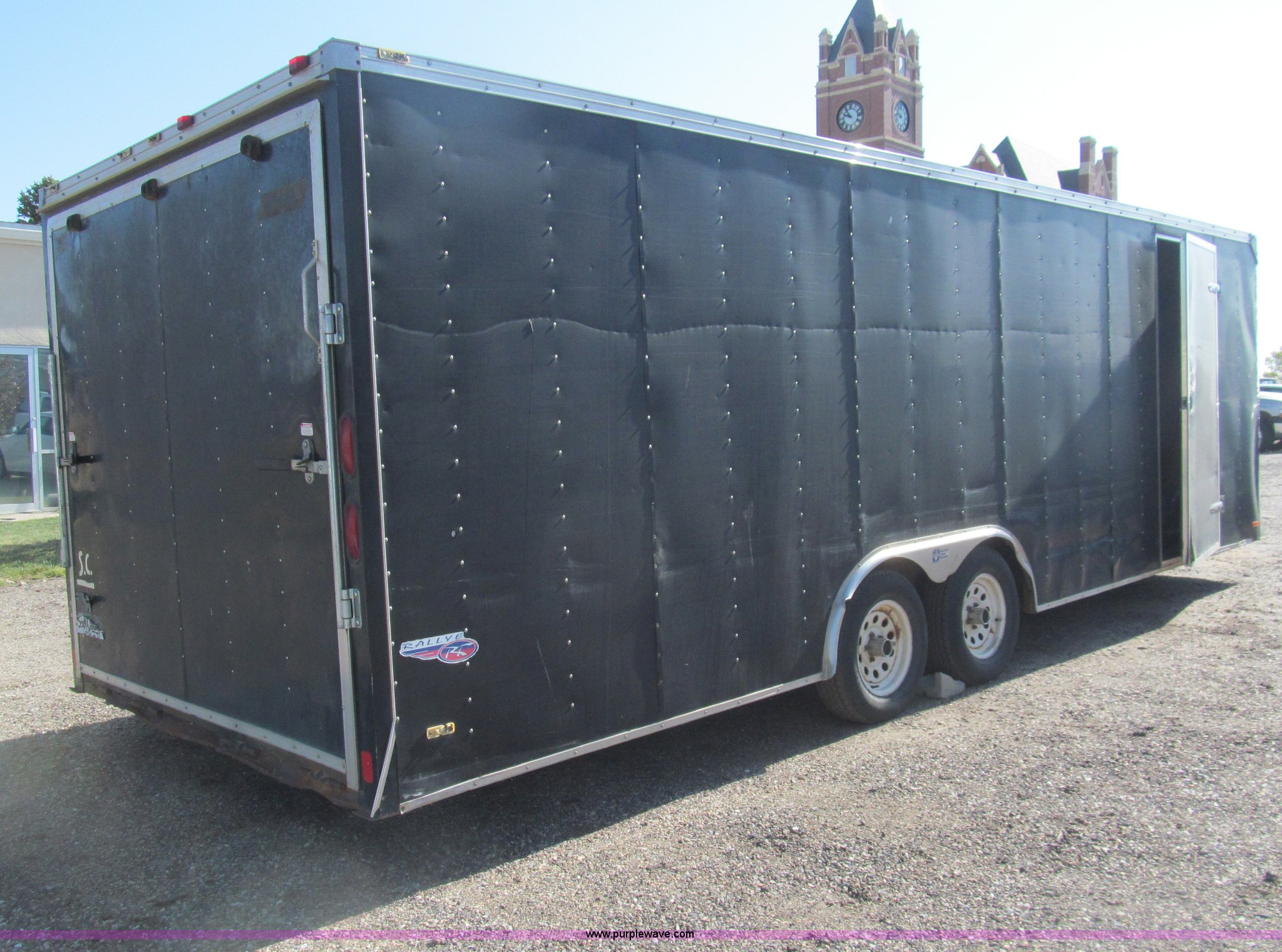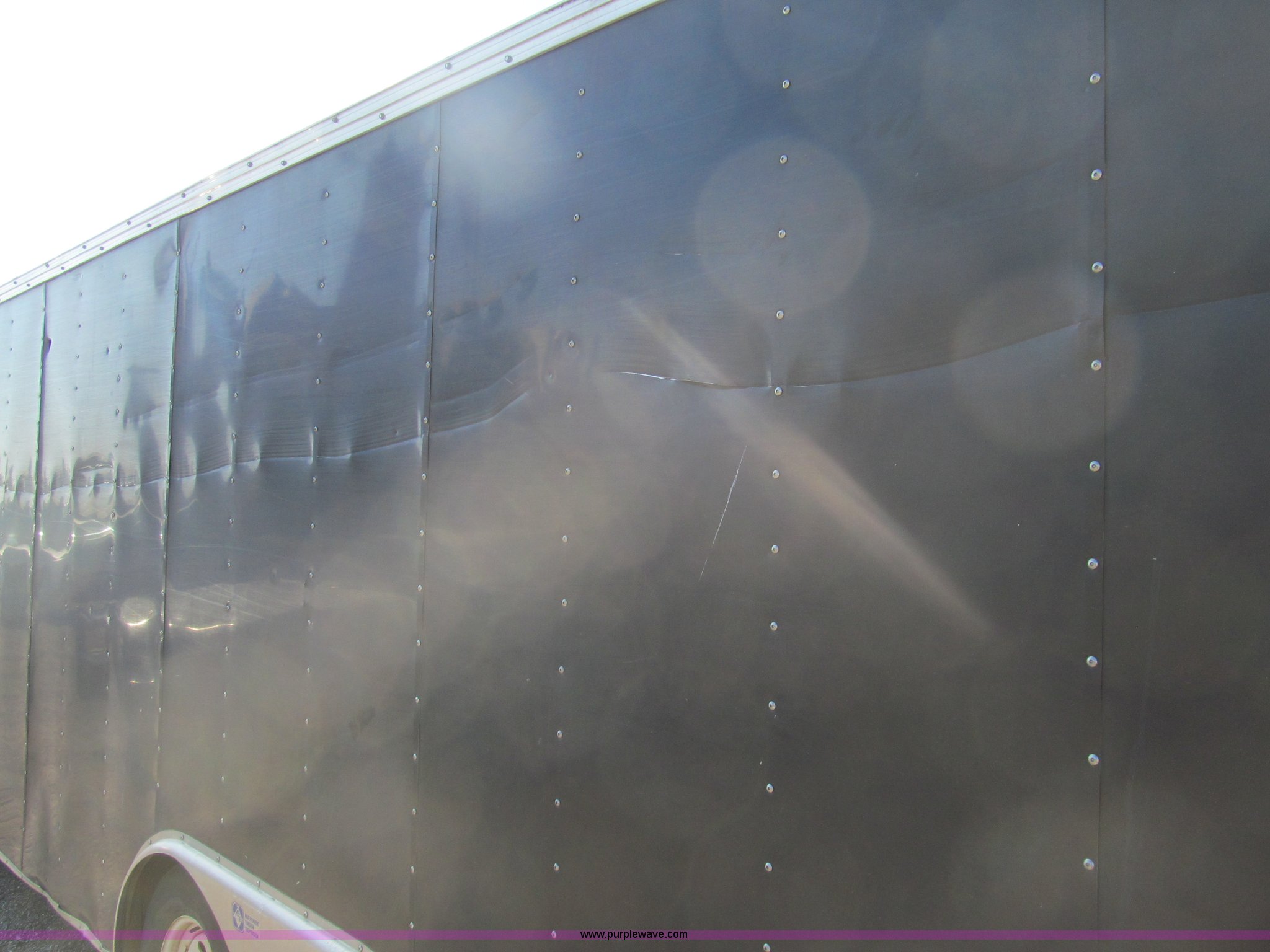 Purple Wave is selling a used Enclosed Cargo Trailer in Kansas. This item is a 2004 Pace American enclosed cargo trailer with the following: 24'L, Drop down rear ramp door, Cable and spring assist, Right side walk through door, Damaged, Interior lights, 2" ball hitch, 205/75R15 tires, One has been removed, GVWR 7,000 lbs, Landing gear has been removed, Exterior cosmetic damage