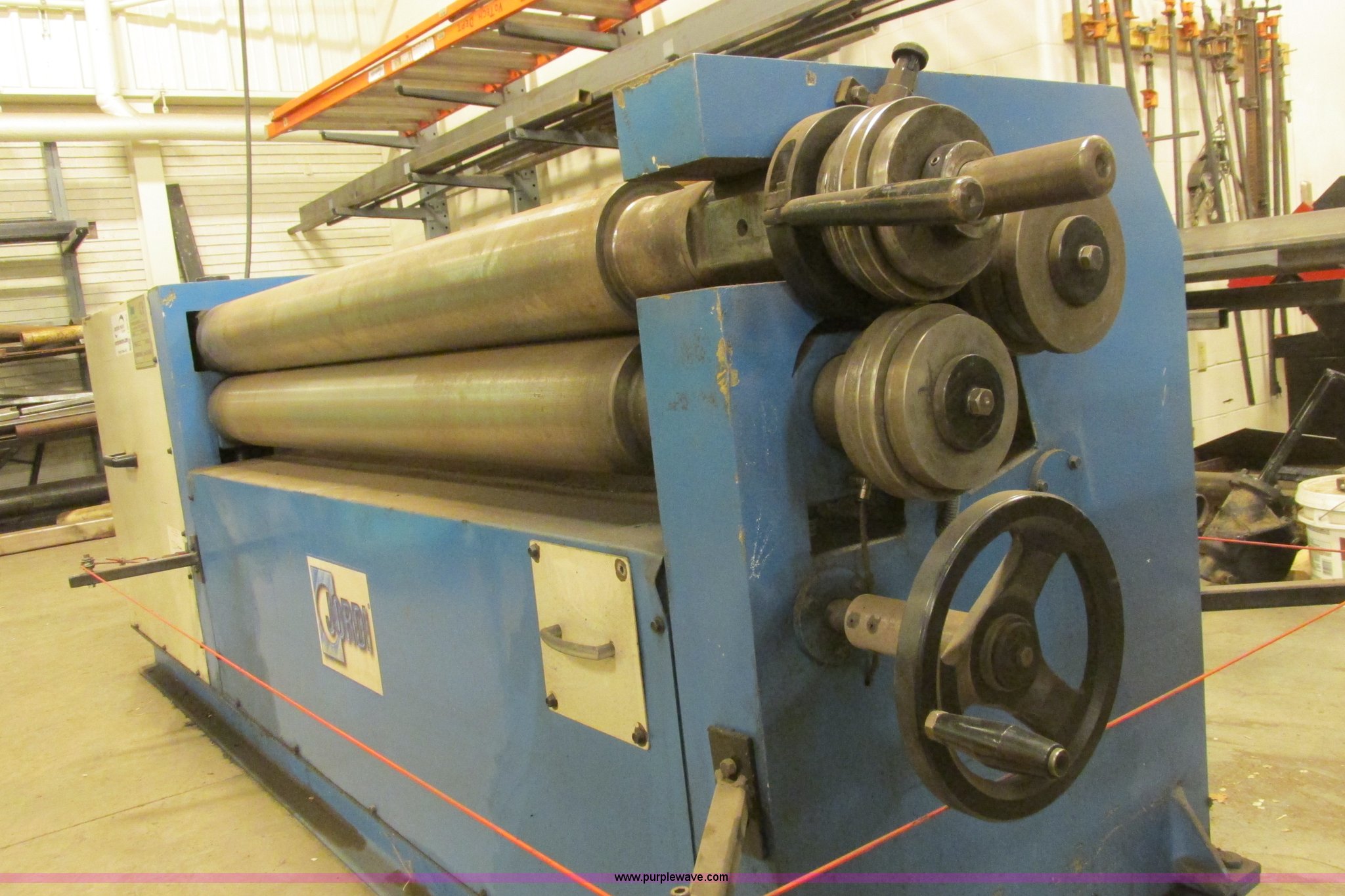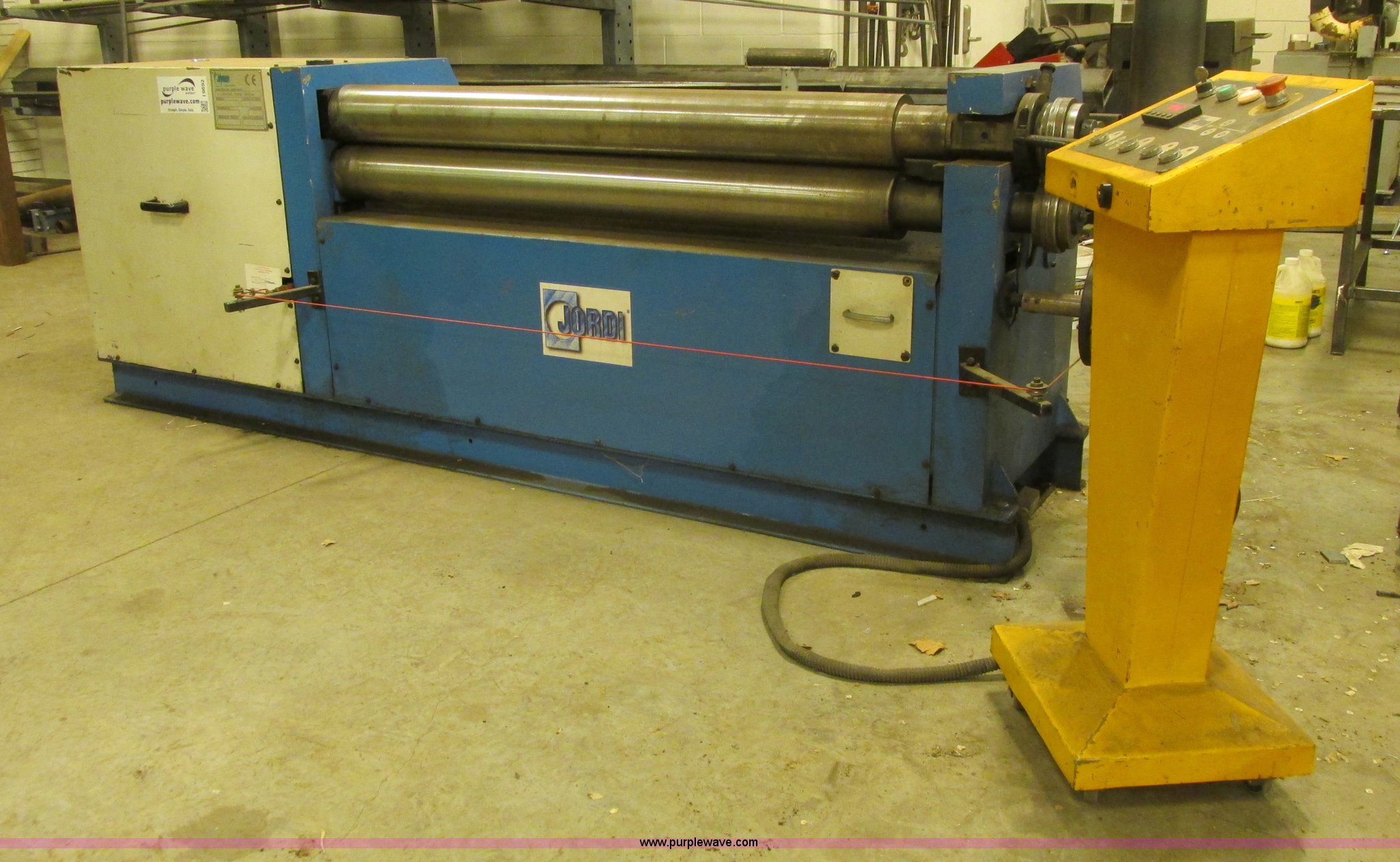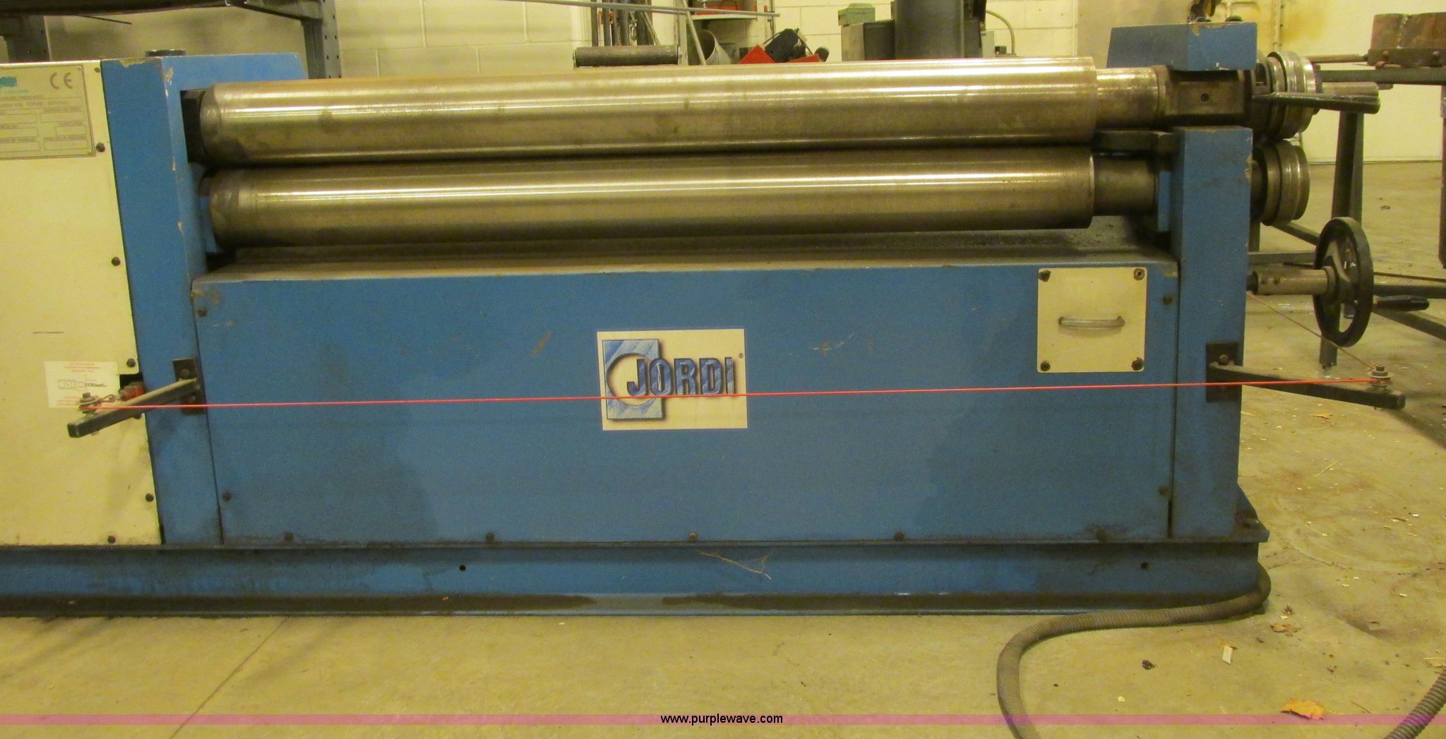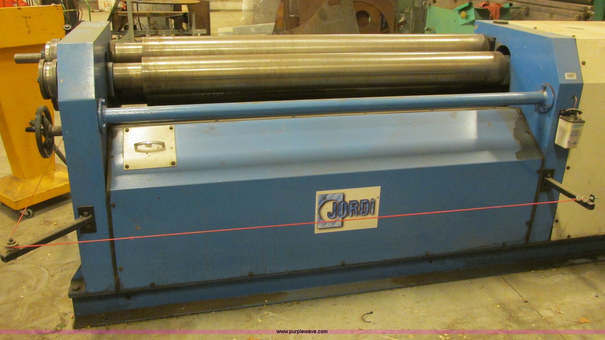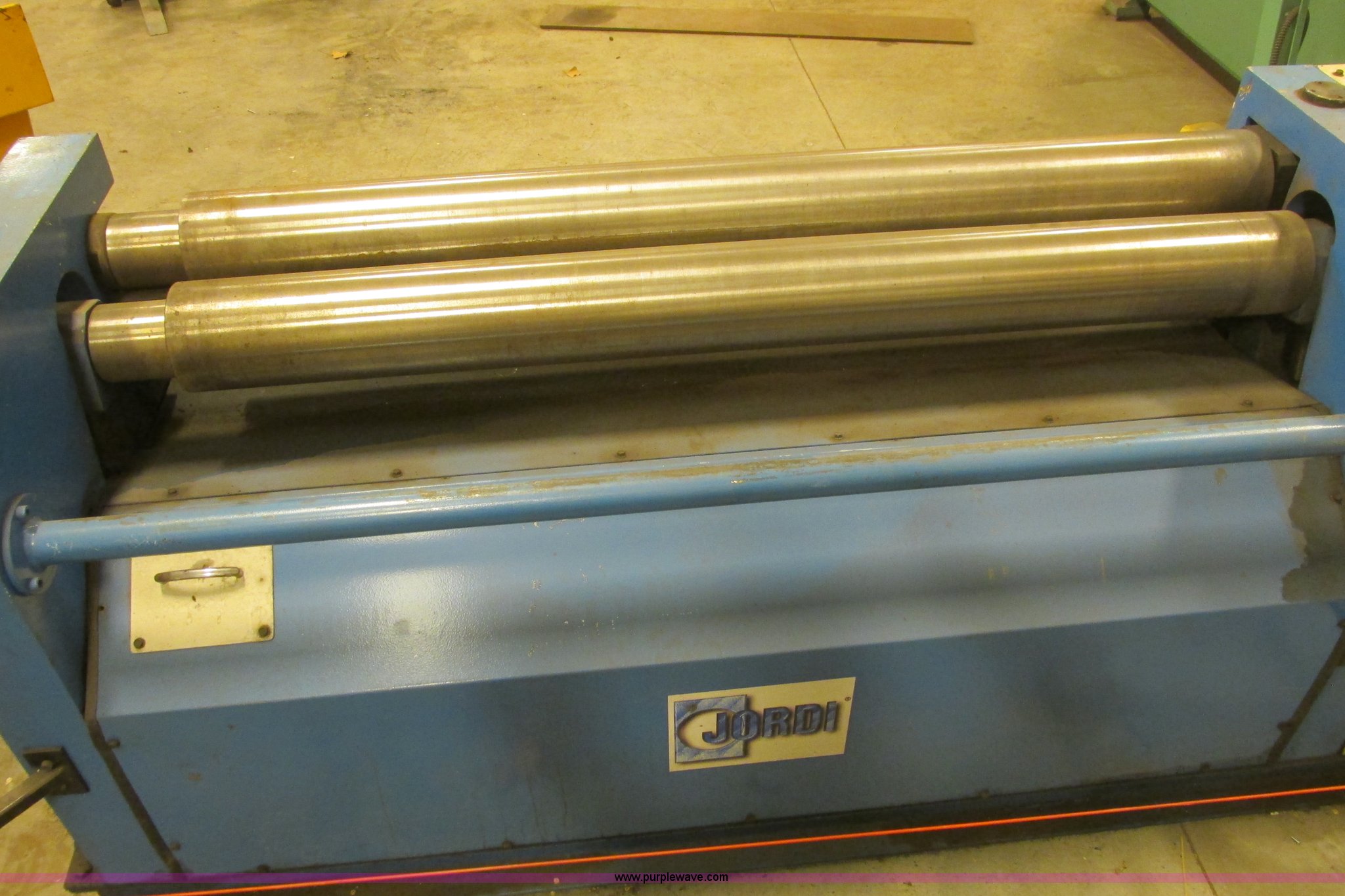 Purple Wave is selling a used Presses in Kansas. This item is a Jordi CHAA-1550-6-7 hydraulic plate bending machine with the following: 11'L x 3.5'W x 41"H, 5' capacity, Three roll, Three phase, 380V, Stand alone controller, Serial 170704