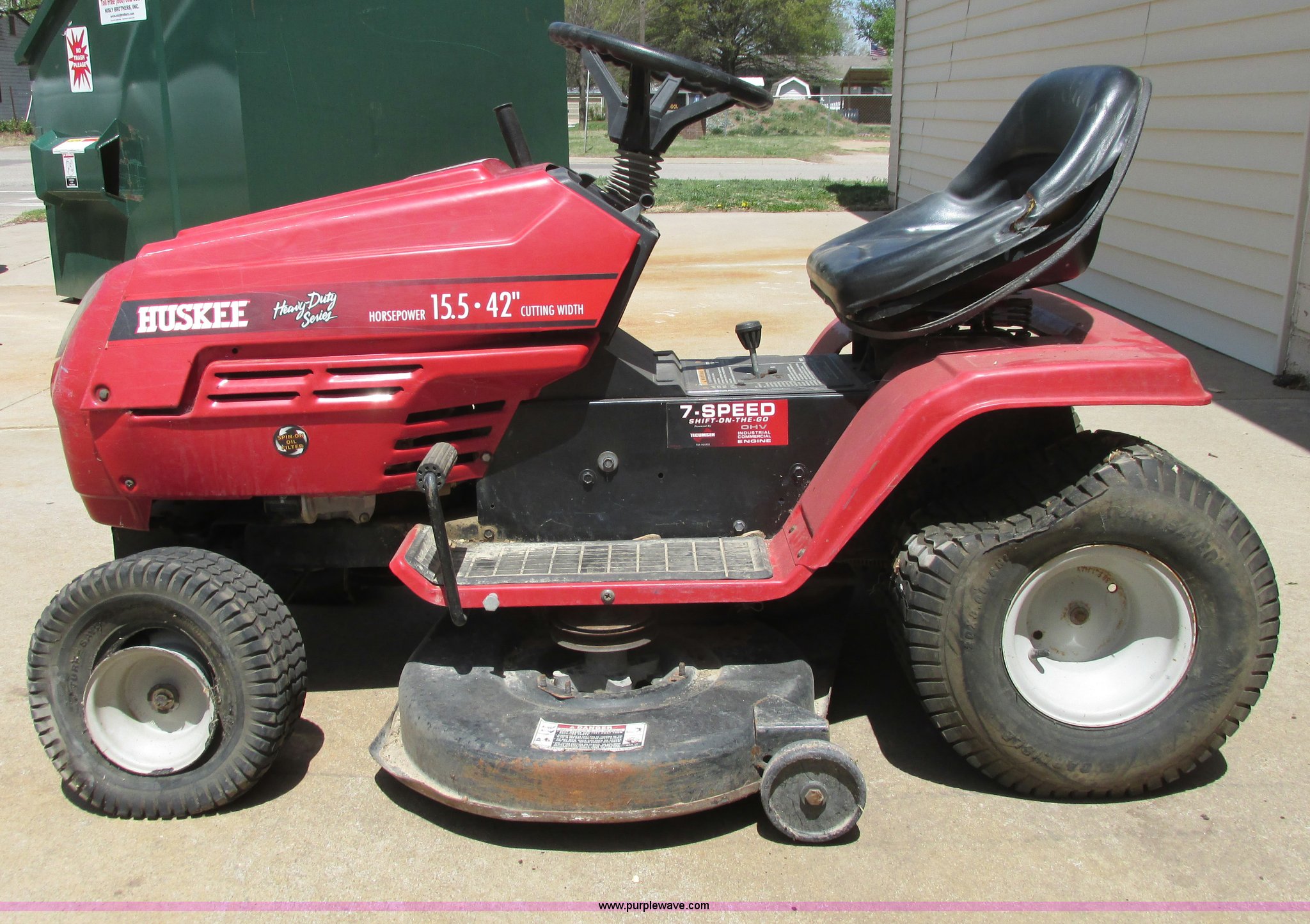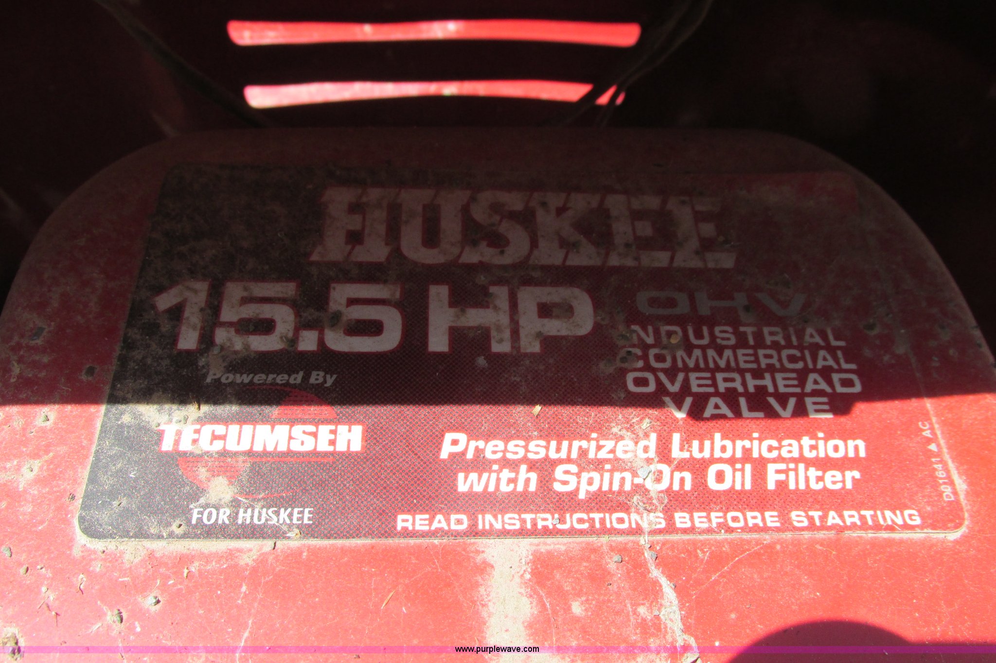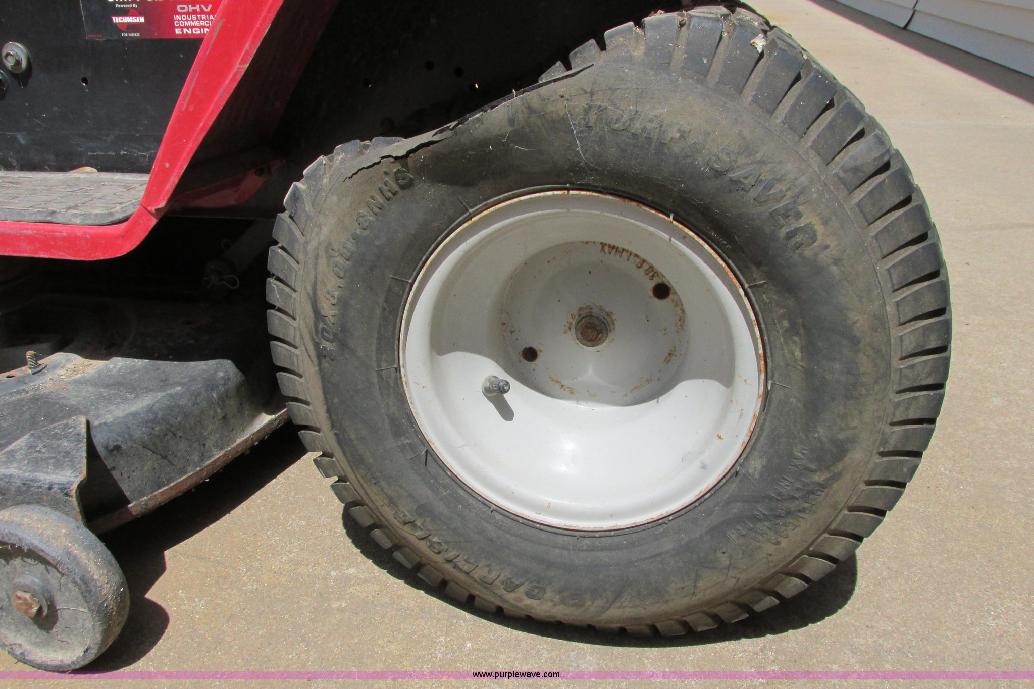 Purple Wave is selling a used Commercial Turf Mower in Kansas. This item is a Husky lawn mower with the following: 42" cutting capacity, Tecumseh 15.5 HP gas engine, Seven speed shift on the go transmission, Belts missing, Back tires have slow leak, Unknown operating condition, Unit has been sitting for at least three years
