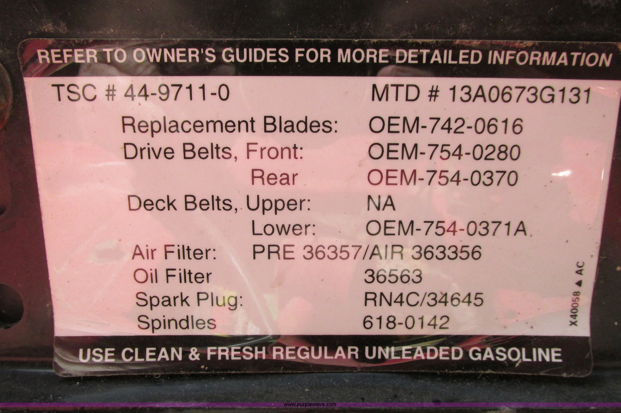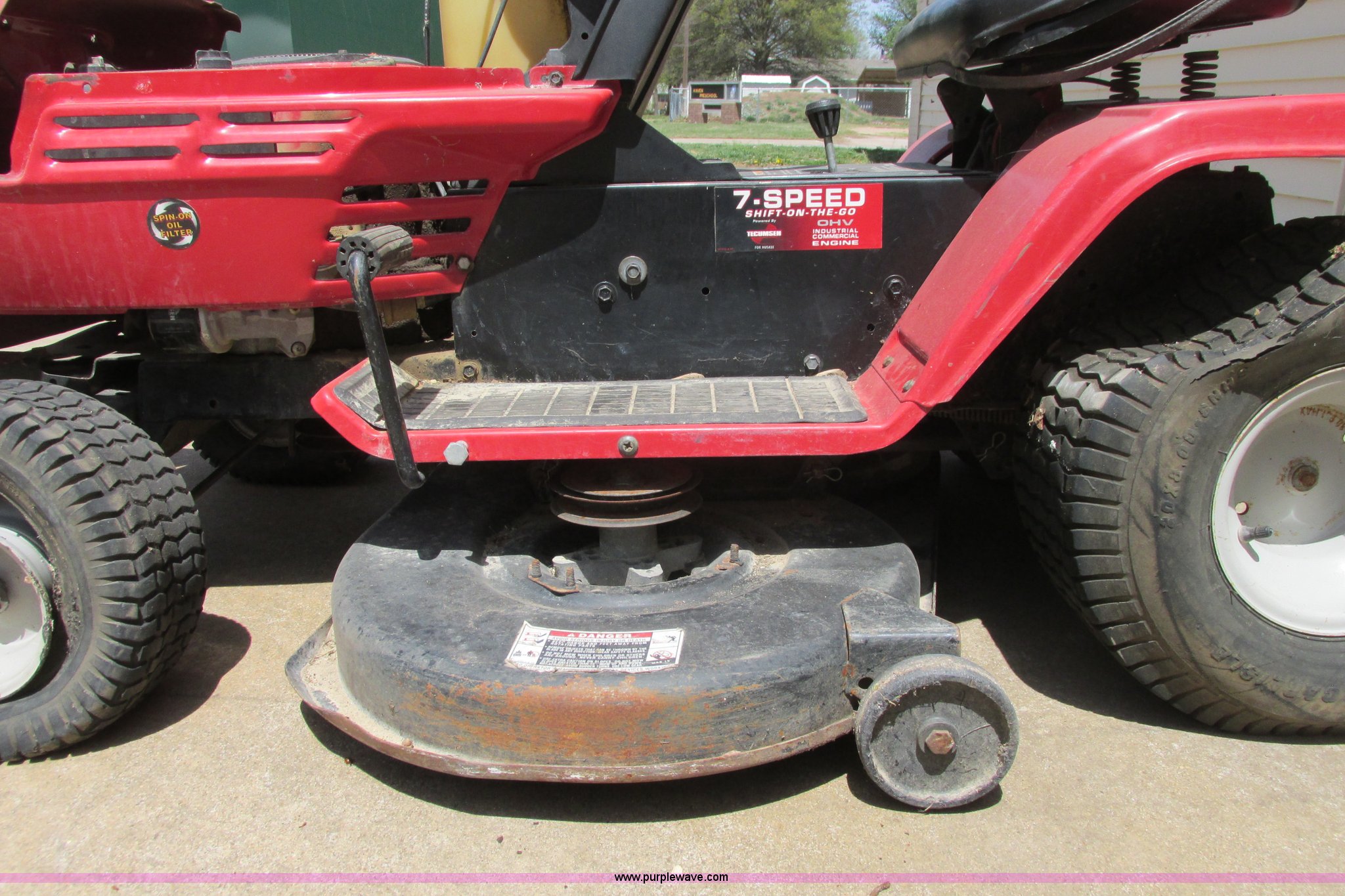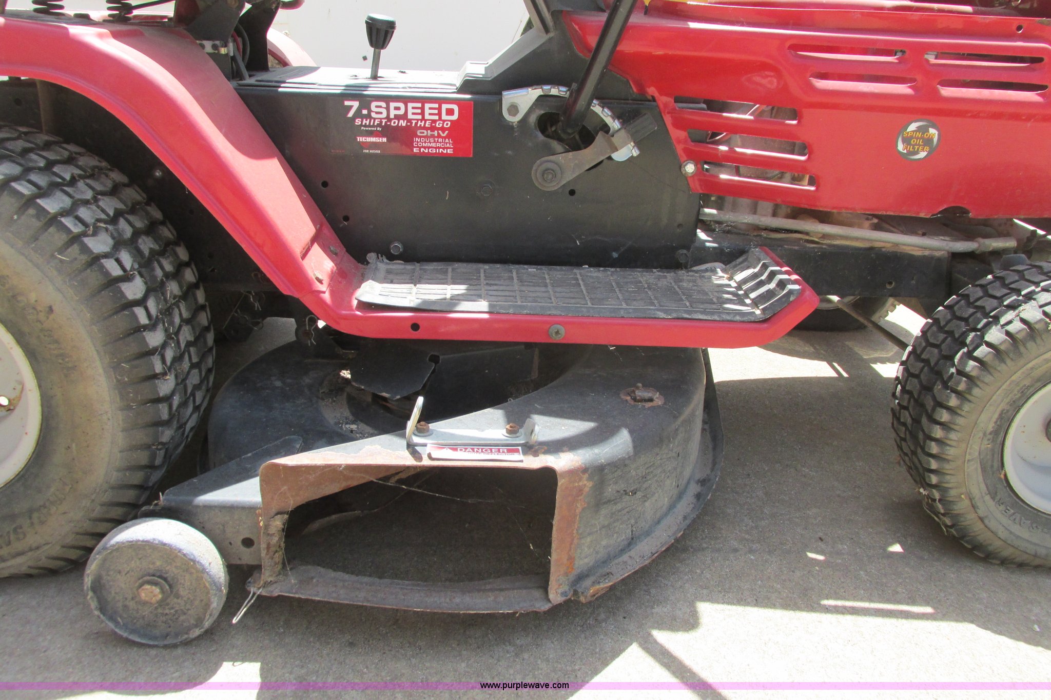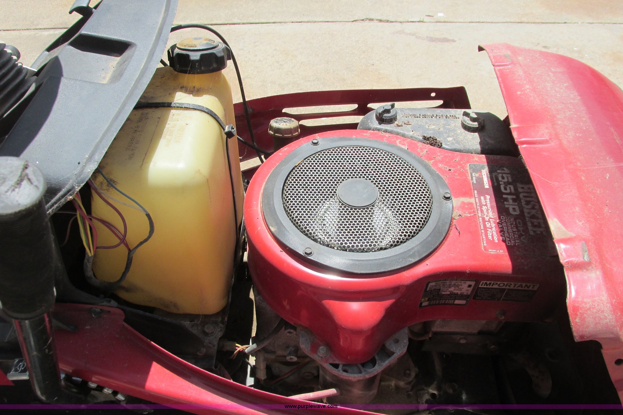 Purple Wave is selling a used Commercial Turf Mower in Kansas. This item is a Husky lawn mower with the following: 42" cutting capacity, Tecumseh 15.5 HP gas engine, Seven speed shift on the go transmission, Belts missing, Back tires have slow leak, Unknown operating condition, Unit has been sitting for at least three years