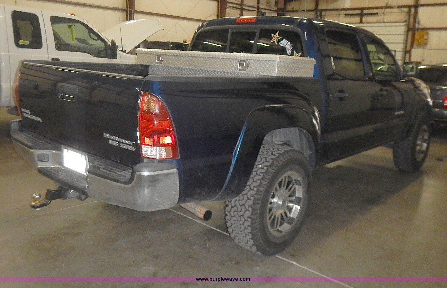 Purple Wave is selling a used Compact Pickup or Van in Kansas. This item is a 2006 Toyota Tacoma PreRunner Double Cab pickup truck with the following: 88,273 miles on odometer, 4.0L V6 DOHC 24V gas engine, Automatic transmission, AC and heat, Tilt, AM/FM/CD, Power windows, locks, and mirrors, Cloth interior, Fog lights, Rear sliding window, Bed liner, Toolbox, Receiver hitch, Trailer wiring, 265/70R17 tires, Dead battery, Unattached rear view mirror included