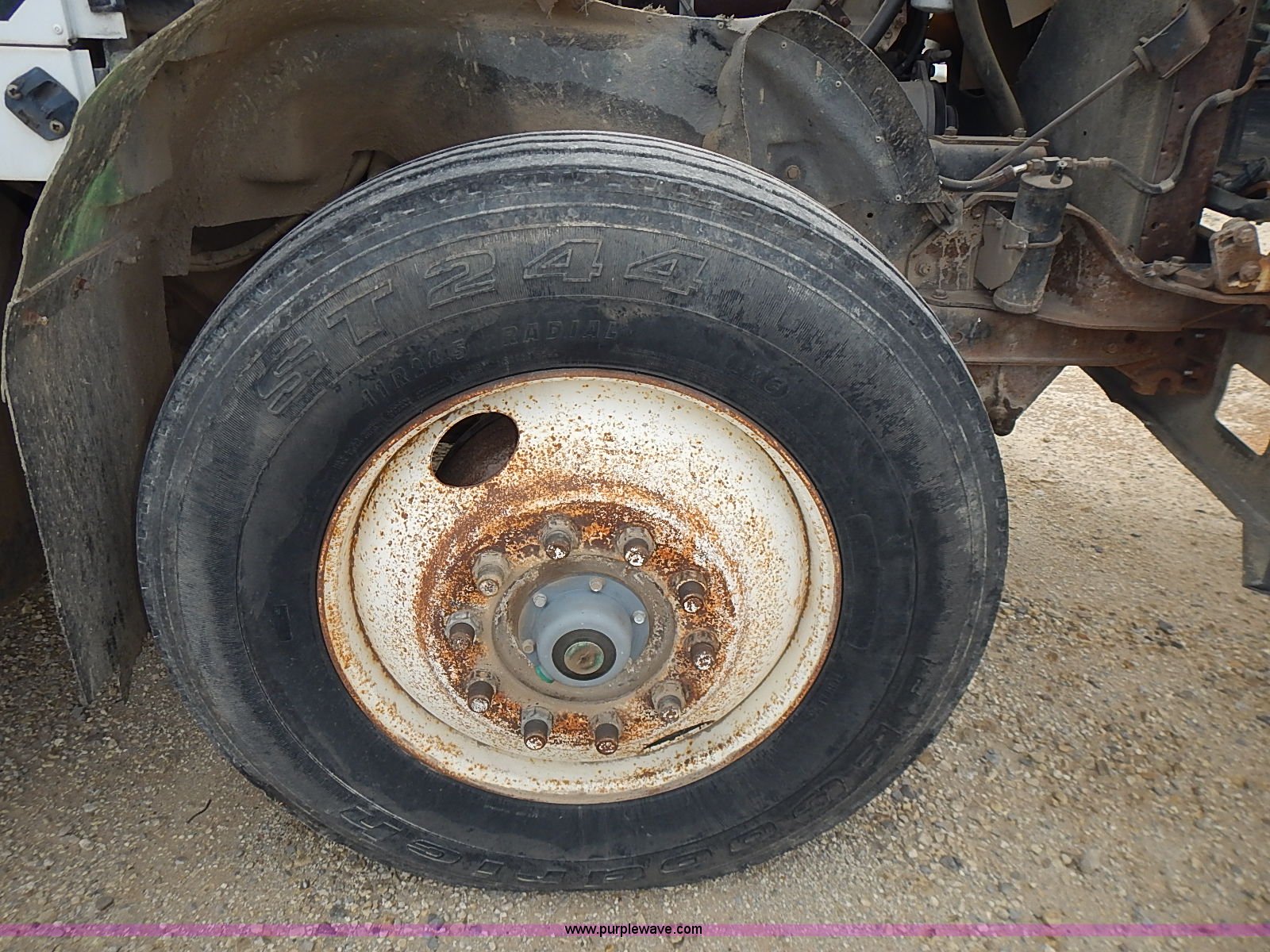 Purple Wave is selling a used Truck Tractor in Kansas. This item is a 1990 International 9300 semi truck with the following: 843,063 miles on odometer, Cummins N14 14.0L L6 diesel engine, Eaton Fuller nine speed manual transmission, Power divider lock, Heat, Tilt, AM/FM/cassette, Passenger daylight door, Air suspension seat, Heated mirrors, Vinyl driver seat, Damaged, Cloth passenger seat, Air horn, Visor, Block heater, Air slide fifth wheel, Dual 100 gallon fuel tanks, Single rear exhaust stack, PTO, Spring suspension, Air brakes, Jake brake, 11R24.5 tires, GVWR 48,000 lbs, FAWR 12,000 lbs, IAWR 18,000 lbs, RAWR 18,000 lbs, One rear taillight cover broken, Cosmetic damage to hood