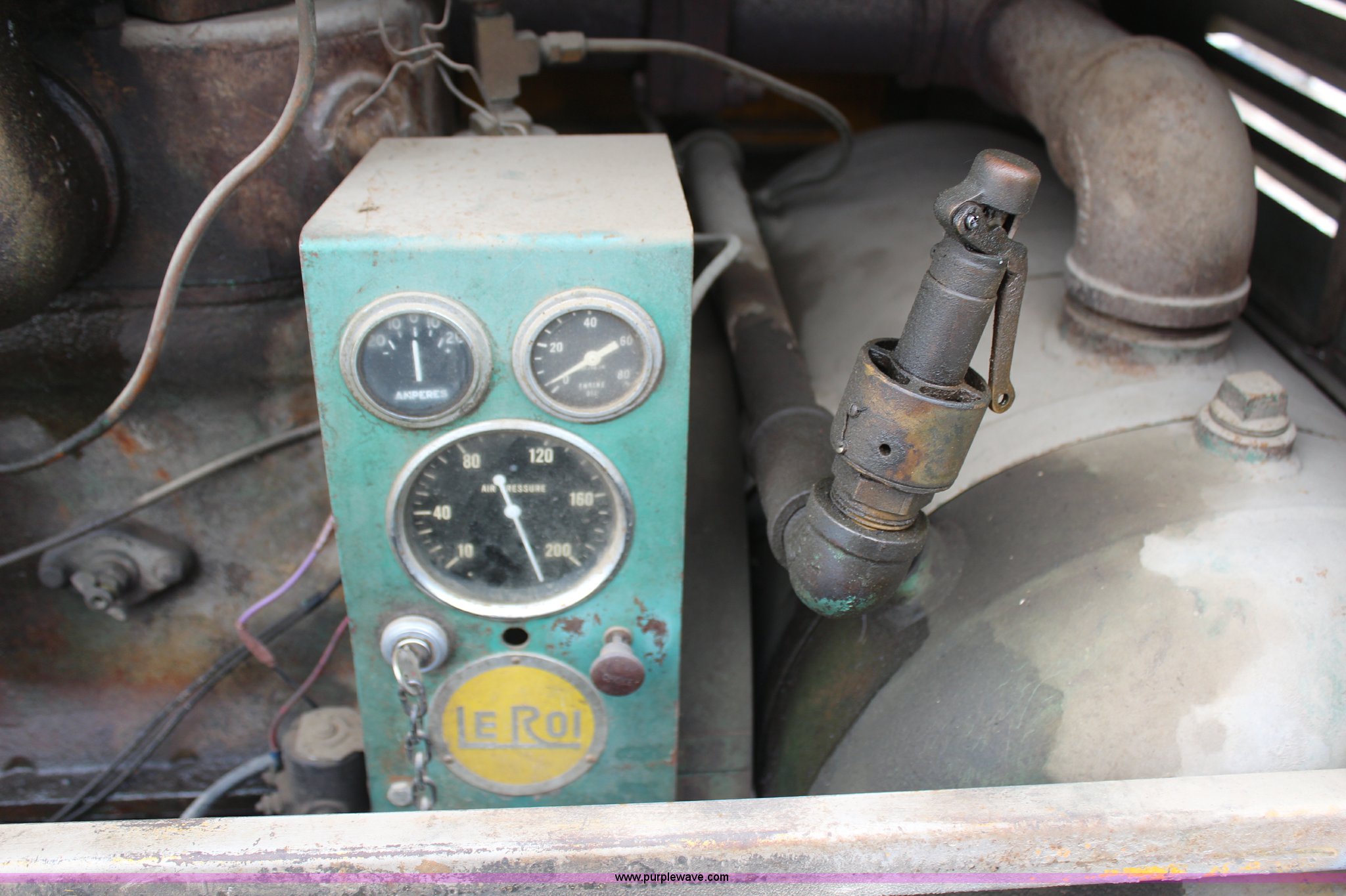Purple Wave is selling a used Air Compressor in Kansas. This item is a Leroi 125 G1 air compressor with the following: Four cylinder gas engine, 125 cfm, Air hose, 2" ball hitch, 225/75R15 tires, Exhaust leak