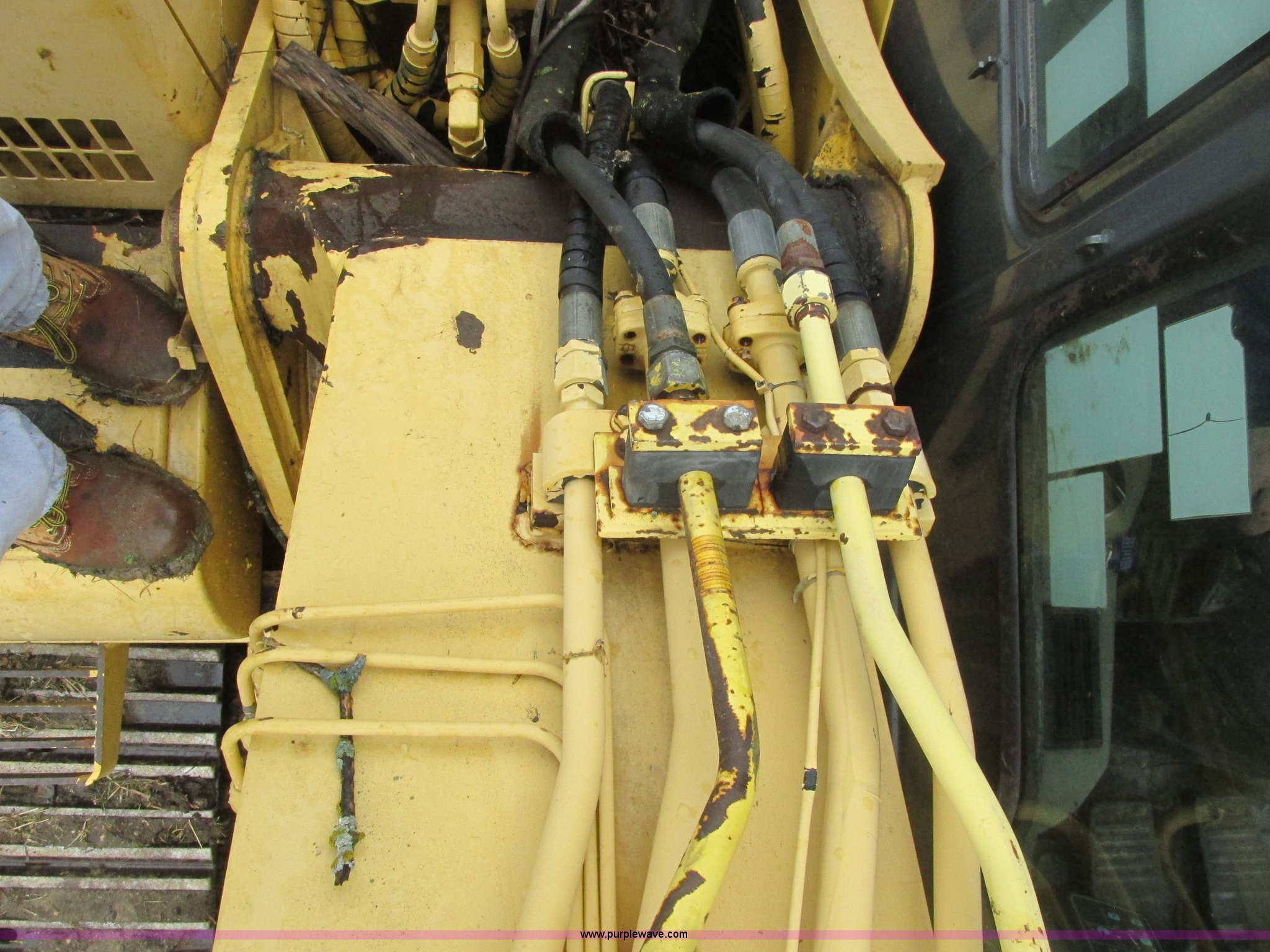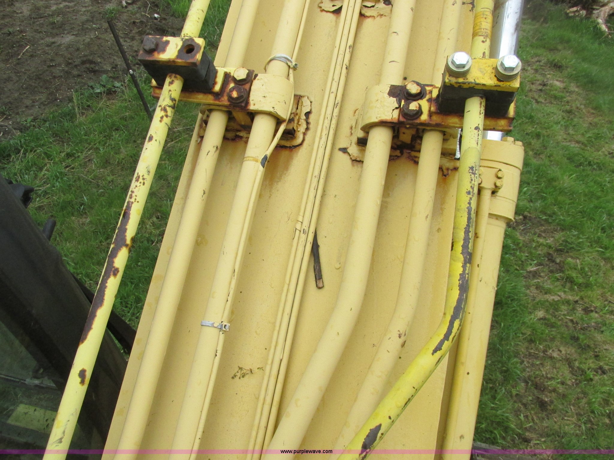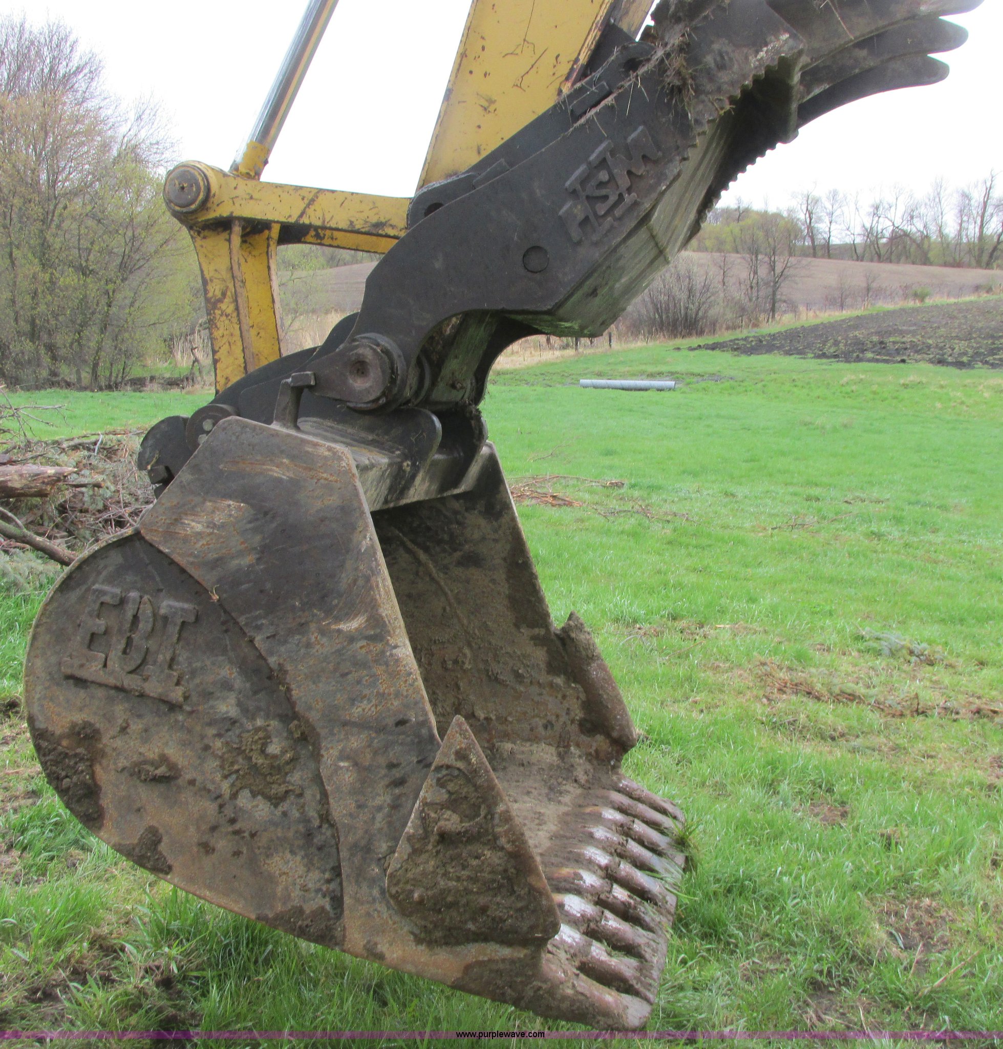 1999 Komatsu PC150LC-6K excavator. 4,664 hours on meter, Komatsu SA4D102E-1 239 C.I.D. four cylinder diesel engine 110 HP, Glow plugs, Hydrostatic transmission, Heat, AM/FM/cassette, Spring suspension seat, Joystick controls, Foot controls, Front work lights, 9.5' stick length, EBI 48"W bucket Nine quick attach teeth, PSM hydraulic thumb, Rear counter weights, Seven bottom rollers, 28"W steel triple grouser track pads, 39,503 lbs. base operating weight, Front cab glass lower seal does not fit correctly Seal will be repaired prior to auction, Lower hand grip missing on right joystick, Serial K30796. View equipment video. Anderson Excavating. 108 Anderson Street. Brandon, MN 56315