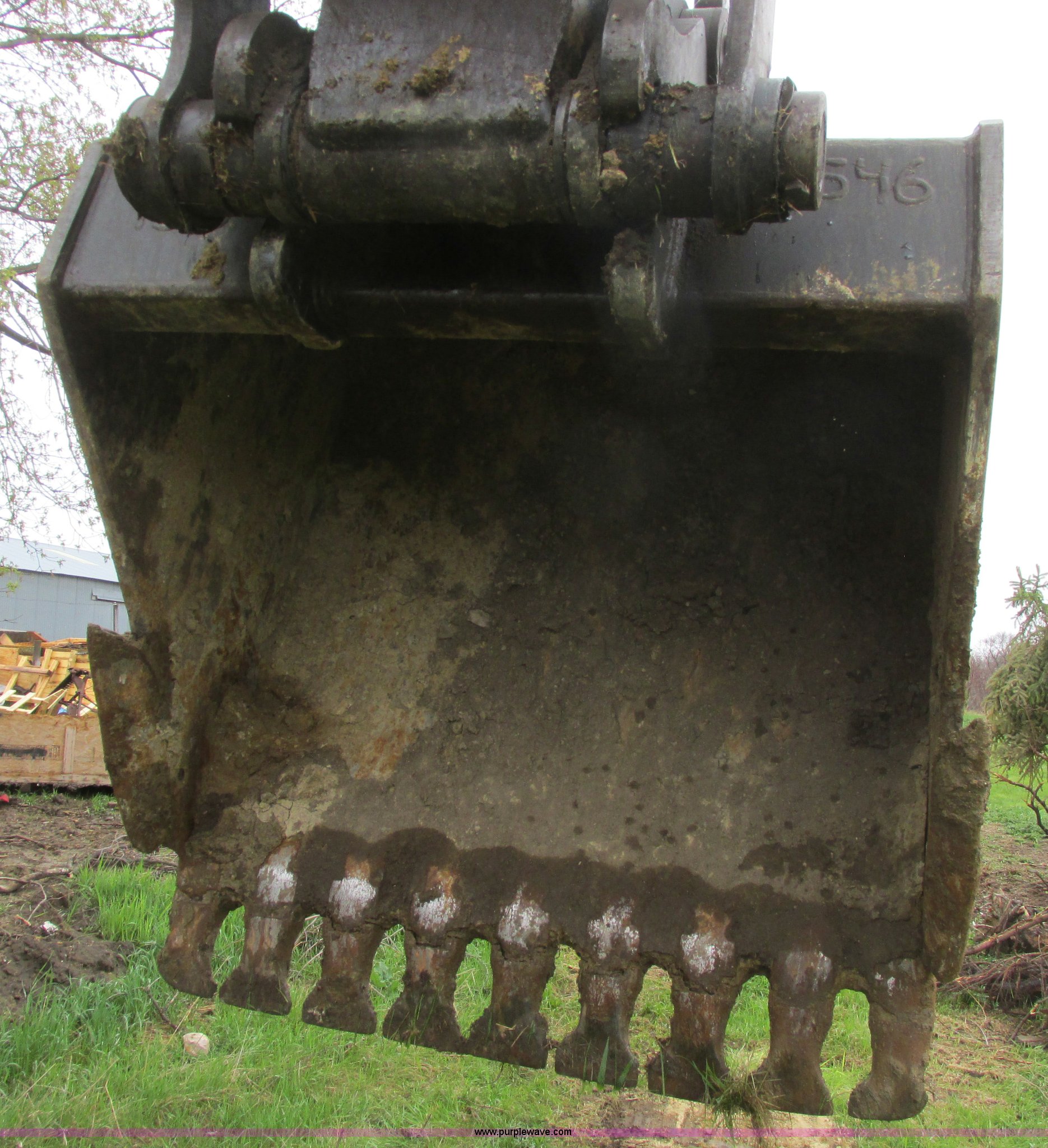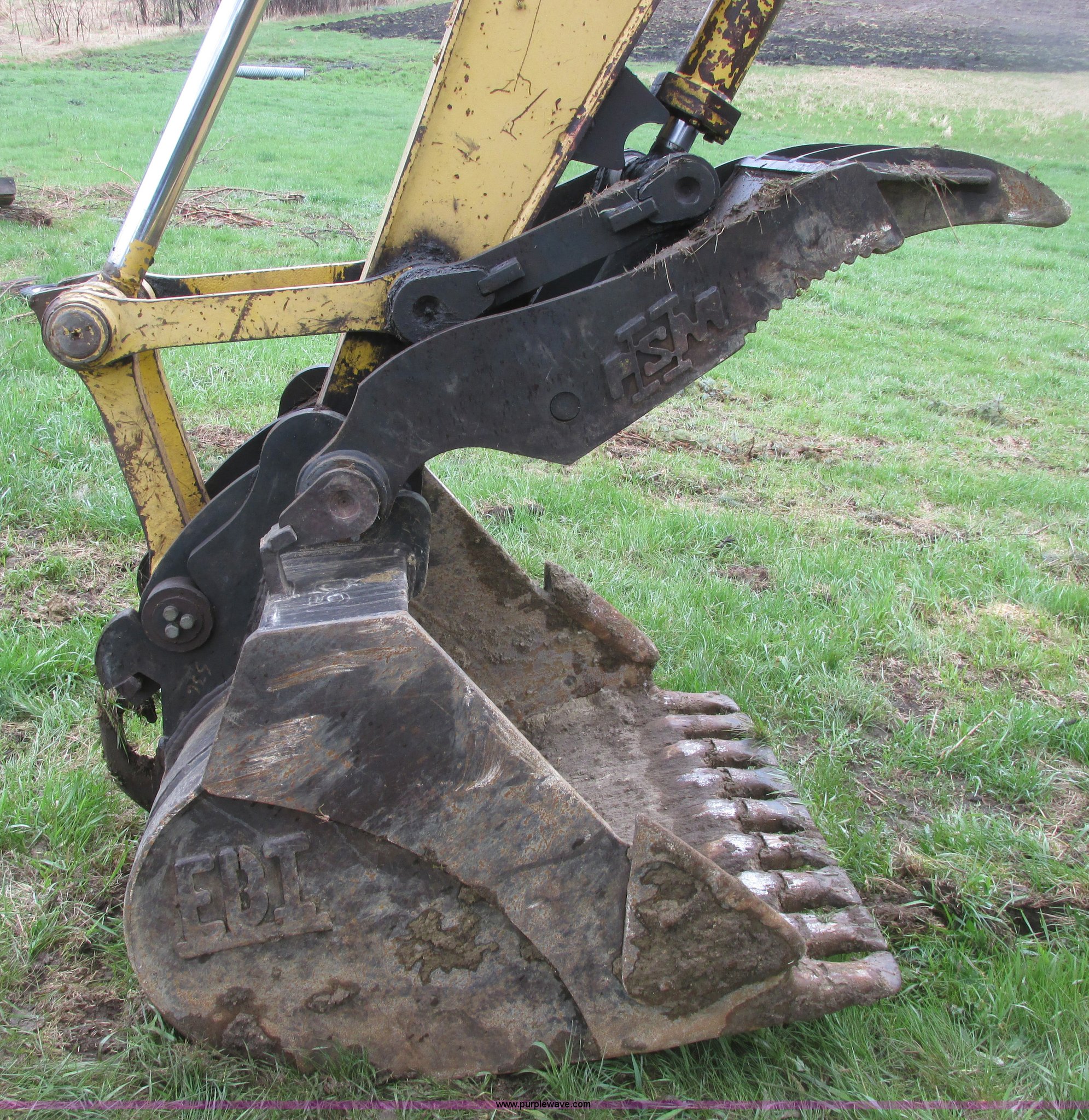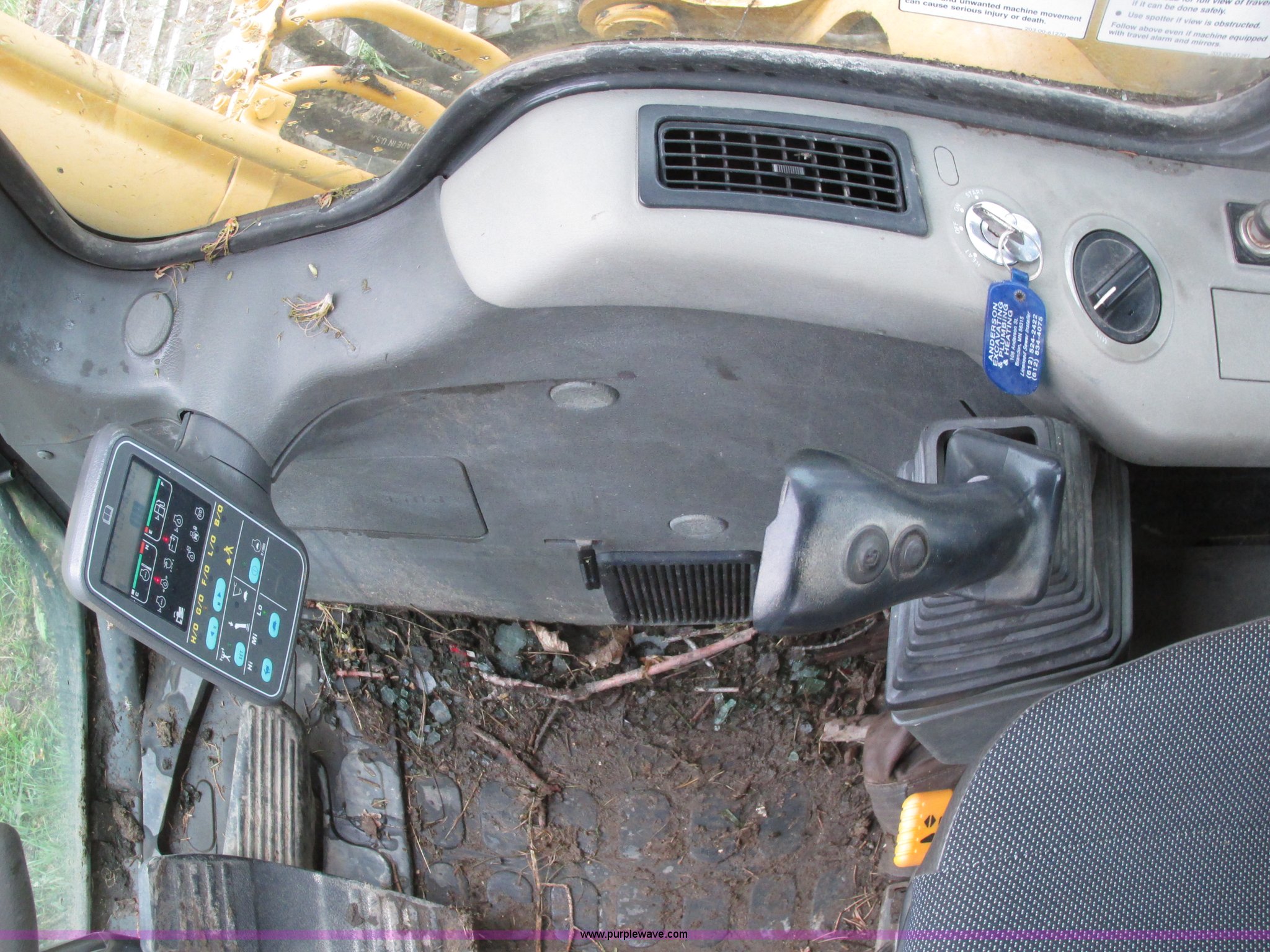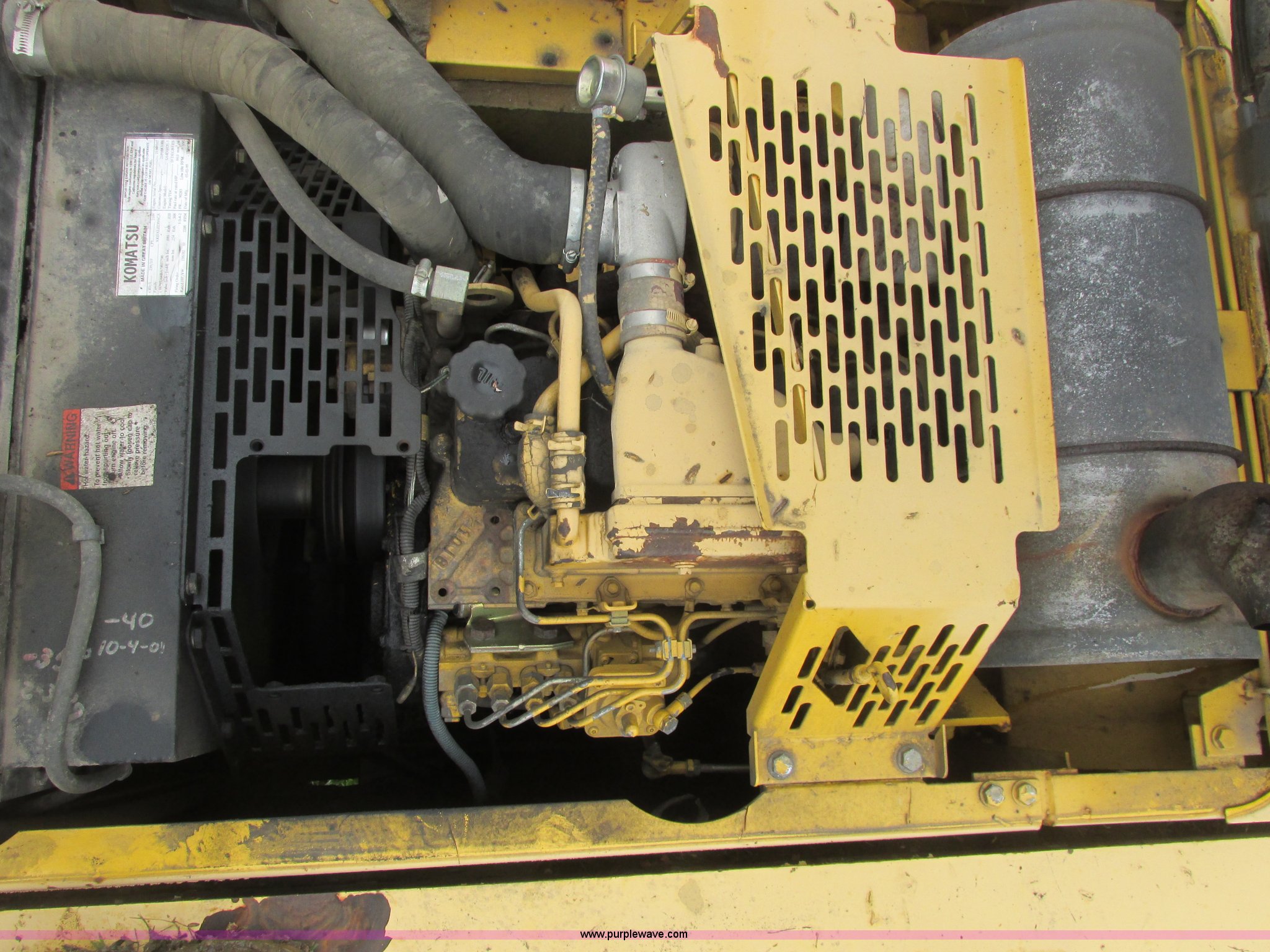 1999 Komatsu PC150LC-6K excavator. 4,664 hours on meter, Komatsu SA4D102E-1 239 C.I.D. four cylinder diesel engine 110 HP, Glow plugs, Hydrostatic transmission, Heat, AM/FM/cassette, Spring suspension seat, Joystick controls, Foot controls, Front work lights, 9.5' stick length, EBI 48"W bucket Nine quick attach teeth, PSM hydraulic thumb, Rear counter weights, Seven bottom rollers, 28"W steel triple grouser track pads, 39,503 lbs. base operating weight, Front cab glass lower seal does not fit correctly Seal will be repaired prior to auction, Lower hand grip missing on right joystick, Serial K30796. View equipment video. Anderson Excavating. 108 Anderson Street. Brandon, MN 56315