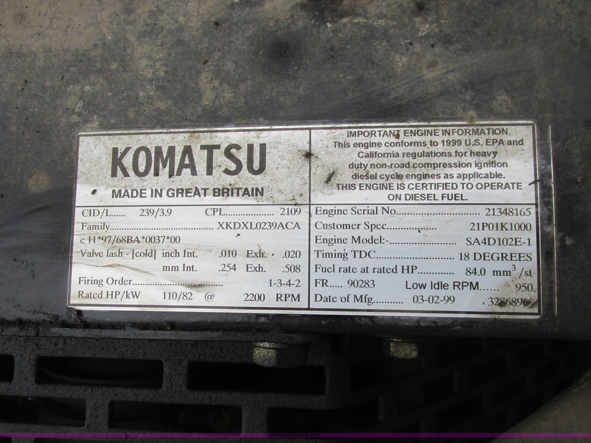 - Komatsu SA4D102E-1 239 C.I.D. four cylinder diesel engine