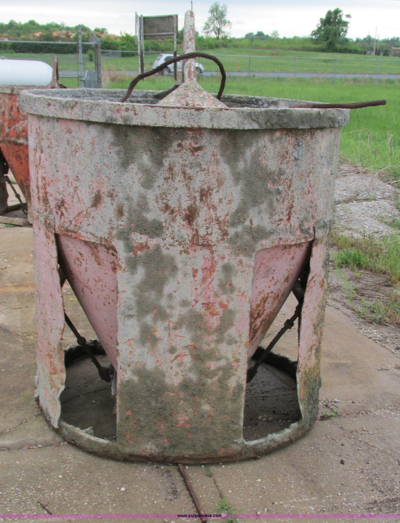 Purple Wave is selling a used Concrete Dispenser in Missouri. This item is a Concrete bucket with the following: Approximately 52"W x 52"H, Lifting point, Handle