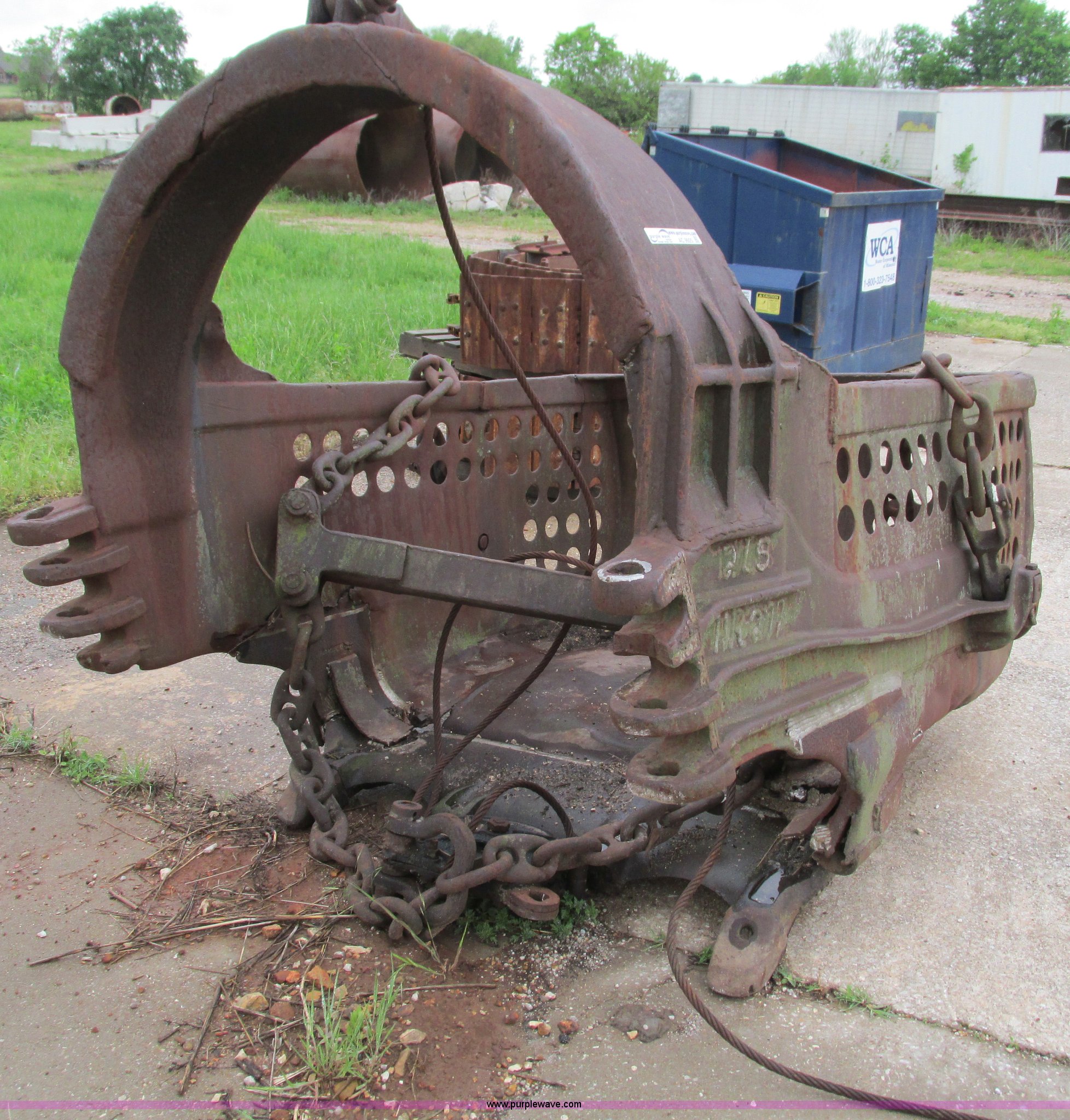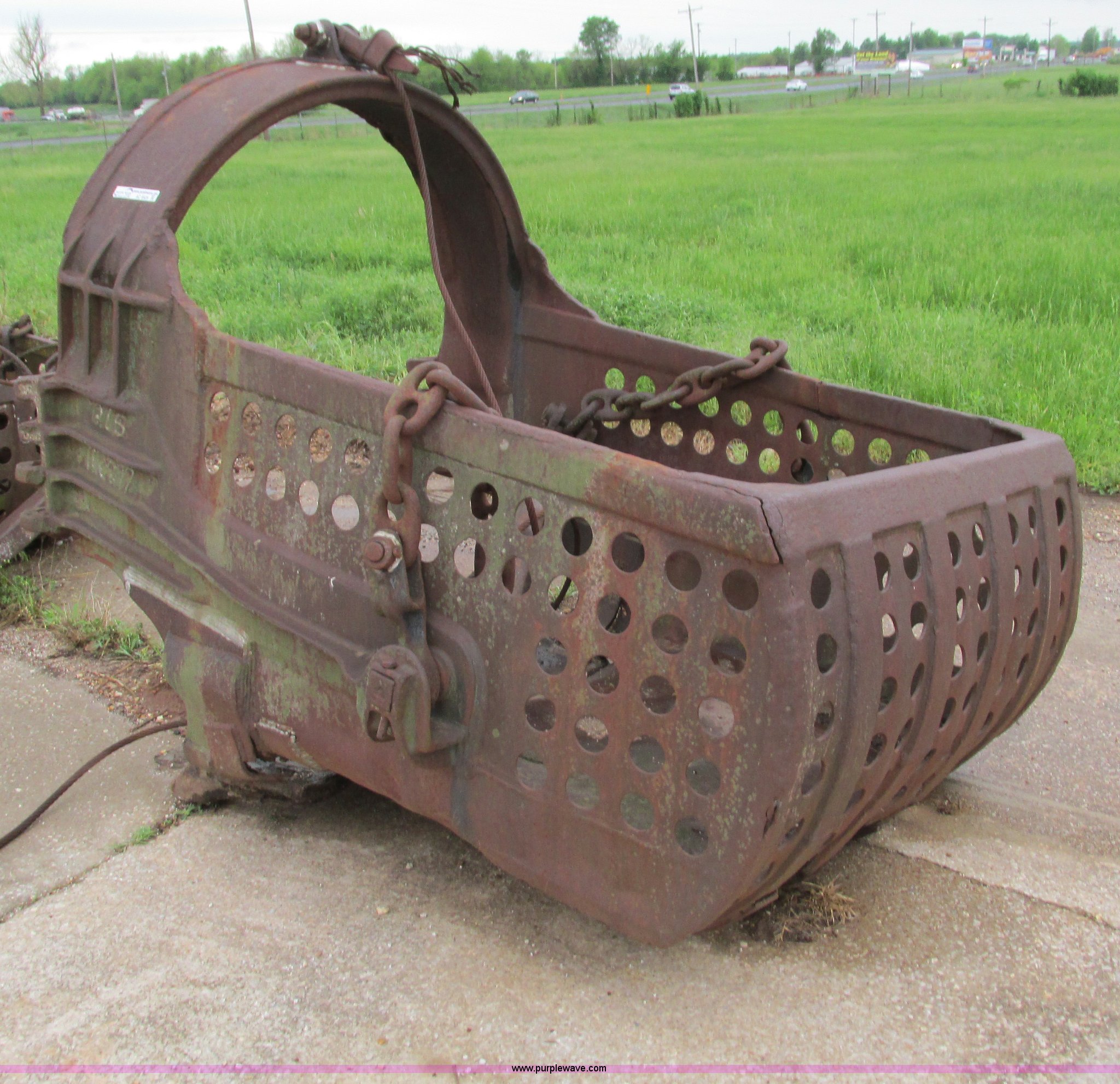 Purple Wave is selling a used Crane Attach. in Missouri. This item is a Drag bucket with the following: Approximately 77" x 54", 1.5 cubic yard capacity
