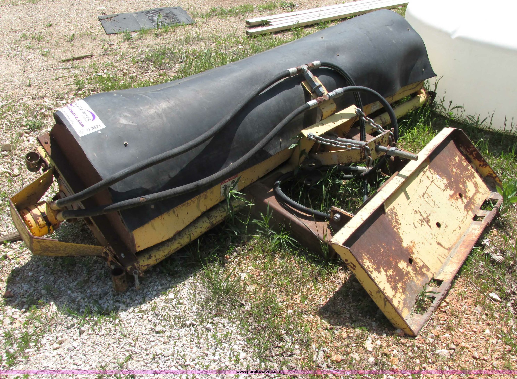Purple Wave is selling a used Skid Steer Attach. in Missouri. This item is a M&B 84" sweeper skid steer attachment with the following: Universal skid steer attach, Flat-faced fittings, Poly and steel brushes