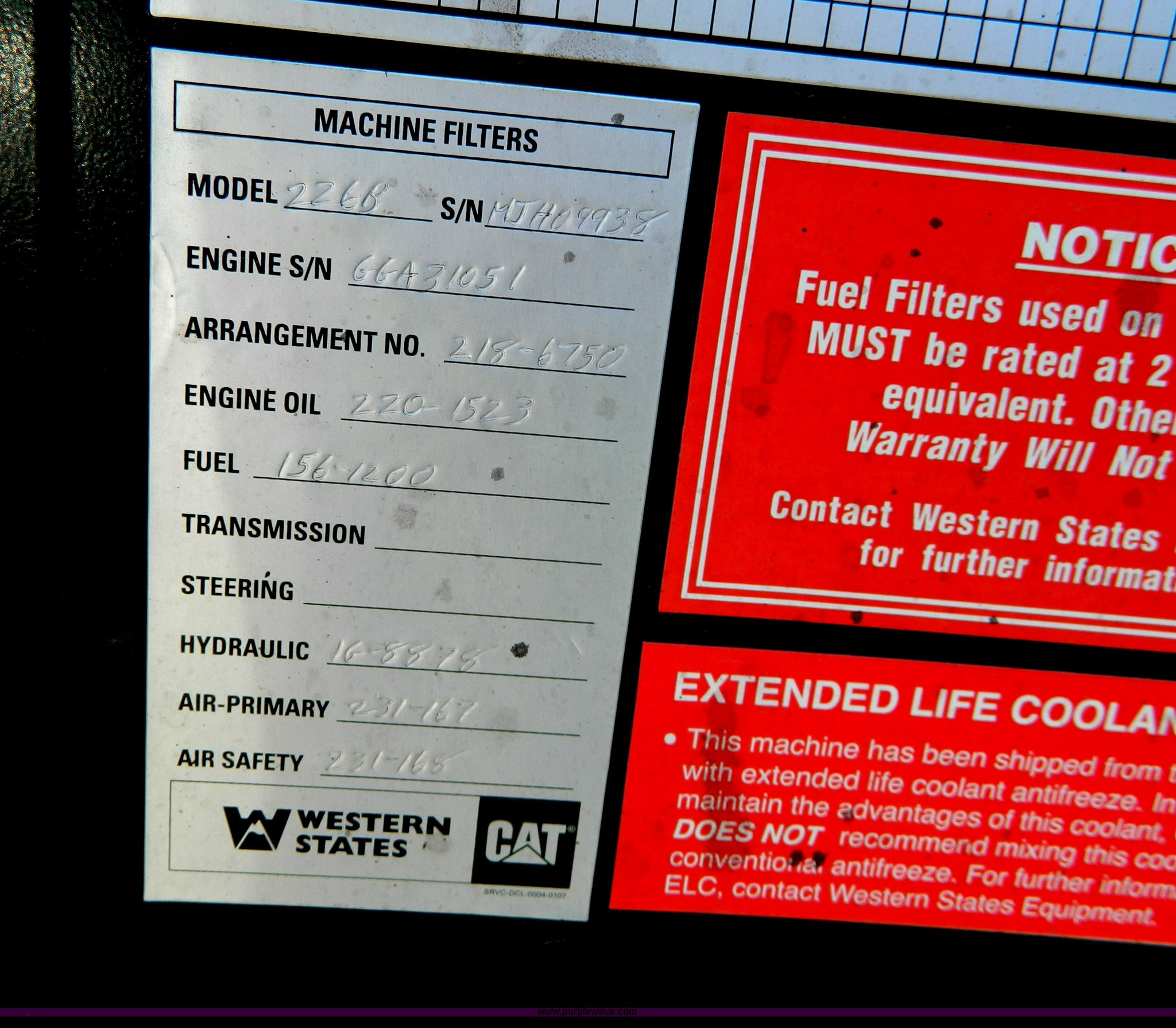 2008 Caterpillar 226B skid steer. An erroneous bid was placed in the last moments of bidding on this asset in our June 12 Construction Equipment auction. At Purple Wave's discretion this asset has been moved here to allow a natural conclusion to the bidding. 1,574 hours on meter, Caterpillar 3024CT four cylinder turbo diesel engine 61 HP, Serial GGA31051, Hydrostatic transmission, Back glass, Joystick controls, Spring suspension seat, Bucket with bolt-on cutting edge Manual quick coupler, Auxiliary hydraulics, Auxiliary electrical outlet, Front and rear work lights, 12-16.5 Xtra-wall tires, 1,500 lbs operating load, 5,833 lbs. base operating weight, Serial CAT0226BAMJH09938. View equipment video. Car Zone. 1300 Vine. Hays, KS 67601