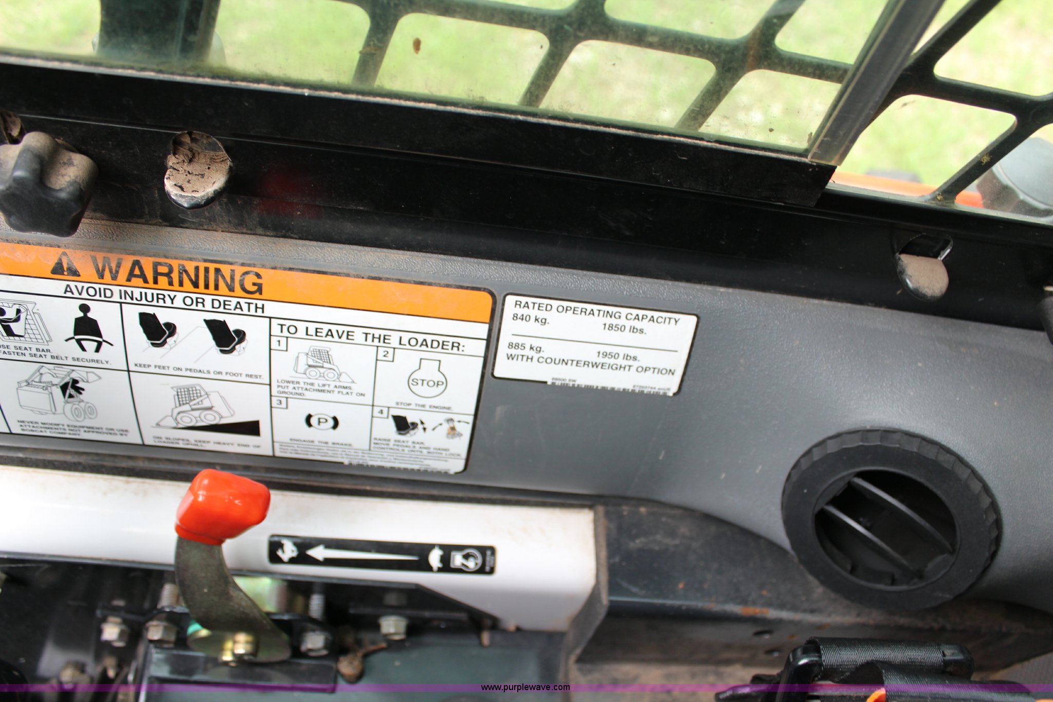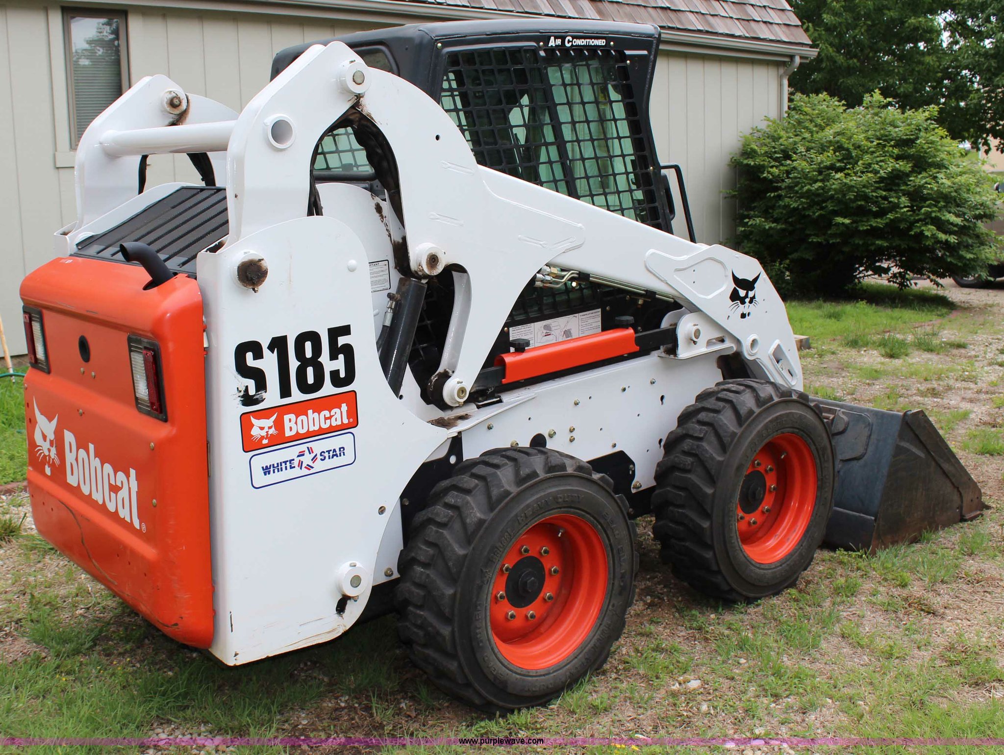 Purple Wave is selling a used Skid Steer Loader in Kansas. This item is a 2008 Bobcat S185 skid steer with the following: 109 actual hours on meter, Kubota V-2607-T 2.6L four cylinder diesel engine, 46.5 kW, Serial 8J0251, Hydrostatic transmission, Enclosed cab, AC and heat, Hand and foot controls, EMS, Spring suspension seat, 7.3 mph travel speed, Auxiliary hydraulics, Bobcat 68"W bucket, 16 cubic foot capacity, Bolt-on cutting edge, Hydraulic quick coupler, Front and rear work lights, 24 gallon fuel tank, Bobcat 10-16.5 tires, 1,850 lbs rated operating capacity, 4,076 lbs tipping load, 6,220 lbs. base operating weight, Serial A3L911153
