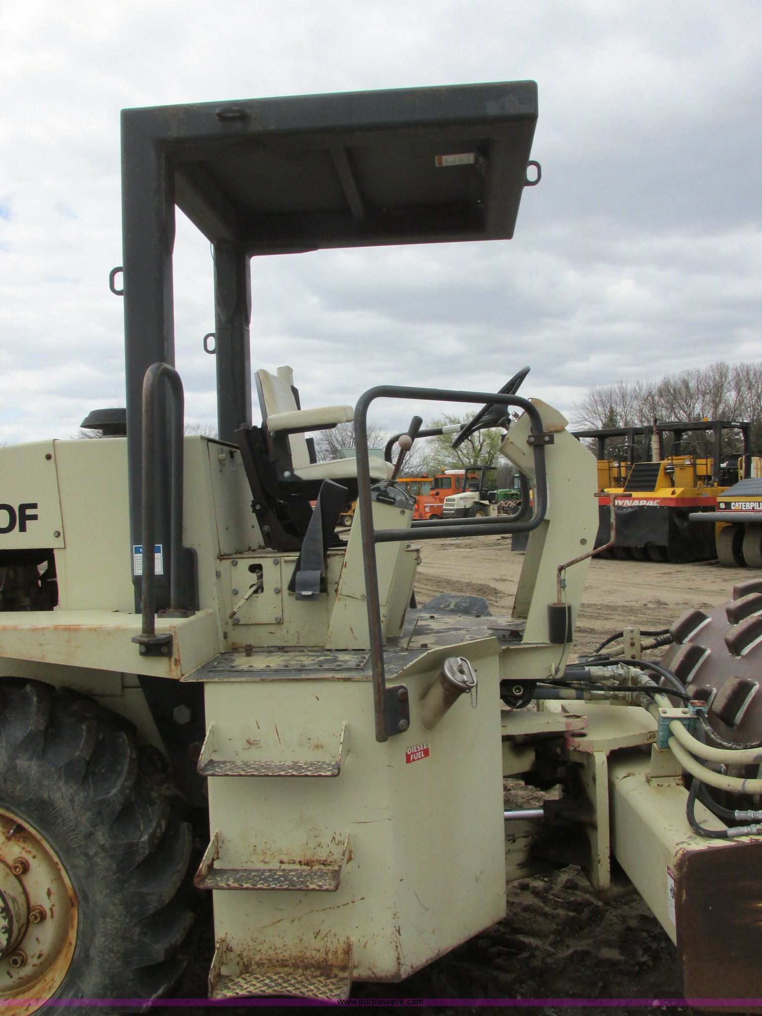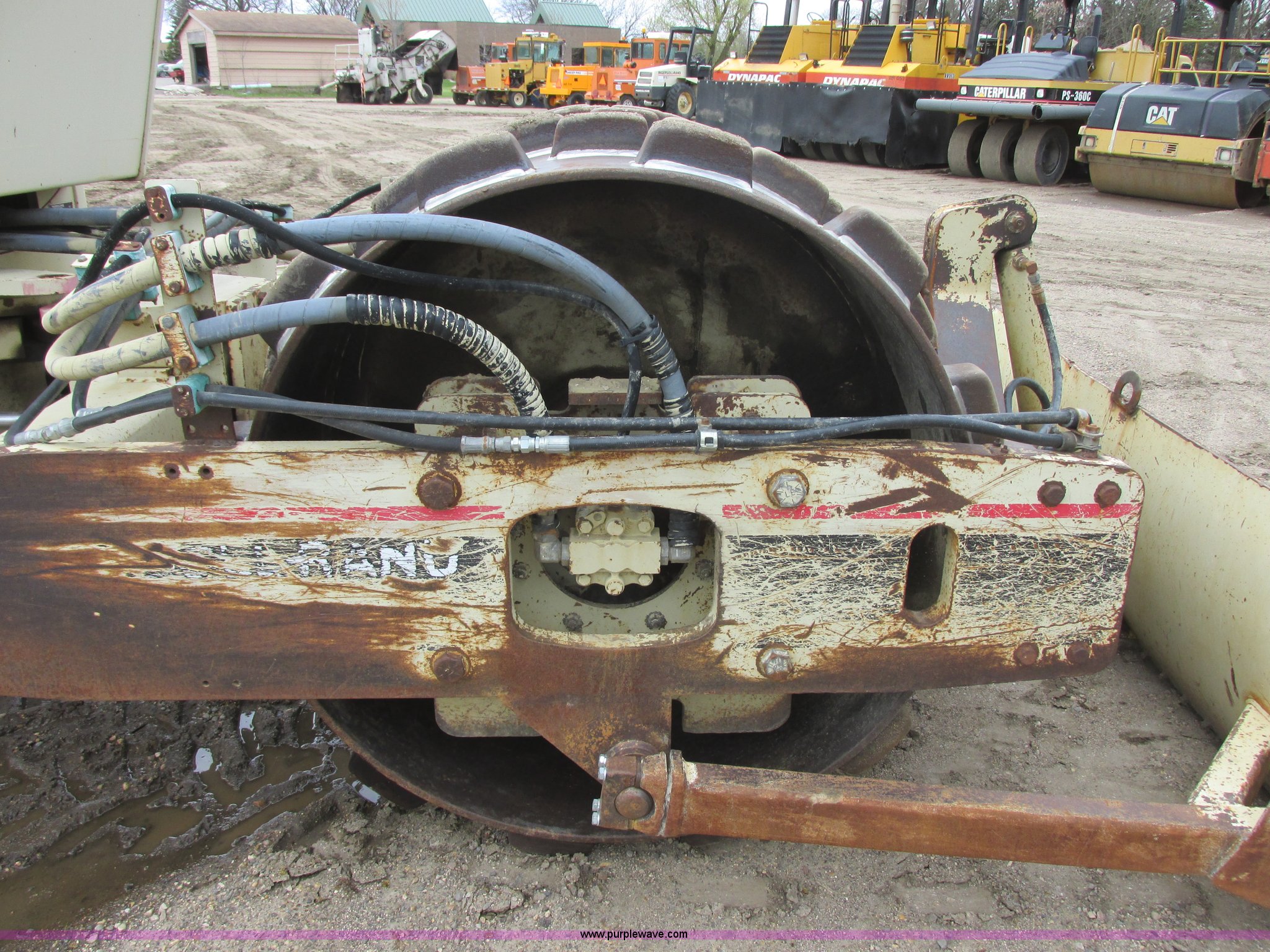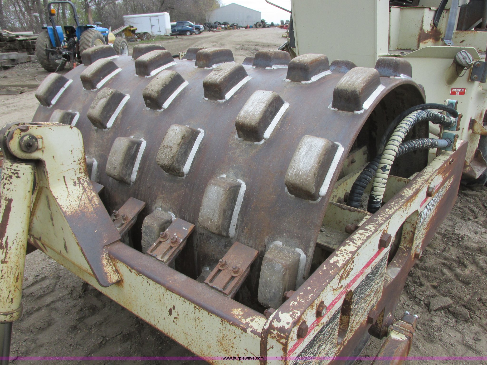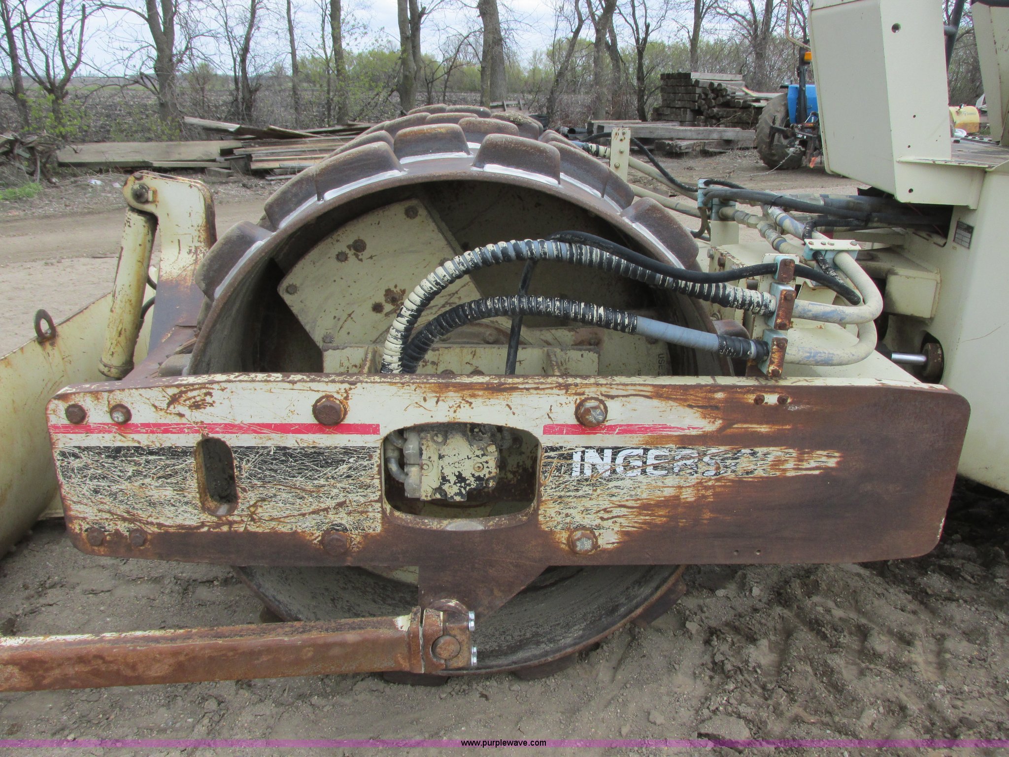 Purple Wave is selling a used Single Drum Roller Compactor in Minnesota. This item is a 1995 Ingersoll Rand SD-70F vibratory padfoot compactor with the following: 7,866 hours on meter, Cummins S4-3 four cylinder diesel engine, Serial 3904570-12, ROPS, 66"W x 48" diameter sheep foot compactor, Pad/drum cleaners, 84" front push blade, Hydraulic lift, Bolt-on cutting edge, Back up alarm, Strobe light, Vibration control, Rear pin hitch, 14.9-24 tires, Interior/exterior cosmetic damage, Serial 141833, Unit# RF0034