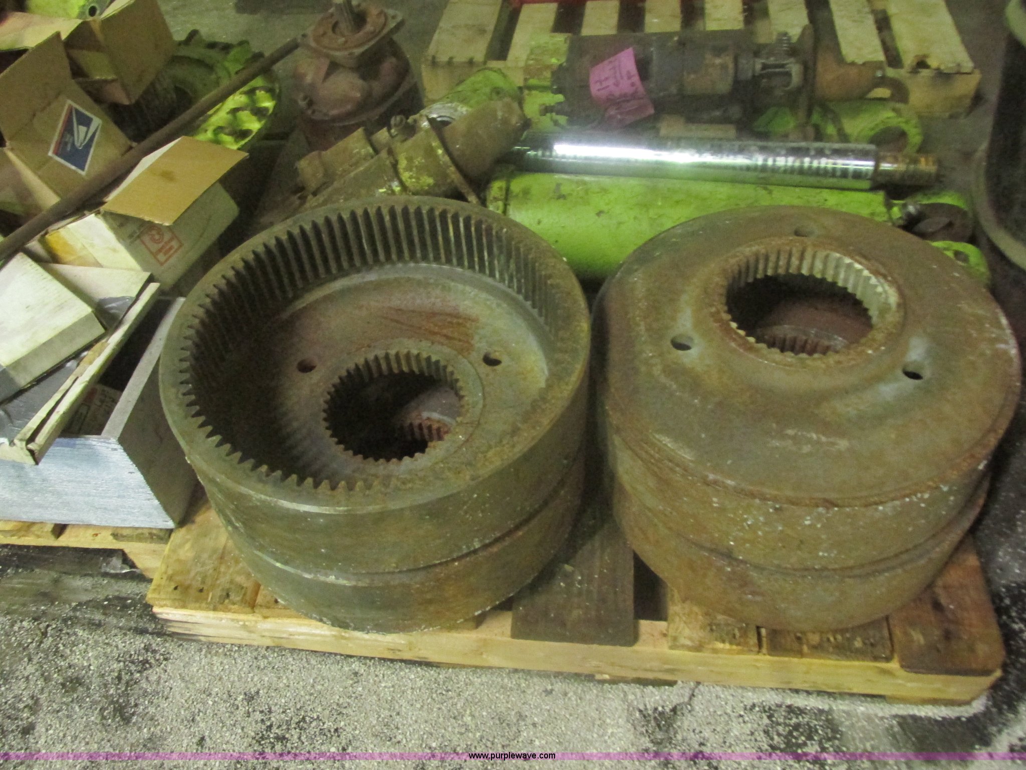 Assorted Terex TS14 scraper parts. Radiator Unused, (3) axles Unused, Planetary final drive, Detroit Diesel engine connecting rods, Starters, Bowl gears for planetary drives, Fittings, Seals, Valves, Components. Annett Construction. 103 West 12th Street North. Milbank, SD 57252