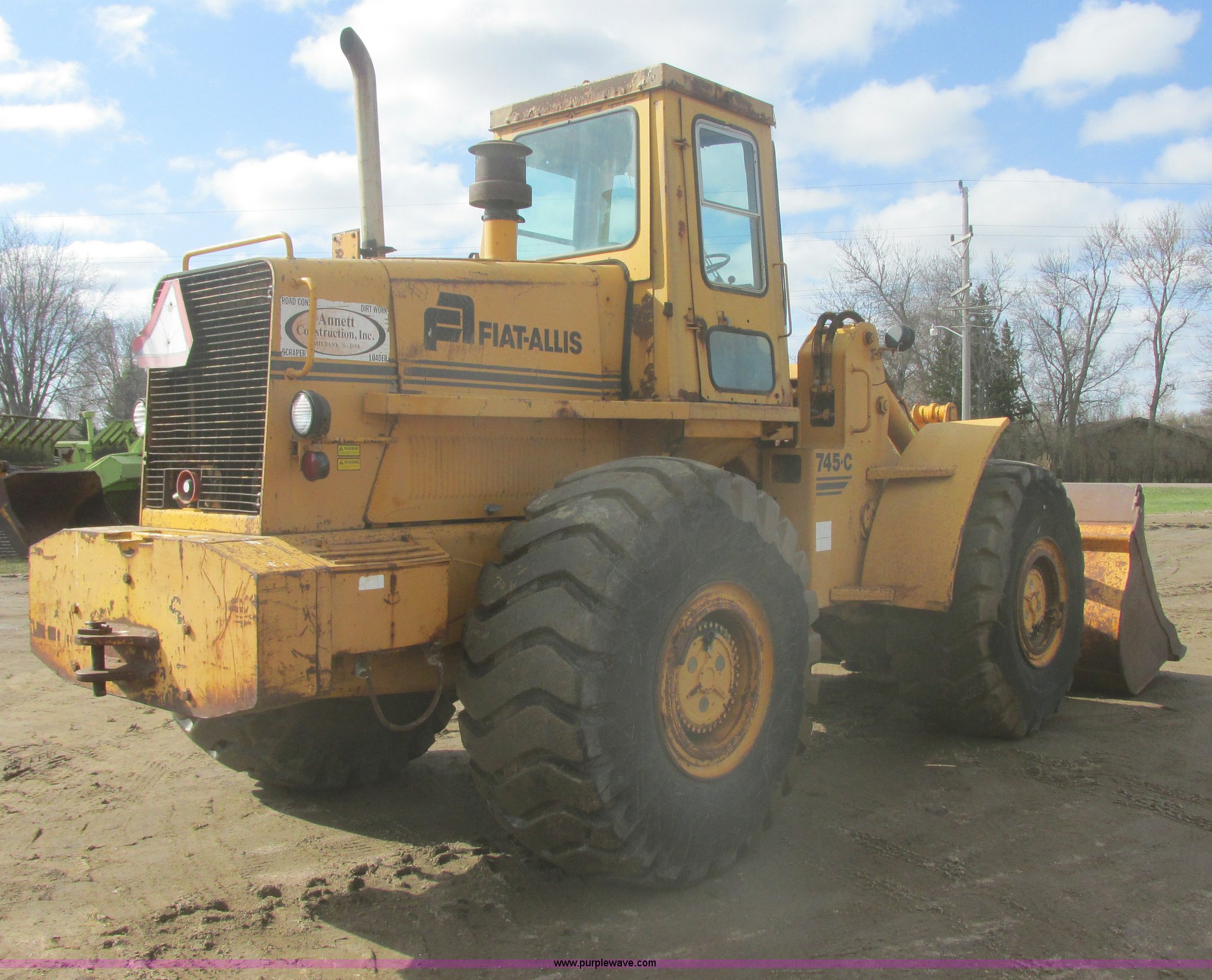 Purple Wave is selling a used Wheel Loader in South Dakota. This item is a 1979 Fiat-Allis 745C wheel loader with the following: 9,698 hours on meter, Fiat six cylinder diesel engine, Torque converter transmission, Enclosed cab, Heat, Two lever loader control, Work lights, Windshield wipers, Defroster, GP 10'W bucket, 26.5-25 tires, 35,000 lbs. base operating weight, Cosmetic damage, Weak battery, Serial 64M-04160