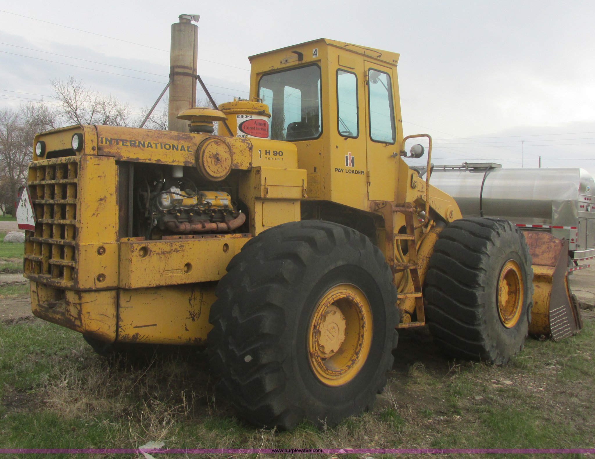 Purple Wave is selling a used Wheel Loader in South Dakota. This item is a 1979 Hough-International H90 wheel loader with the following: 9,308 hours on meter, International eight cylinder diesel engine, Torque converter transmission, Enclosed cab, Front work lights, Windshield wipers, GP 10' bucket, 26.5-25 L-3 tires, Broken glass, Surface rust, Recently replaced starter, Wiring bypass was added with start button, Manual shutdown by engine, Power and wiring cab has issues, Weak battery, Serial 3560307V002972, Unit# 4