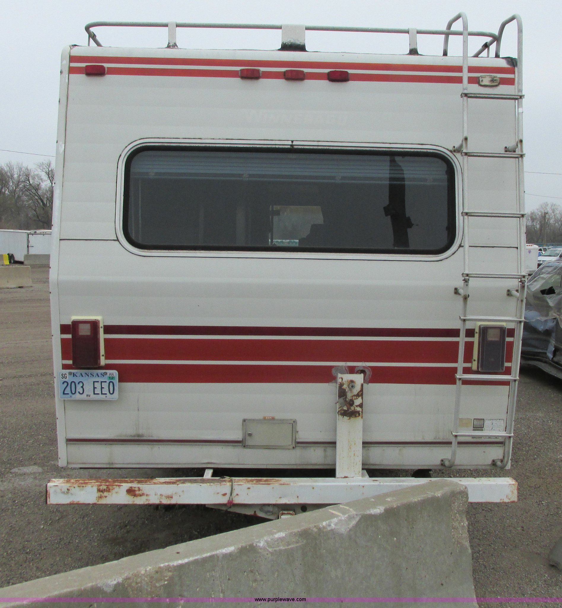1978 Winnebago Brave RV. 65,248 miles on odometer, Gas engine, Automatic transmission, AC, AM/FM/cassette, Manual windows and locks, Cloth interior, Approximately 23'11"L, Awning, LP tank, Onan 4 generator, Roof top AC, Stove, Sink, Table, Shower, Bathroom, 8R17.5 tires, Grill damaged, Drive shaft disconnected, Dash split and cracked, Ceiling has water damaged, Engine may be missing components, Rear ladder broken, Interior/exterior cosmetic damage, Case# 14C010527. Vehicle is abandoned. No additional information is available. Vehicle does not have keys unless notated otherwise in the item listing.. View City Of Wichita Terms for title acquisition and item removal requirements... Title history is unknown. Buyer will be required to obtain a motor vehicle inspection from the Kansas Highway Patrol prior to titling. Motor vehicle inspections are by appointment only. Winning bidder will need to contact the Kansas Highway Patrol to make arrangements following the auction. 10F45J192694. Happy Hooker Towing. 3760 South Broadway. Wichita, KS 67216