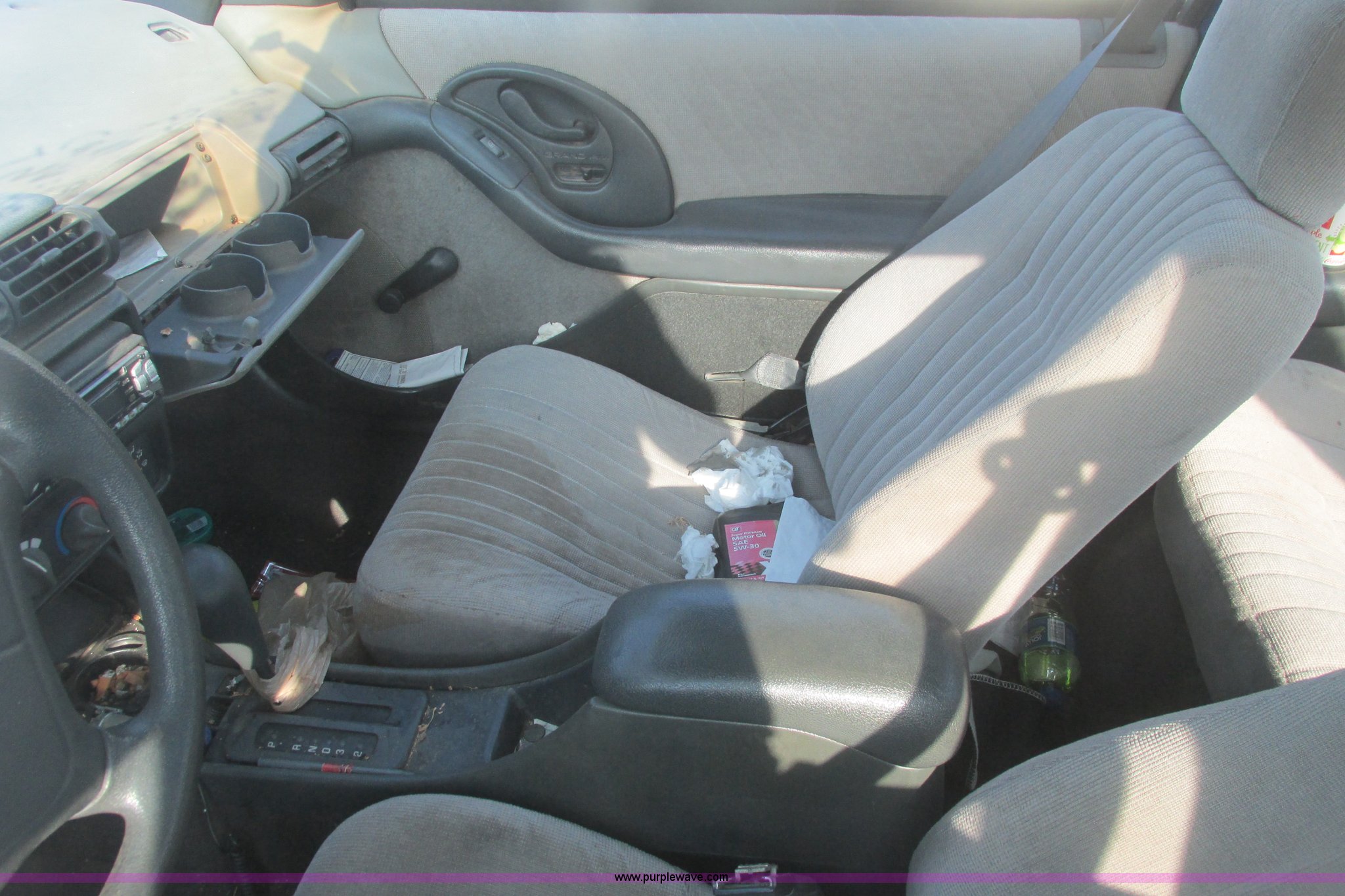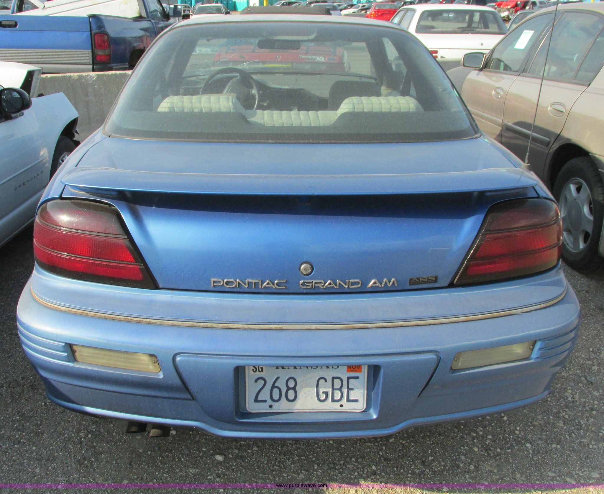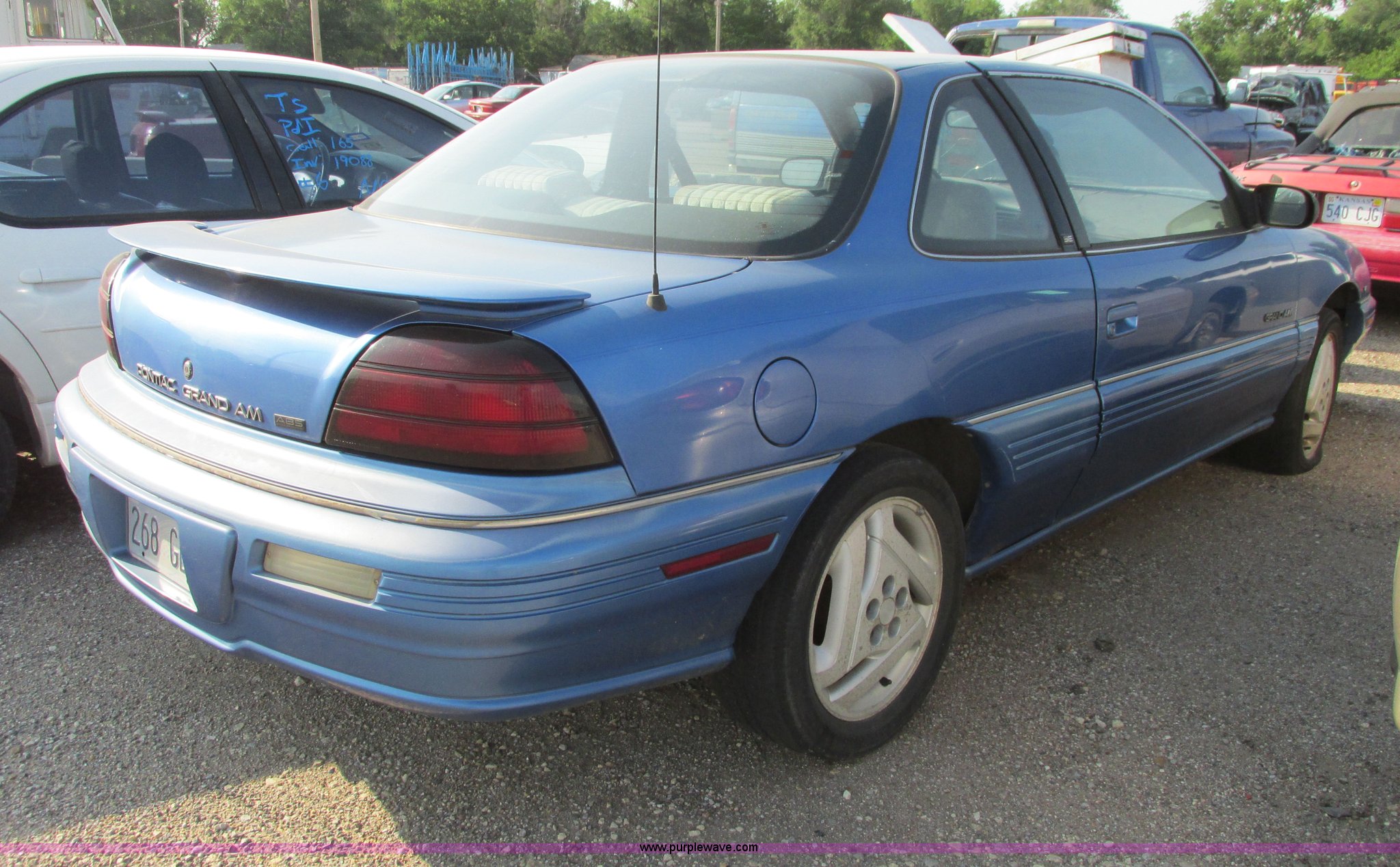 Purple Wave is selling a used Wrecked and Abandoned in Kansas. This item is a 1994 Pontiac Grand AM SE with the following: Unknown miles on odometer, 3.1L V6 OHV 12V gas engine, Automatic transmission, AC and heat, Cruise, Aftermarket AM/FM/CD, Manual windows and locks, Cloth interior, P205/55R16 tires, Interior/exterior cosmetic damage, Hood damaged, Fog lights broken, Paint faded, Windshield shattered, Tires flat, Headliner sagging, Driver's seat torn, Dash cracked, Vehicle locked, Case# 14C021950