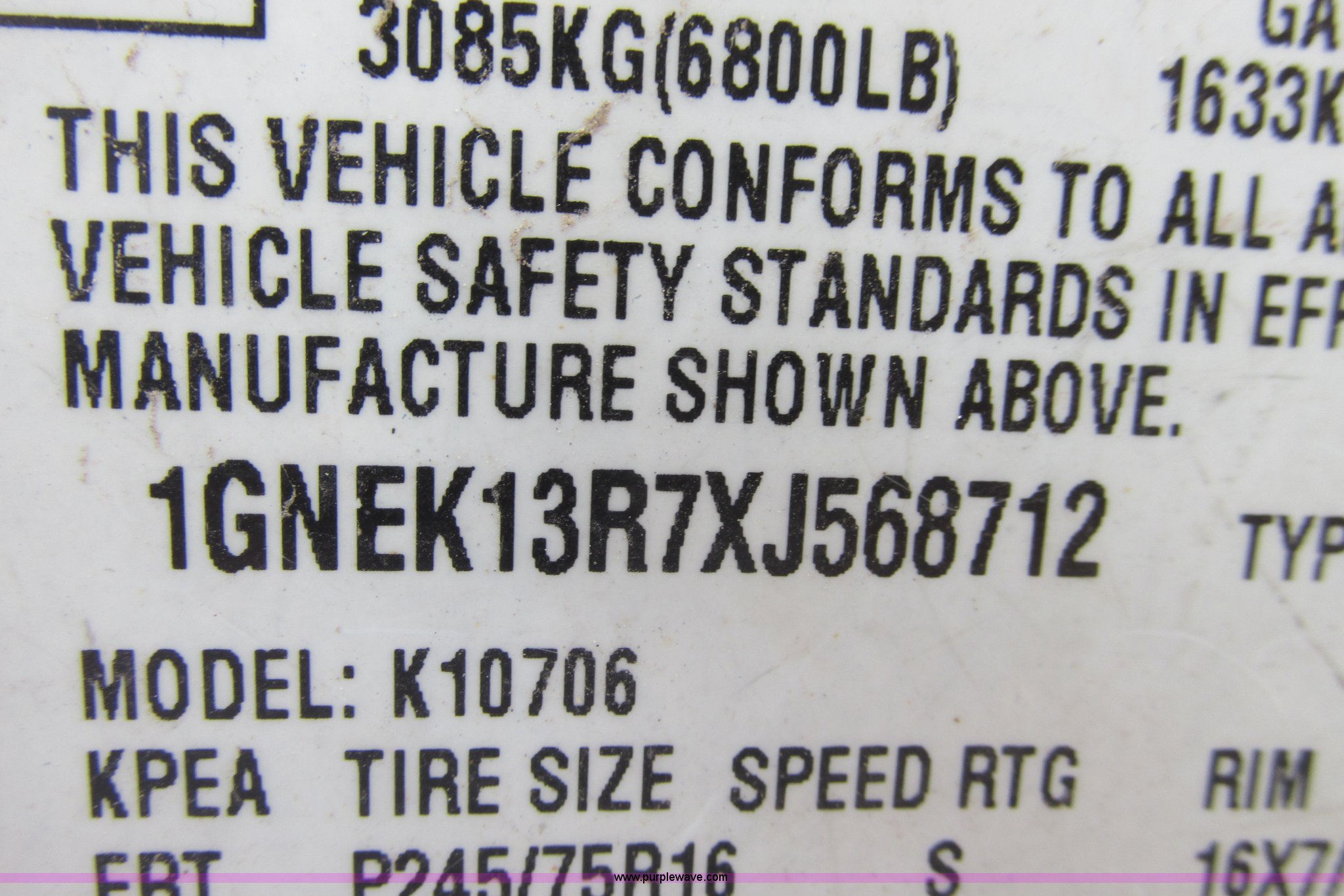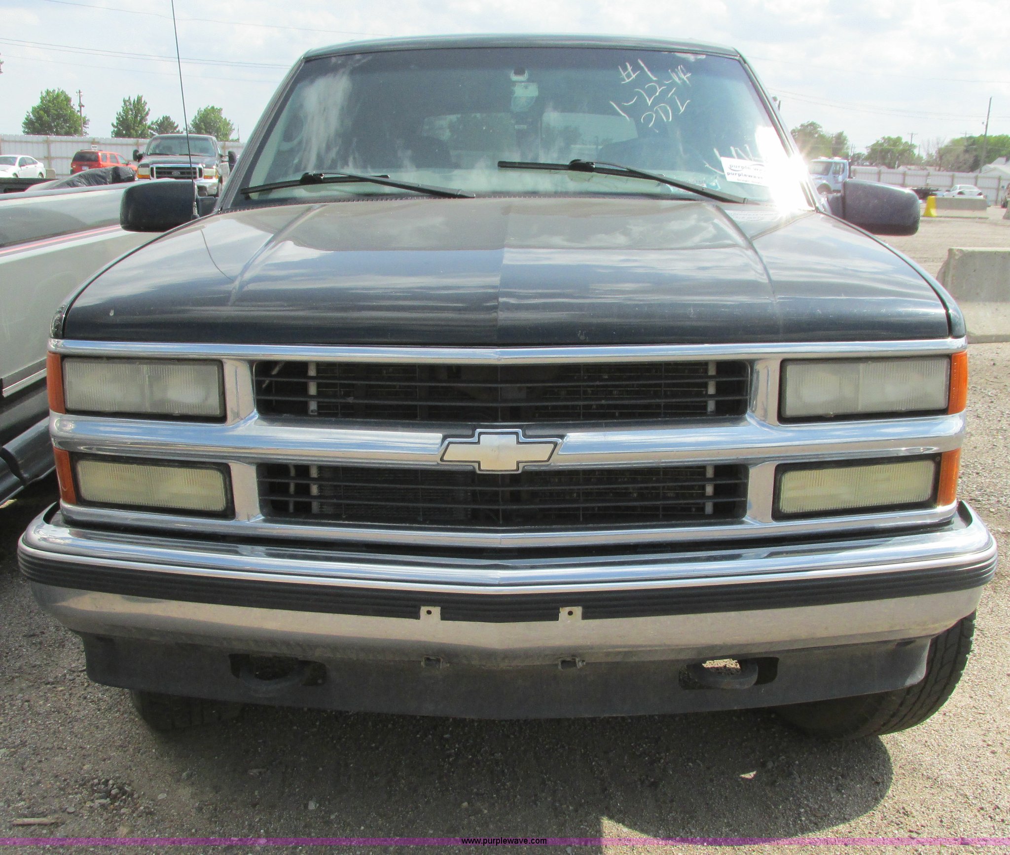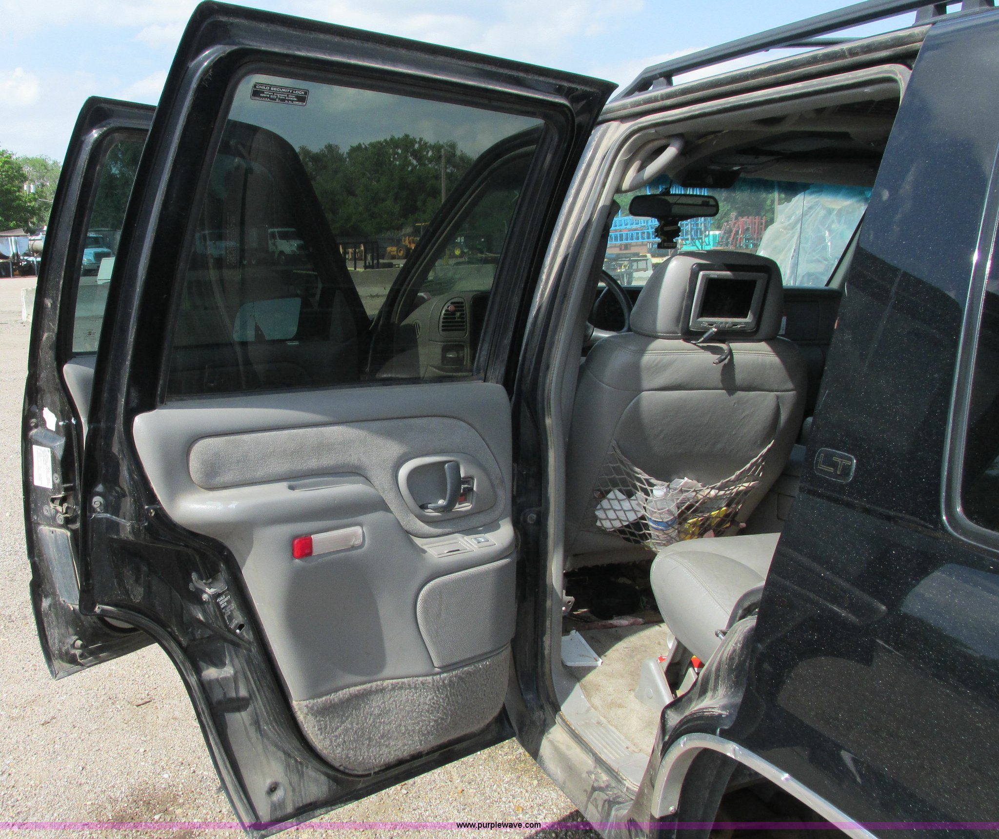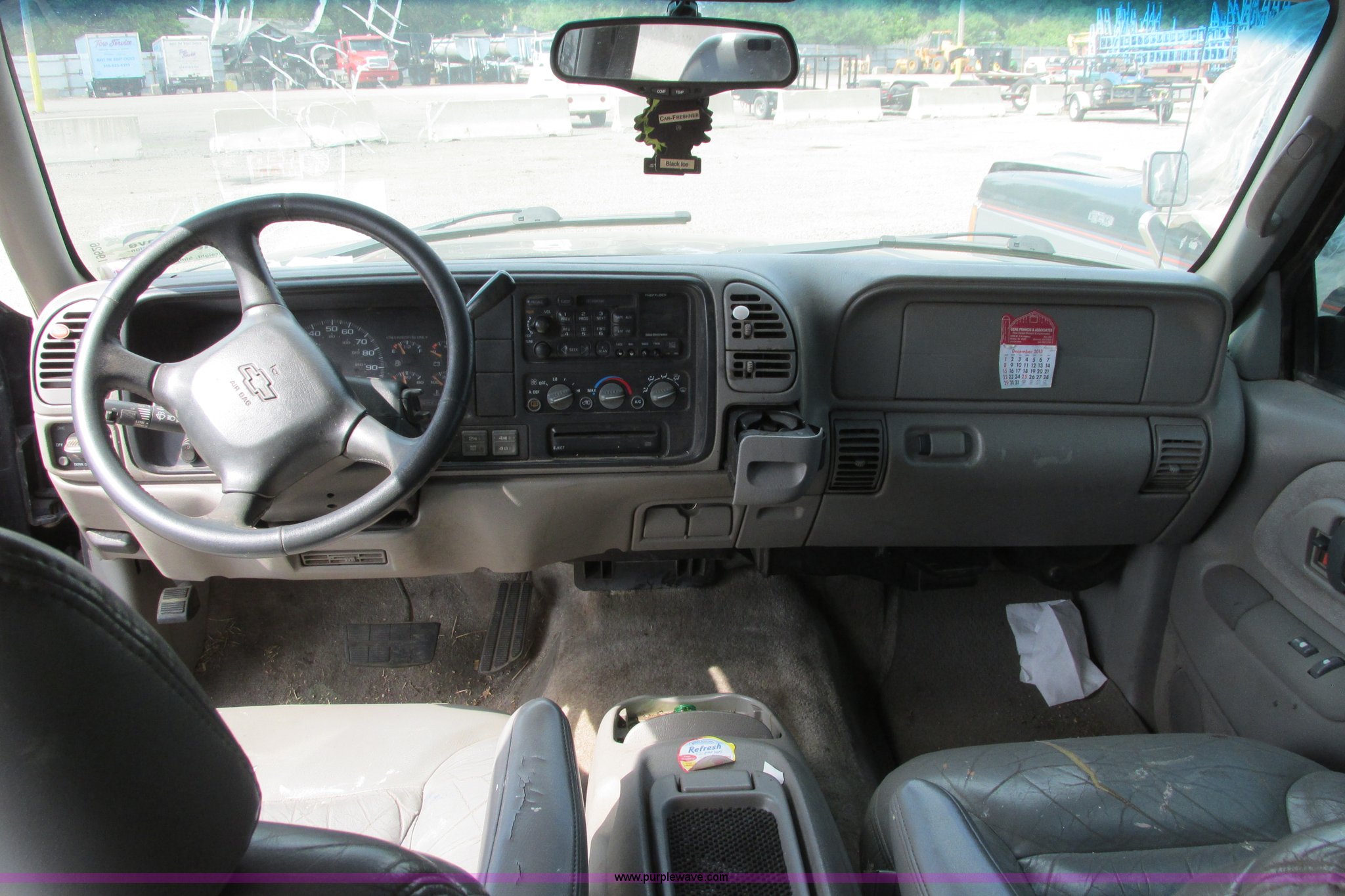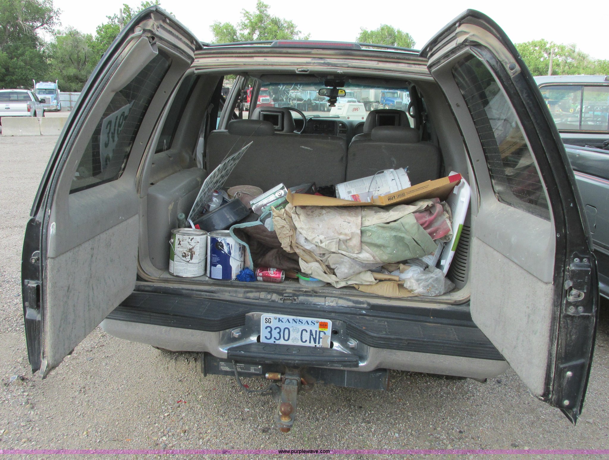 1999 Chevrolet Tahoe SUV. 200,580 miles on odometer, 5.7L V8 OHV 16V gas engien, Automatic transmission, Four wheel drive, AC and heat, Tilt, Cruise, AM/FM/CD/cassette, Power windows, locks, mirrors, and seats, Leather interior, Rear climate controls, Headrest DVD monitors, Receiver hitch, Four pin trailer wiring, 265/75R16 tires, Third row seat missing, Front seats torn, Driver's side mirror damaged, Over spray on vehicle exterior, Rear corner panel damage, Rear bumper damage, Rear door scraped, Interior/exterior cosmetic damage, Case# 14C4861. Vehicle is abandoned. No additional information is available. Vehicle does not have keys unless notated otherwise in the item listing.. View City Of Wichita Terms for title acquisition and item removal requirements.. 1GNEK13R7XJ568712. Ken's Auto Tow. 3730 South Broadway. Wichita, KS 67216
