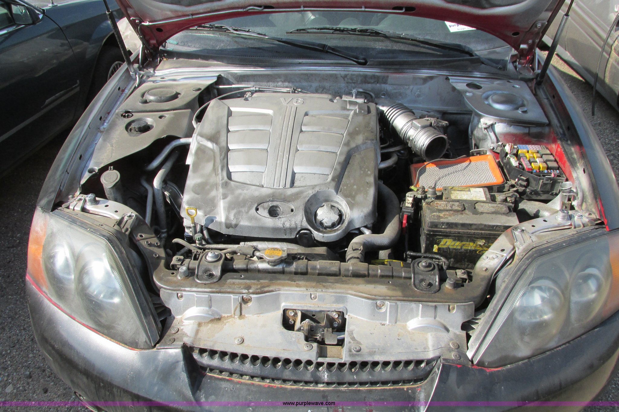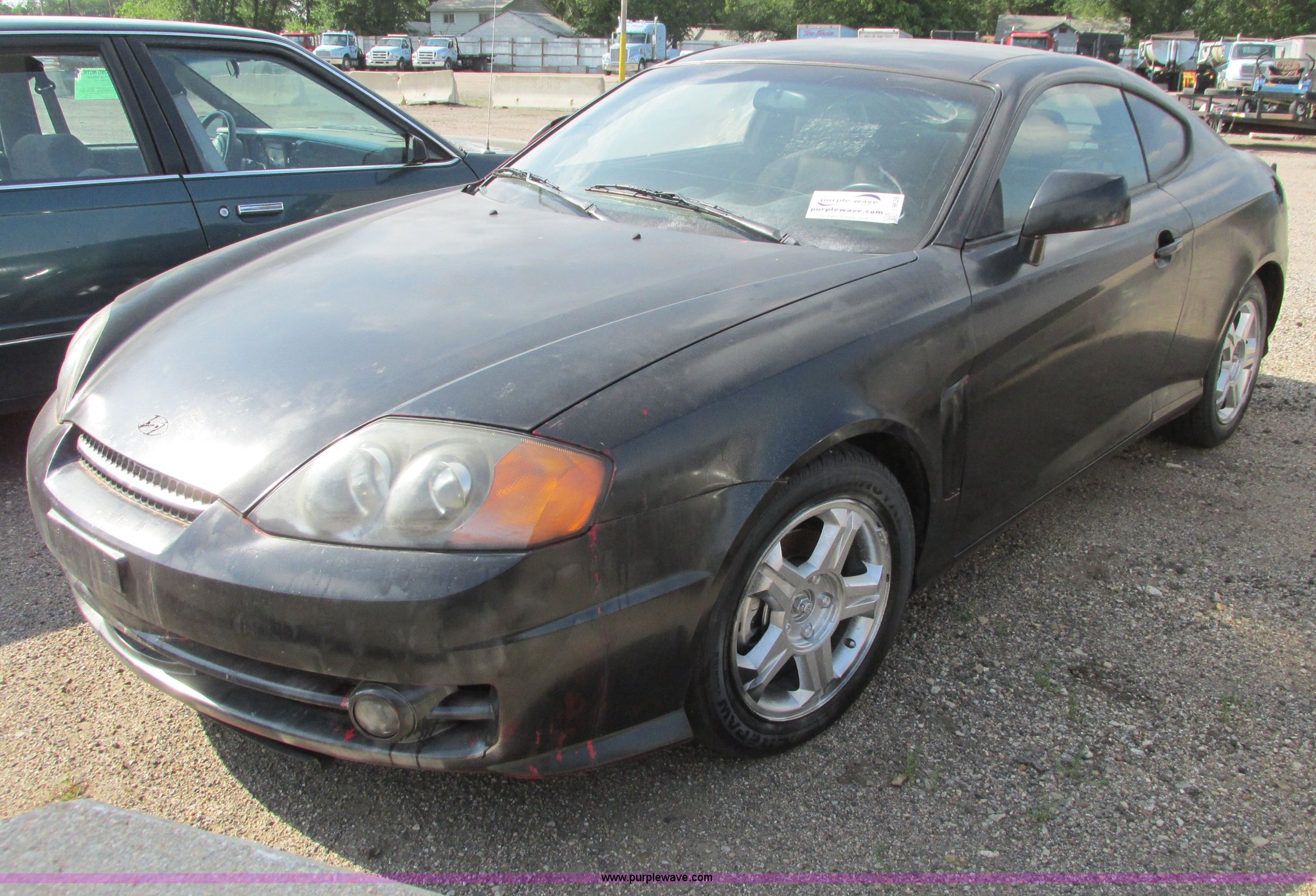 Purple Wave is selling a used Wrecked and Abandoned in Kansas. This item is a 2003 Hyundai Tiburon GT with the following: Unknown miles on odometer, 2.7L V6 DOHC 24V gas engine, Automatic transmission, AC and heat, Tilt, Cruise, Power windows and locks, Leather interior, Keys, 205/55R16 tires, Interior/exterior cosmetic damage, Passenger window broken, Exterior has been spray painted, Exterior trim missing, Battery dead, Interior parts and trim missing, Case# 14C23821