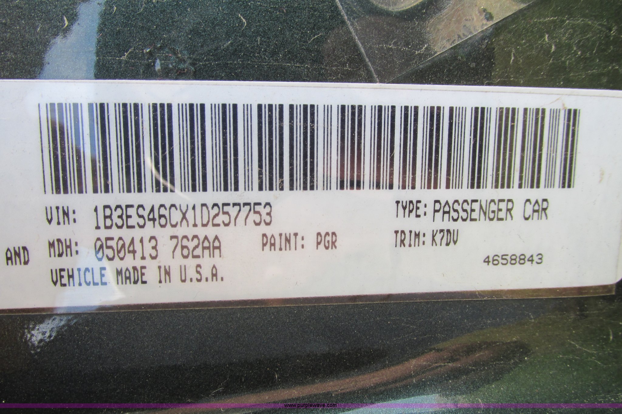 Purple Wave is selling a used Wrecked and Abandoned in Kansas. This item is a 2001 Dodge Neon with the following: 146,331 miles on odometer, 2.0L L4 SOHC 16V gas engine, Automatic transmission, AC and heat, Tilt, Aftermarket AM/FM/CD, Manual windows and locks, Cloth interior, (3) P185/65R14 tires, P195/75R14 tire, Keys, Interior/exterior cosmetic damage, Hail damage, Right rear corner panel damage, Front bumper damage, Hood damage, Trunk will not open, Driver's side mirror broken, Clear coat peeling, Paint faded, Radio face plate damaged, Headliner damage, Rear seat dislodged, Case# 14C20808