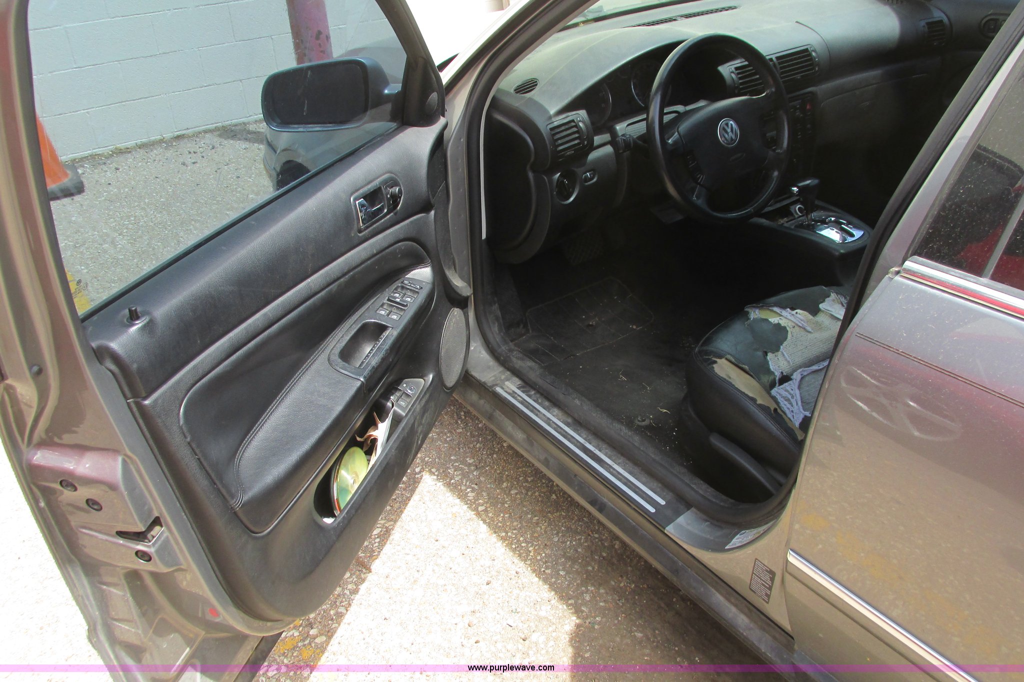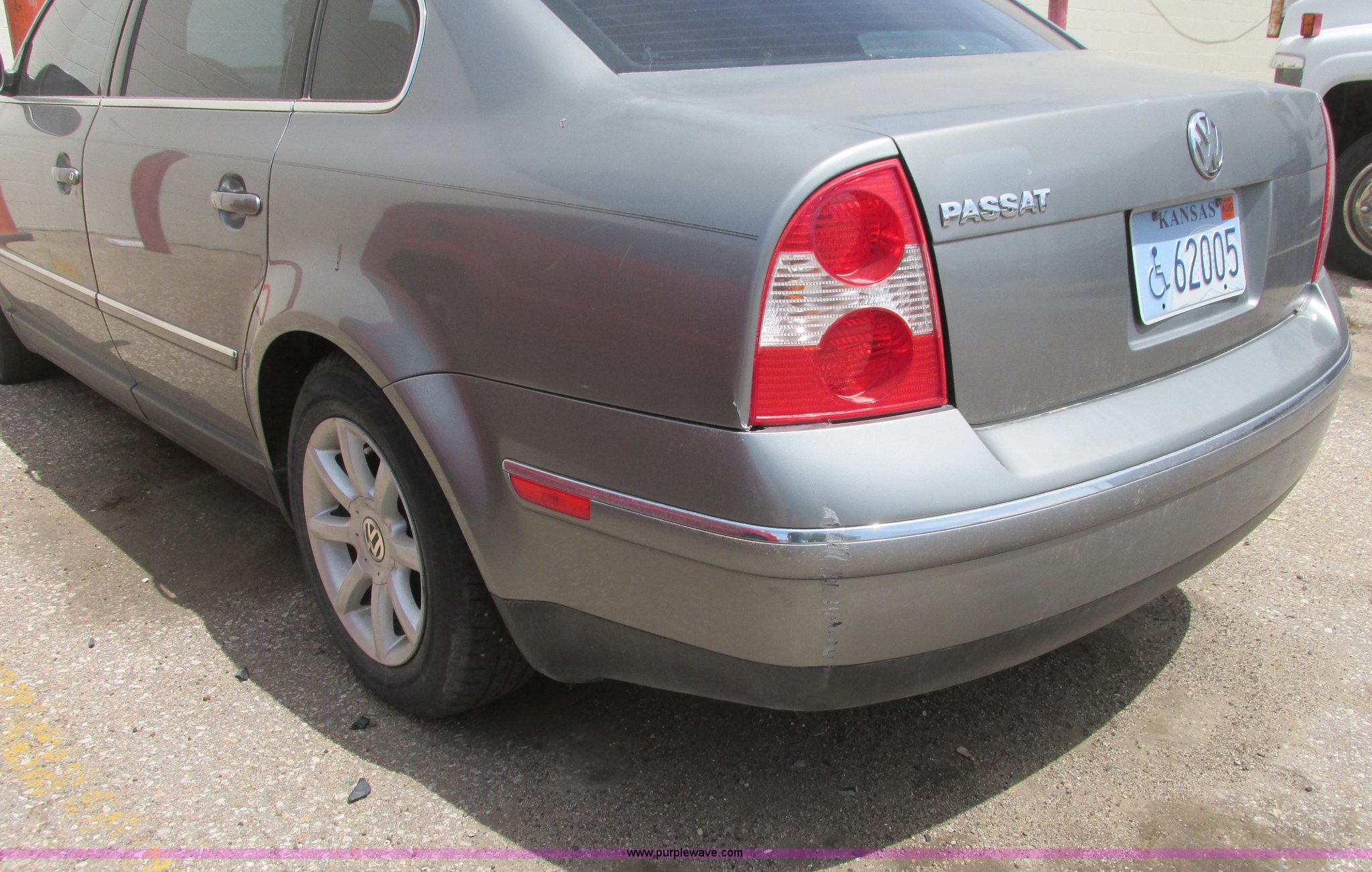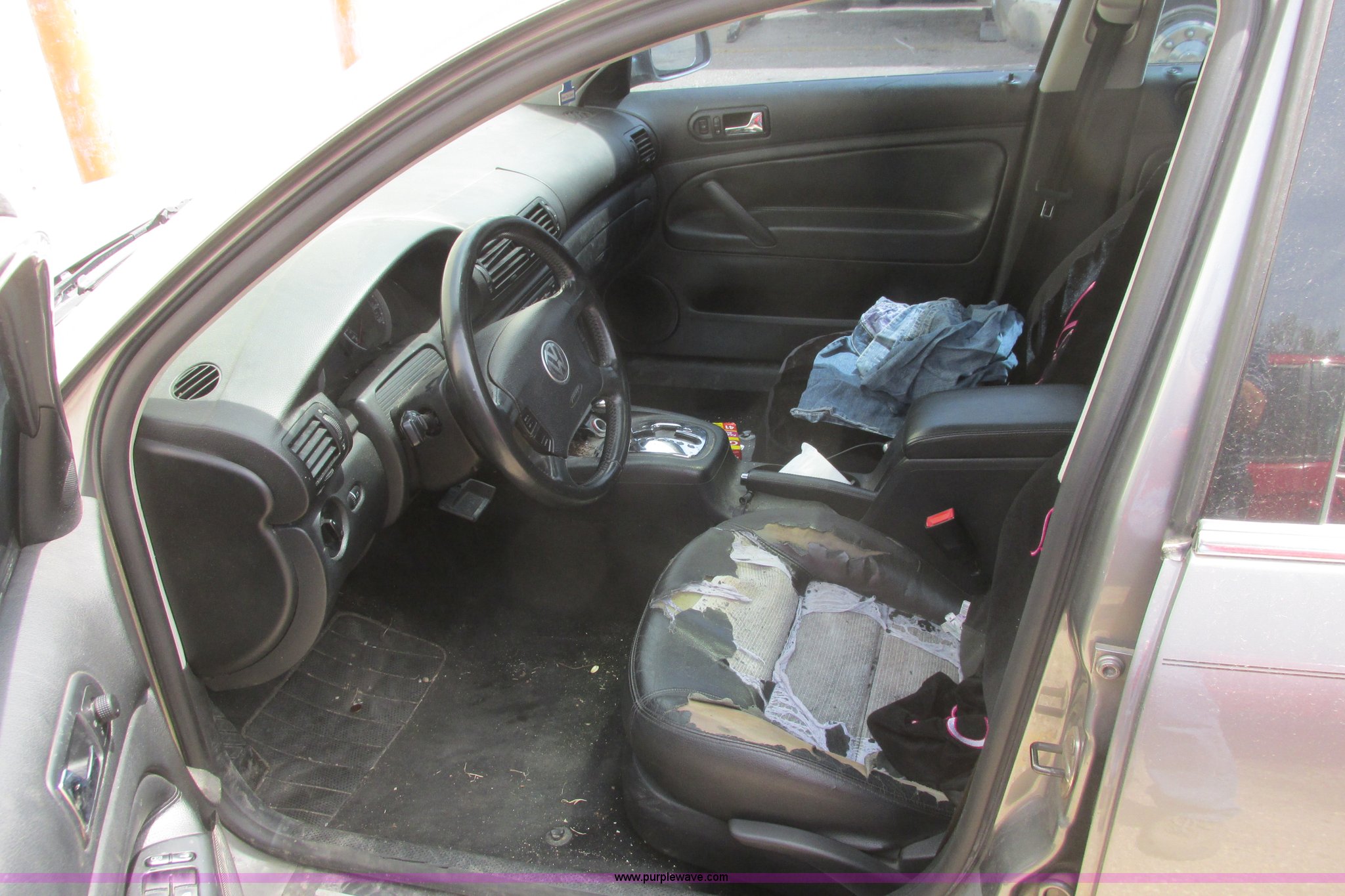 Purple Wave is selling a used Wrecked and Abandoned in Kansas. This item is a 2004 Volkswagen Passat GLS with the following: Unknown miles on odometer, 1.8L L4 DOHC 20V turbo gas engine, Automatic transmission, AC and heat, Tilt, Cruise, AM/FM/CD/cassette, Power windows, locks, and mirrors, Heated seats, Leather interior, Sunroof, Steering wheel audio and cruise controls, Keys, 195/65R15 tires, Battery dead, Interior/exterior cosmetic damage, Left rear door will not open, Left front tire flat, Dents and scratches, Front bumper scratched, Driver's seat torn, Side view mirrors broken, Case# 14C018032