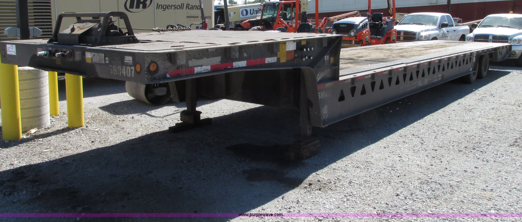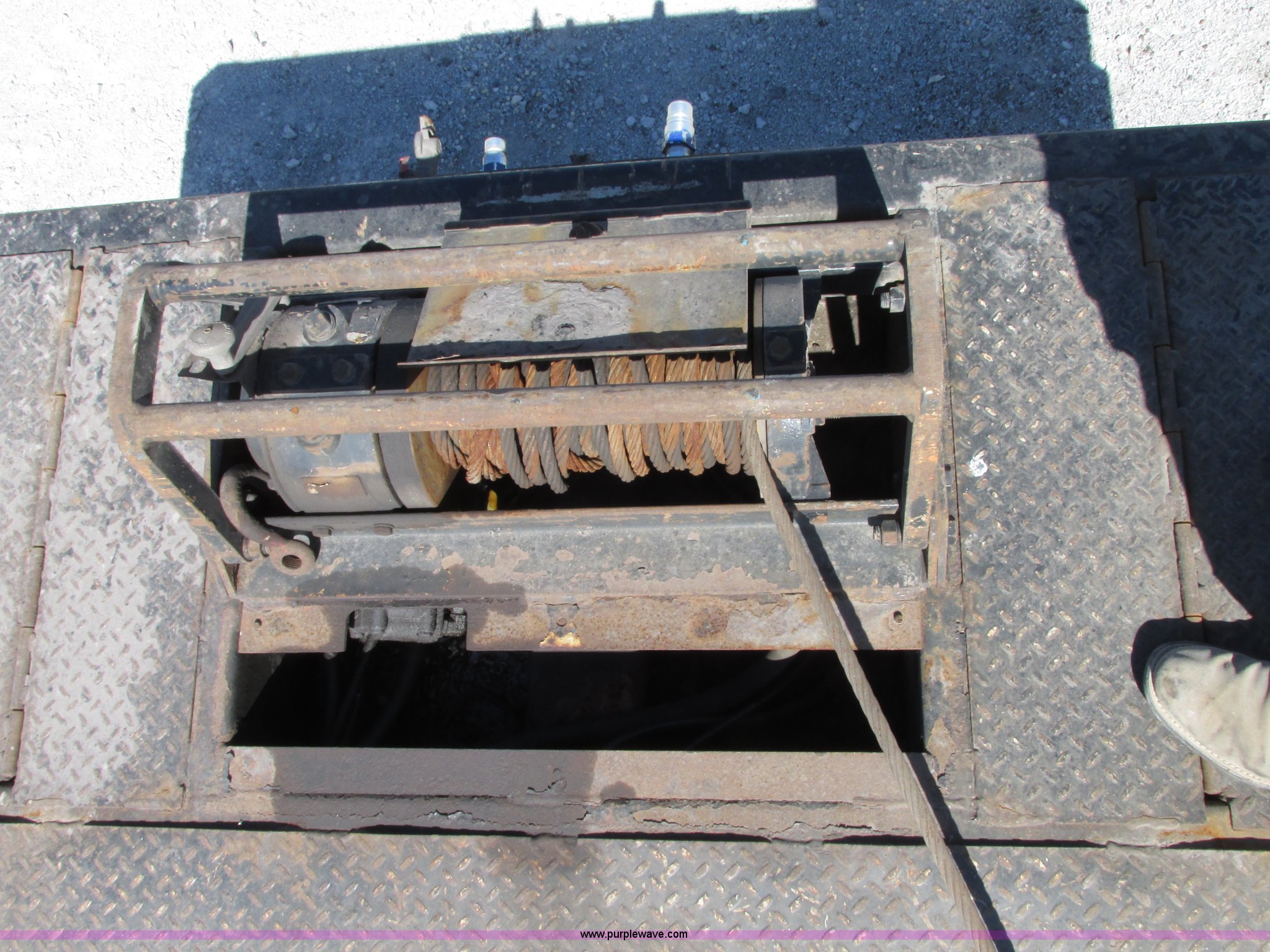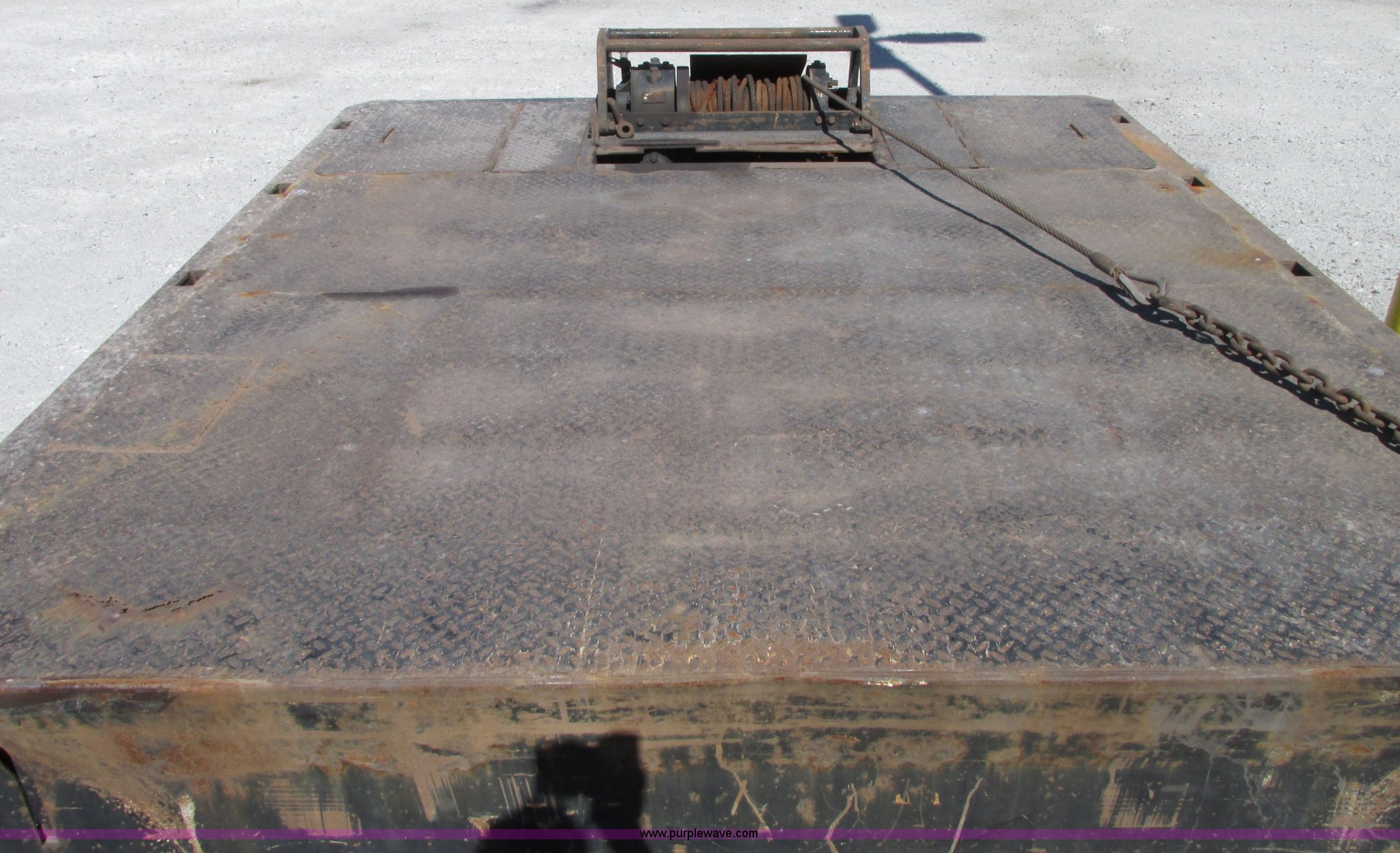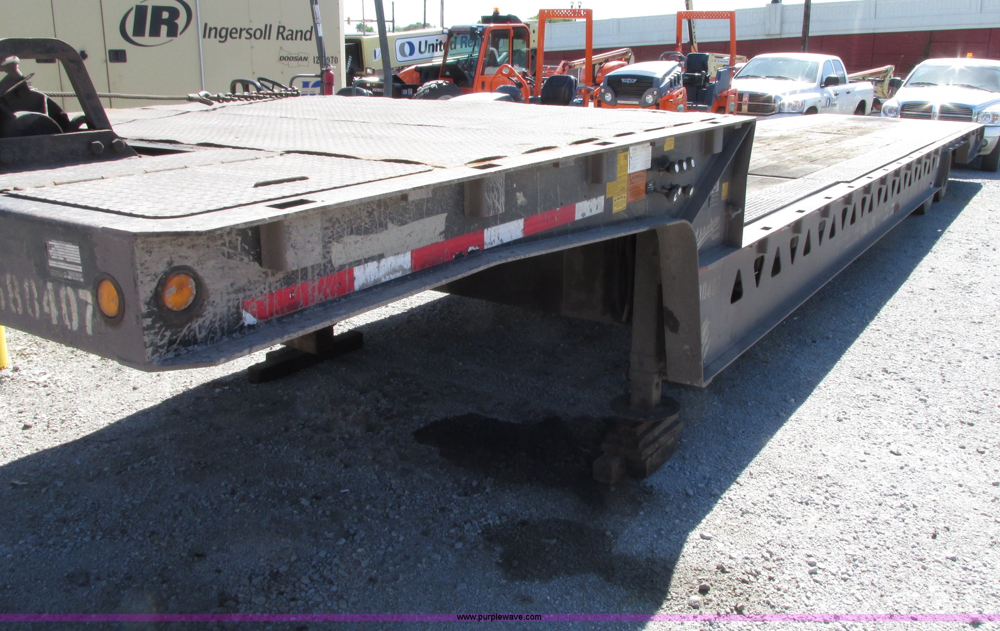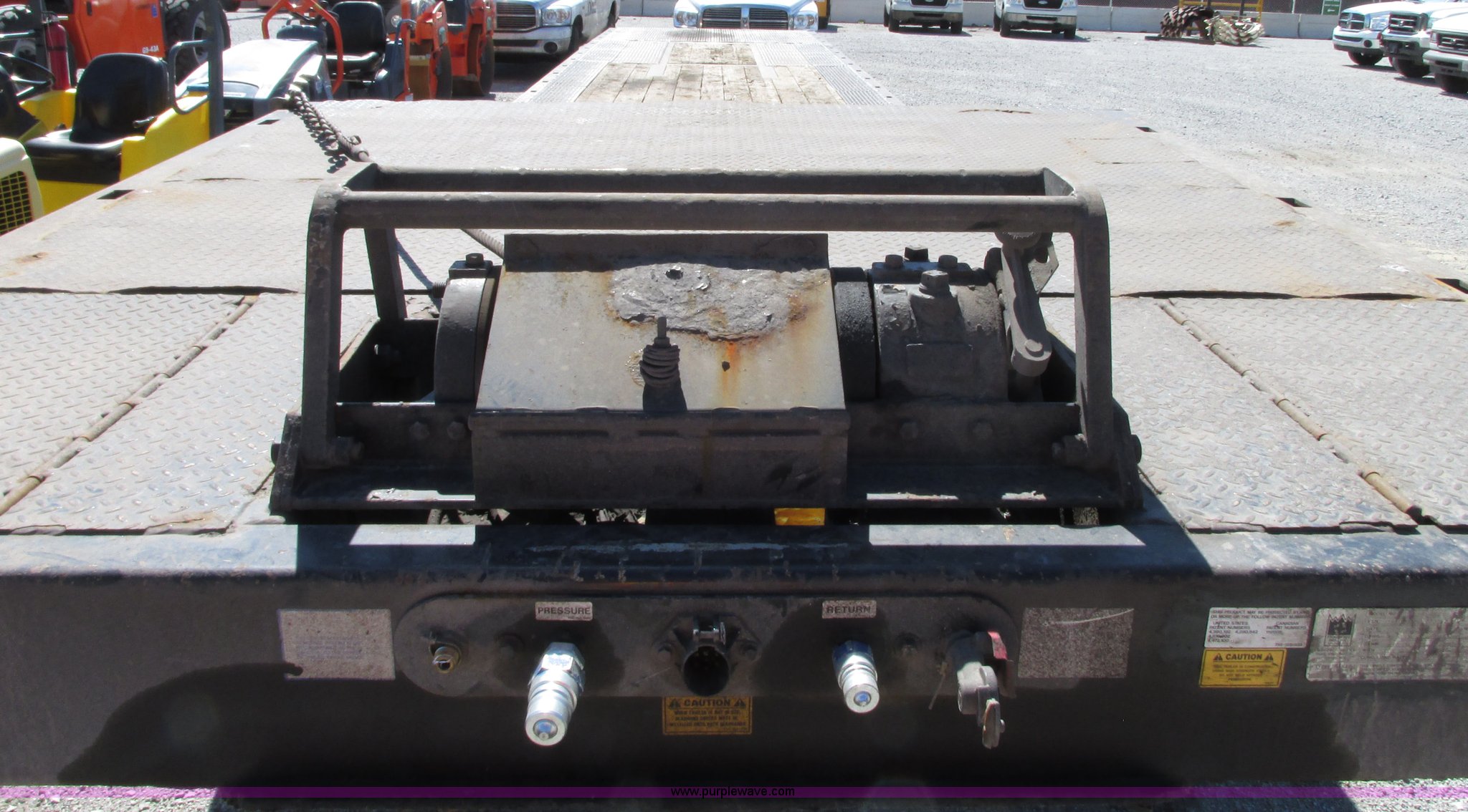 Purple Wave is selling a used Equip. Trailer in Indiana. This item is a 2006 Trail King TK70HT-482 equipment trailer with the following: 48'L x 102"W, 38.5' flatbed, 9.5' upper deck, 8' hydraulic tail with 4' fold under, 8' recessed deck ramp, Cable winch, Wood and steel deck, Dual hydraulic controls stations, 10R17.5 tires, GVWR 86,580 lbs, GAWR 17,640 lbs, EIN 580407RA