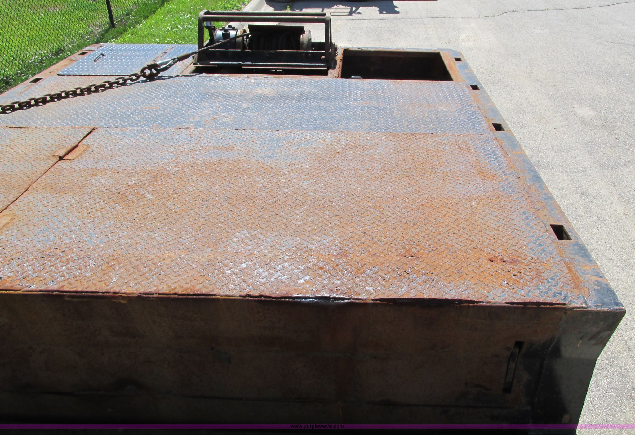 Purple Wave is selling a used Equip. Trailer in Iowa. This item is a 2007 Trail King TK70HT trailer with the following: 48'L x 102"W, 8'L hydraulic tail with 4' fold under, 8' recessed upper deck ramp, Cable winch, Load rating 50,000 lbs in 16', 10RX17.5 tires, GVWR 86,560 lbs, GAWR 17,640 lbs, State inspection recently completed, EIN 655916RA