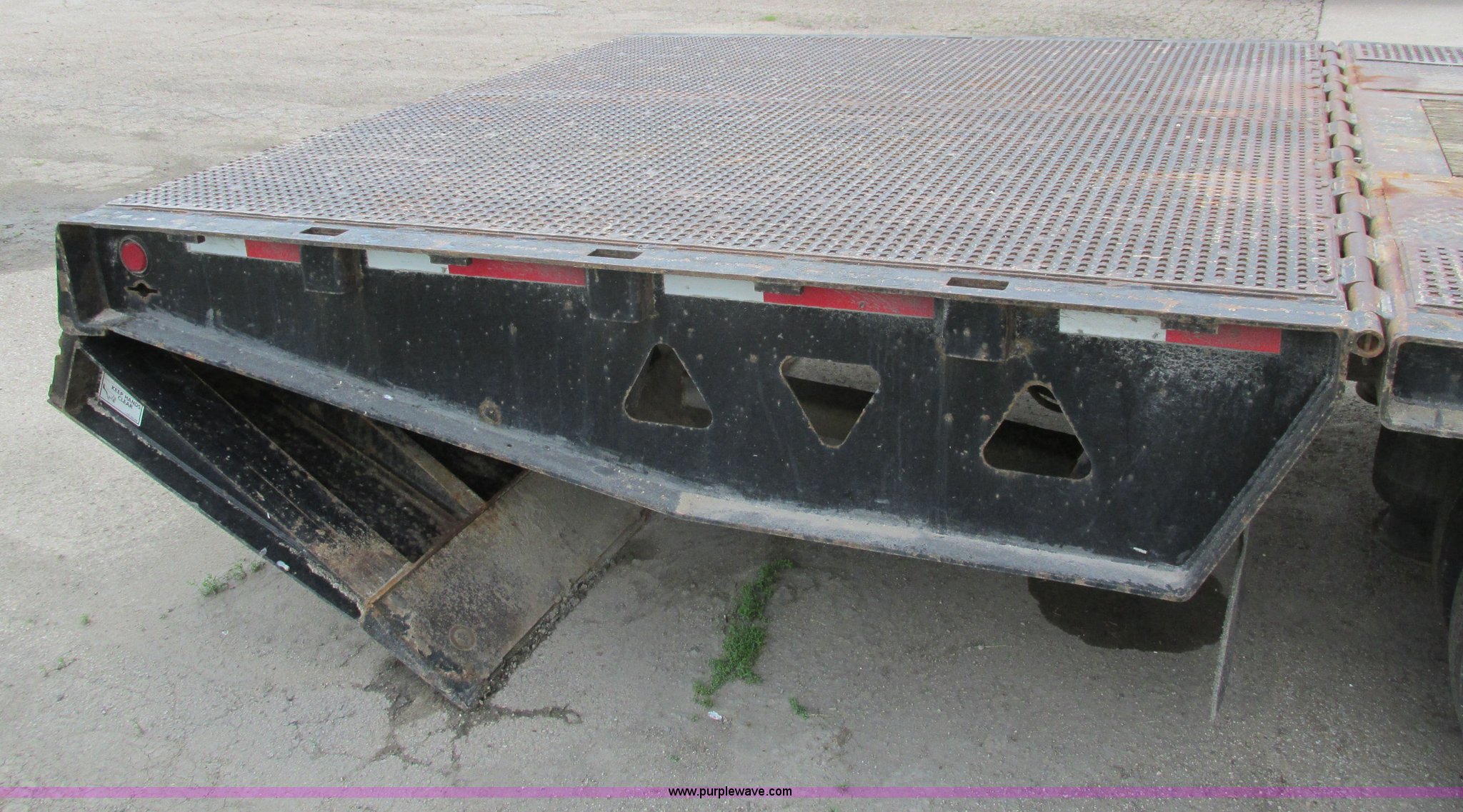 Purple Wave is selling a used Equip. Trailer in Iowa. This item is a 2006 Trail King TK70HT-482 trailer with the following: 48'L x 102"W, 8' hydraulic tail with 4' fold under, 8' recessed upper deck ramp, Cable winch, Load rating 50,000 lbs in 16', 10R17.5 tires, 16 ply, GVWR 86,620 lbs, GAWR 17,640 lbs, EIN 615277RA