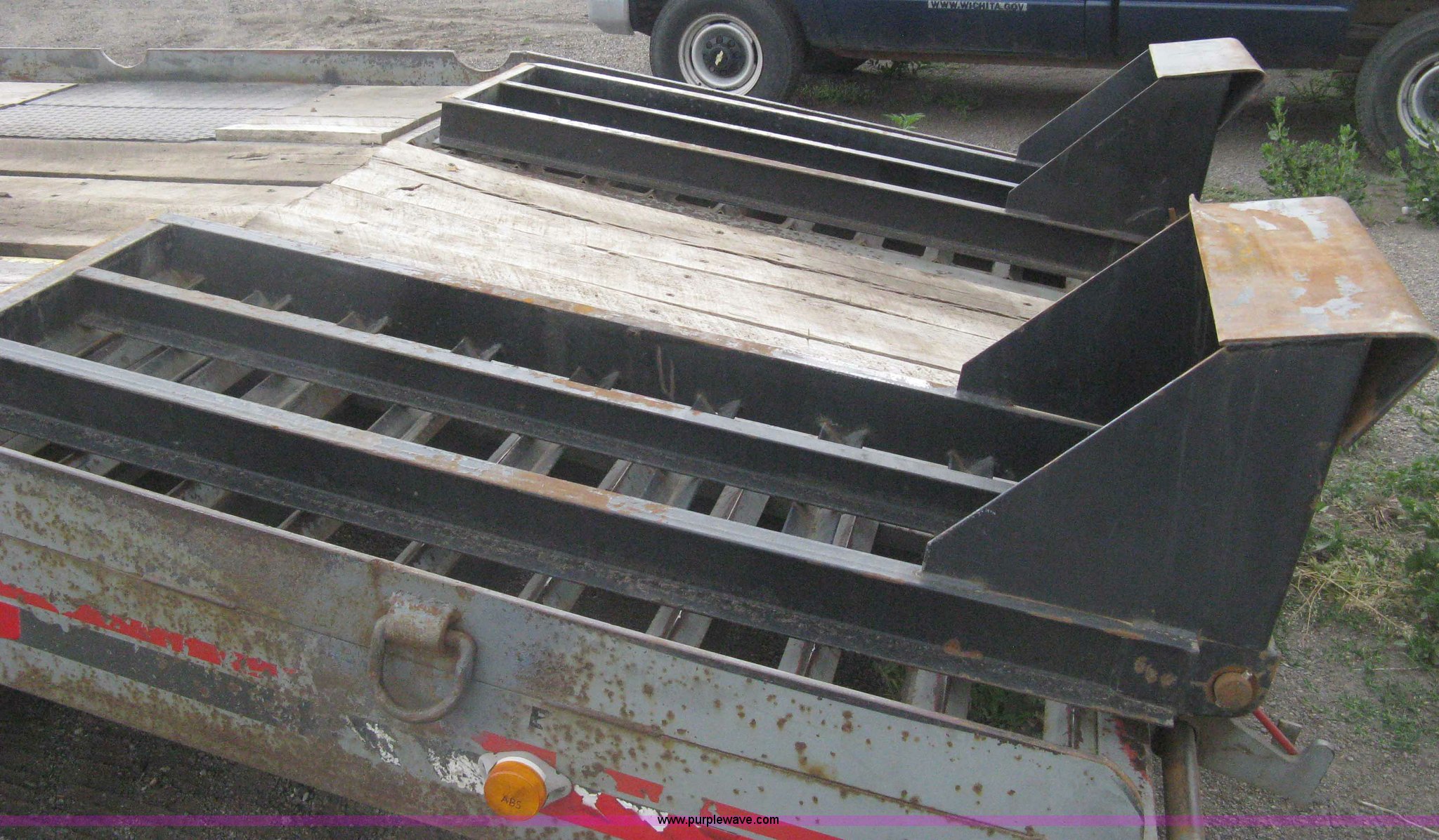Purple Wave is selling a used Equip. Trailer in Kansas. This item is a 2000 Interstate 20DTA flatbed trailer with the following: 20'L x 8'W deck, 5'L dove tail, 5'L x 21.5"W fold-up ramps, Wood deck, D-ring tie downs, Oil bath hubs, Single post jack stand, Diamond plate storage box, Adjustable height pintle hitch, Spring suspension, Air brakes, LT245/75R16 tires, Unit# 7-0759