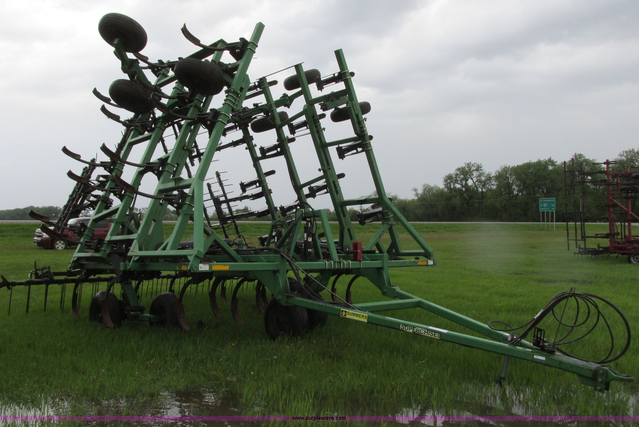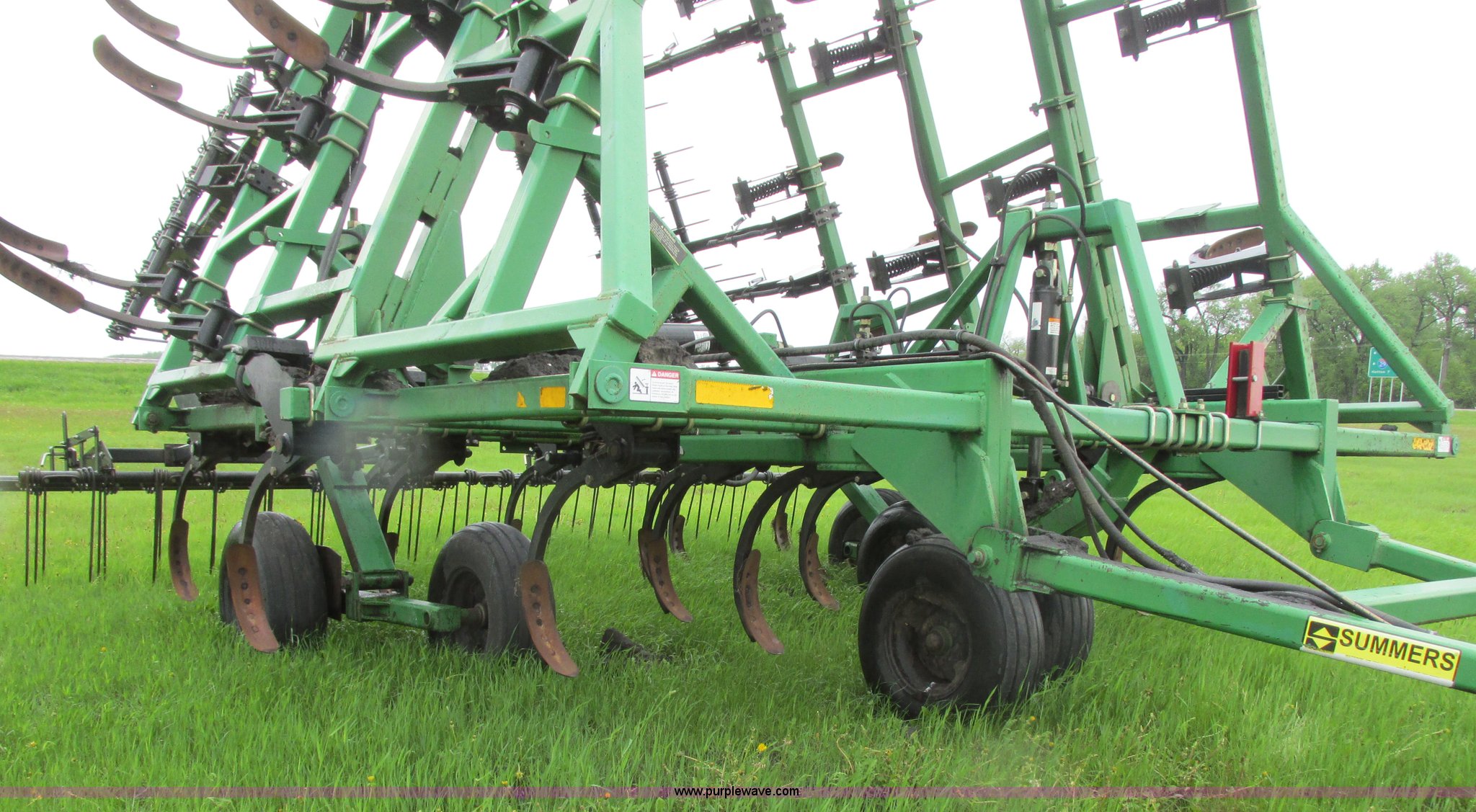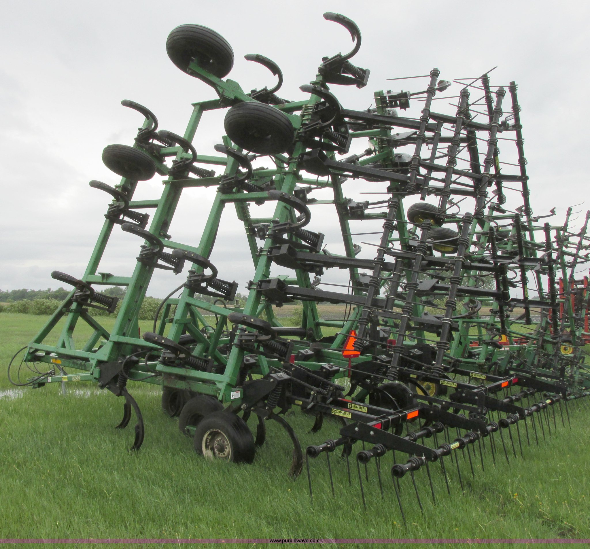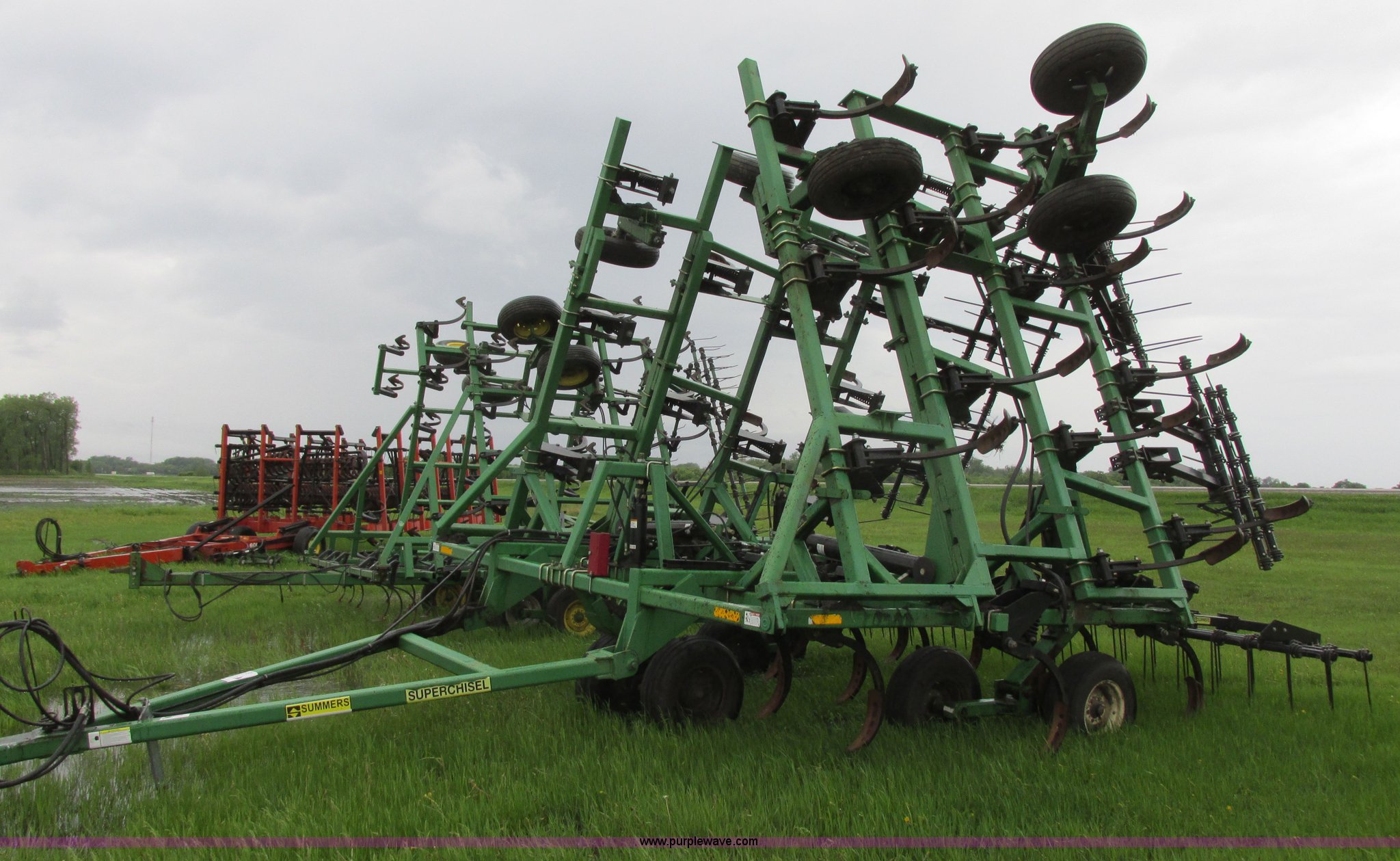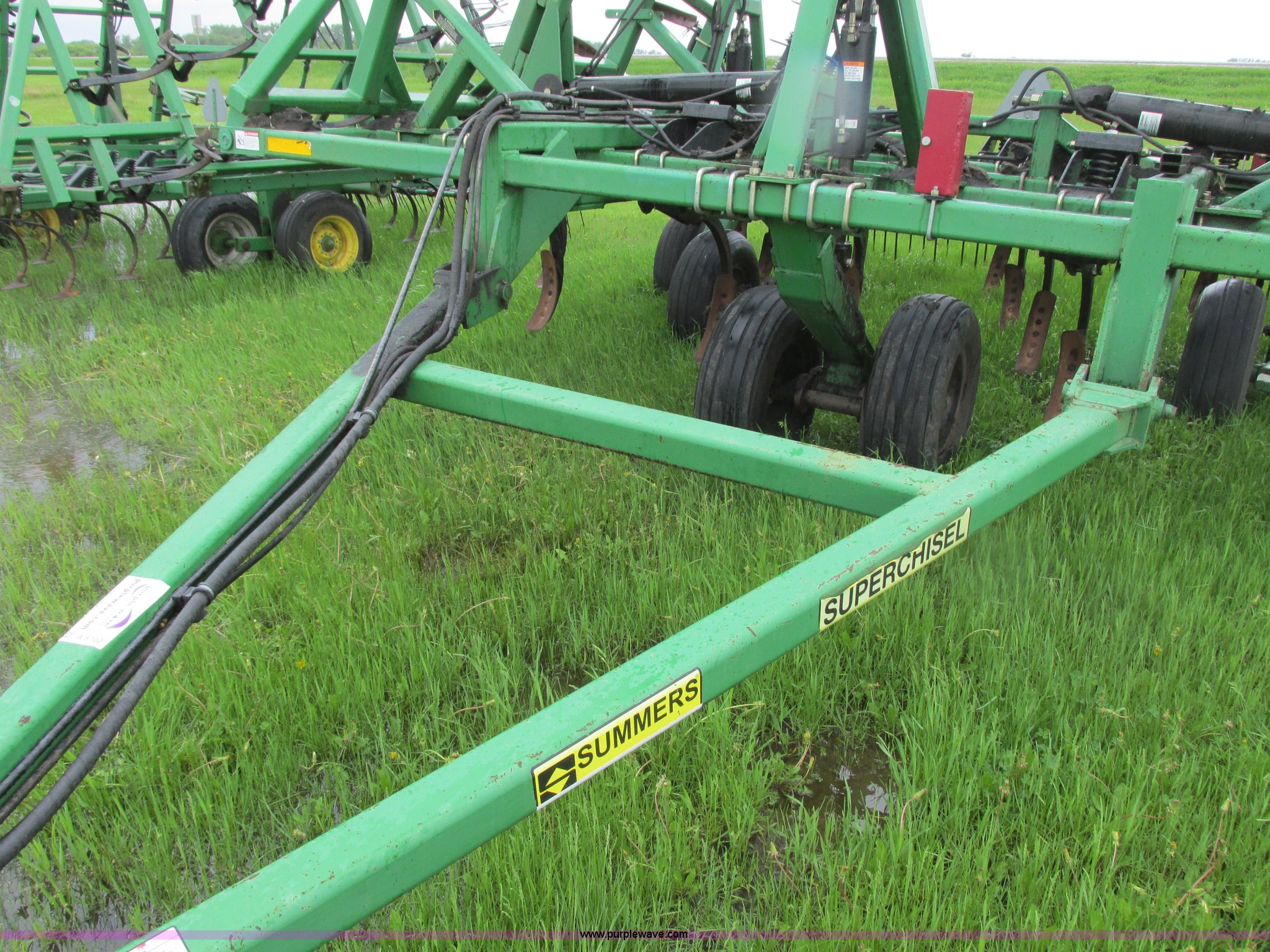 Purple Wave is selling a used Chisel in North Dakota. This item is a 2003 Summers Superchisel chisel plow with the following: 40'W, (3) sections, (40) spring flex C shanks, 12" spacing, Reversible chisel points, Hydraulic lift, Hydraulic folding wings, Floating slab hitch, Walking tandem dual wheels, Summers 106 (3) bar coil tine harrow, 11L-15SL tires, Serial C0701