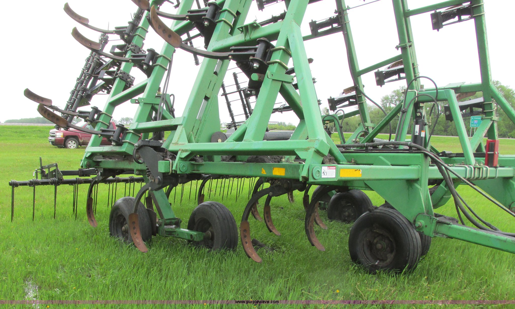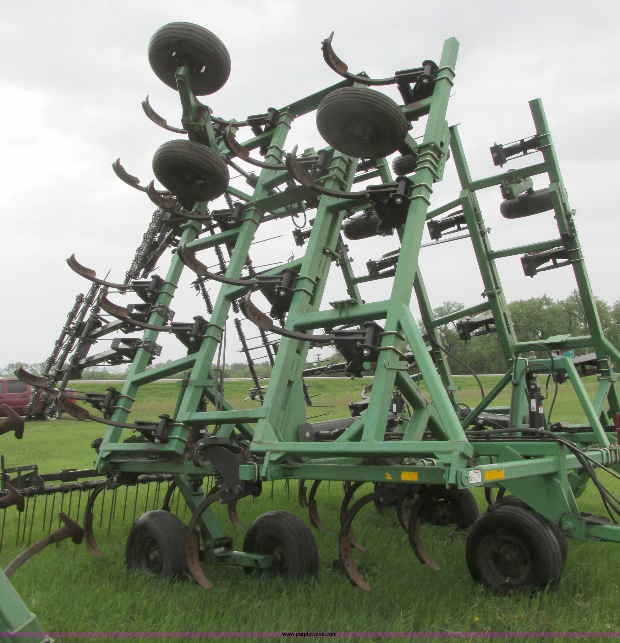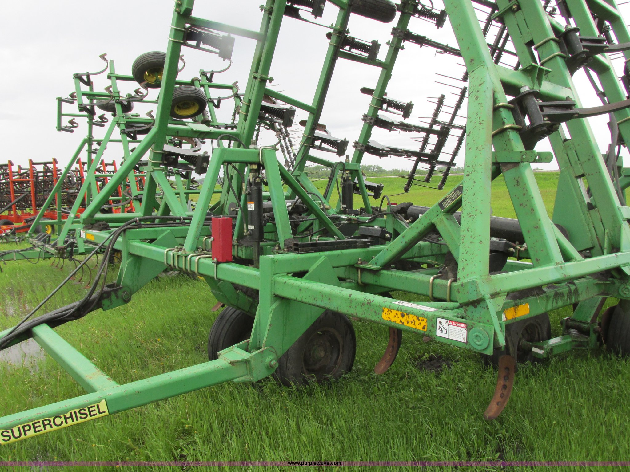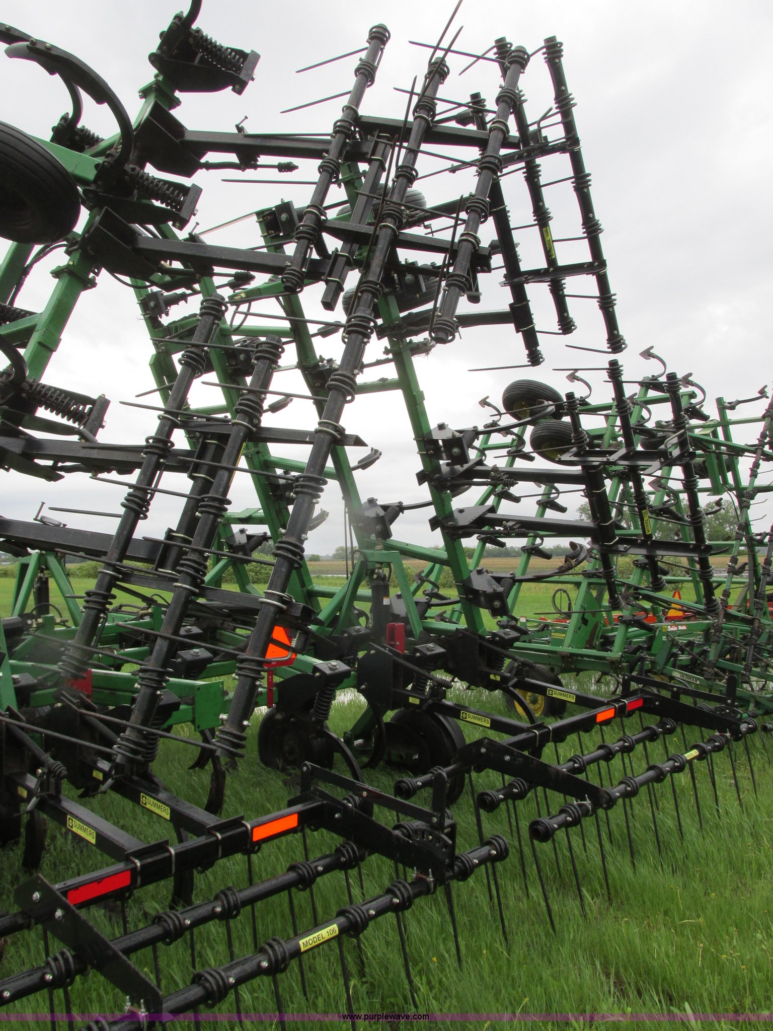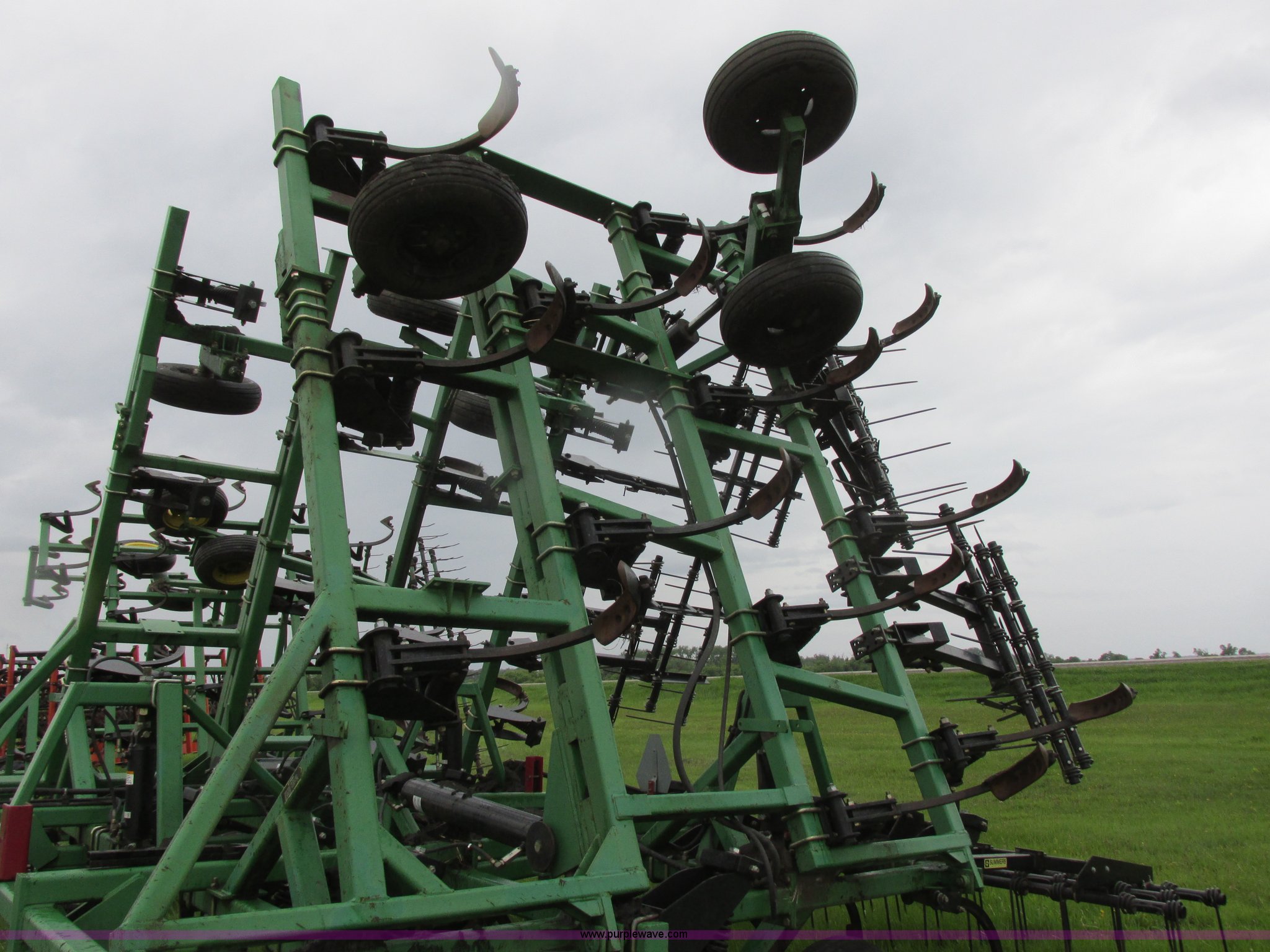 Purple Wave is selling a used Chisel in North Dakota. This item is a 2003 Summers Superchisel chisel plow with the following: 40'W, (3) sections, (40) spring flex C shanks, 12" spacing, Reversible chisel points, Hydraulic lift, Hydraulic folding wings, Floating slab hitch, Walking tandem dual wheels, Summers 106 (3) bar coil tine harrow, 11L-15SL tires, Serial C0701