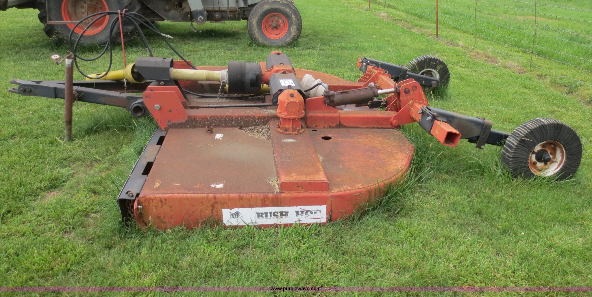 Purple Wave is selling a used Mower, Cutter, Shredder in Kansas. This item is a Bush Hog 3210 rotary mower with the following: 10'W cut, 540 PTO, Hydraulic lift, Pin hitch, (2) blades, Left gear box inoperable, Serial 1201870