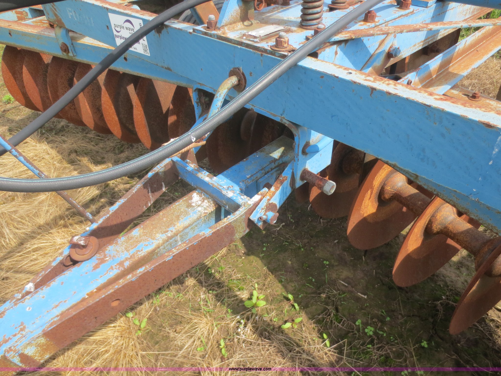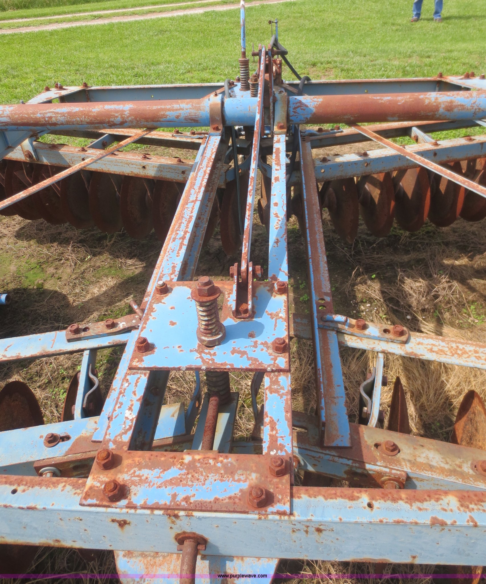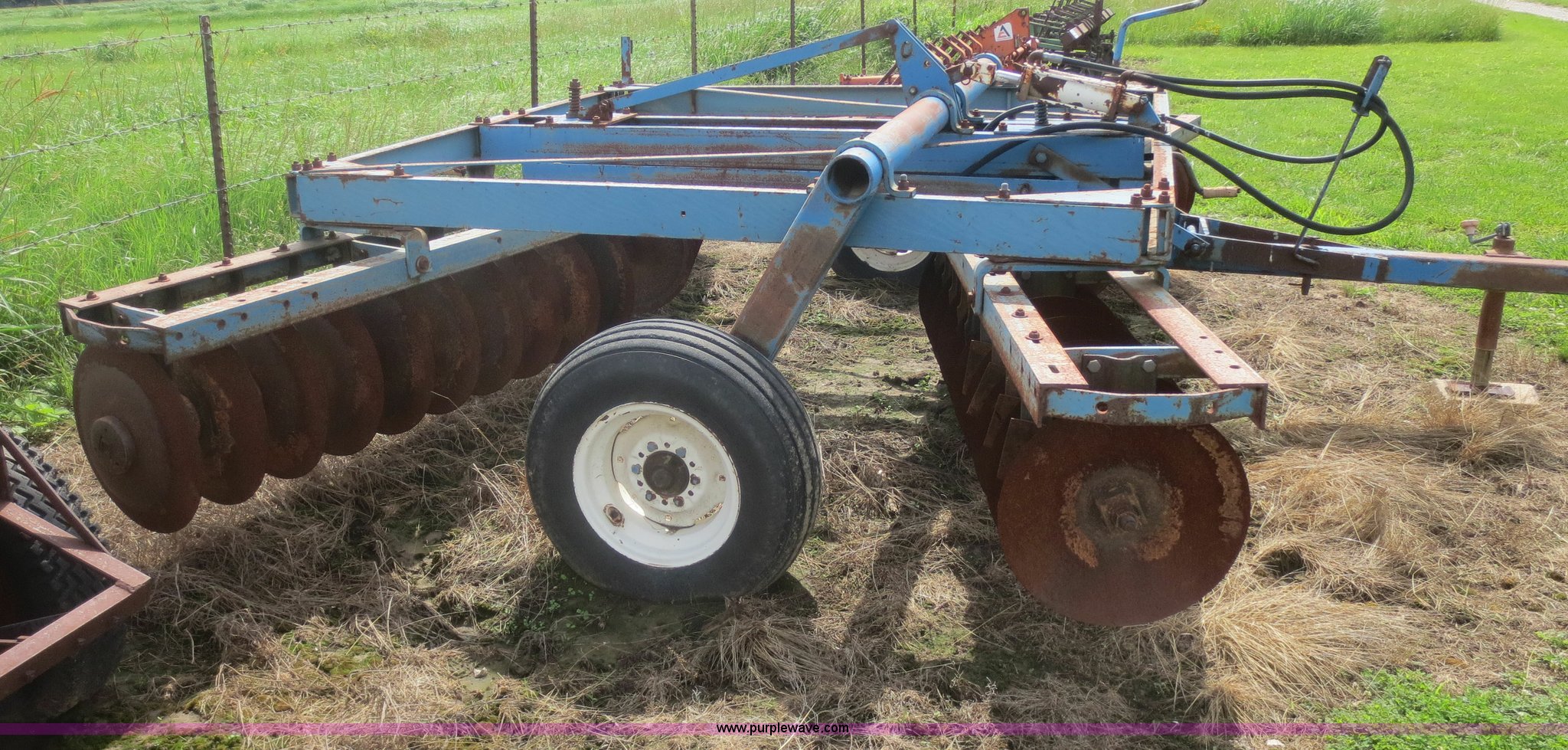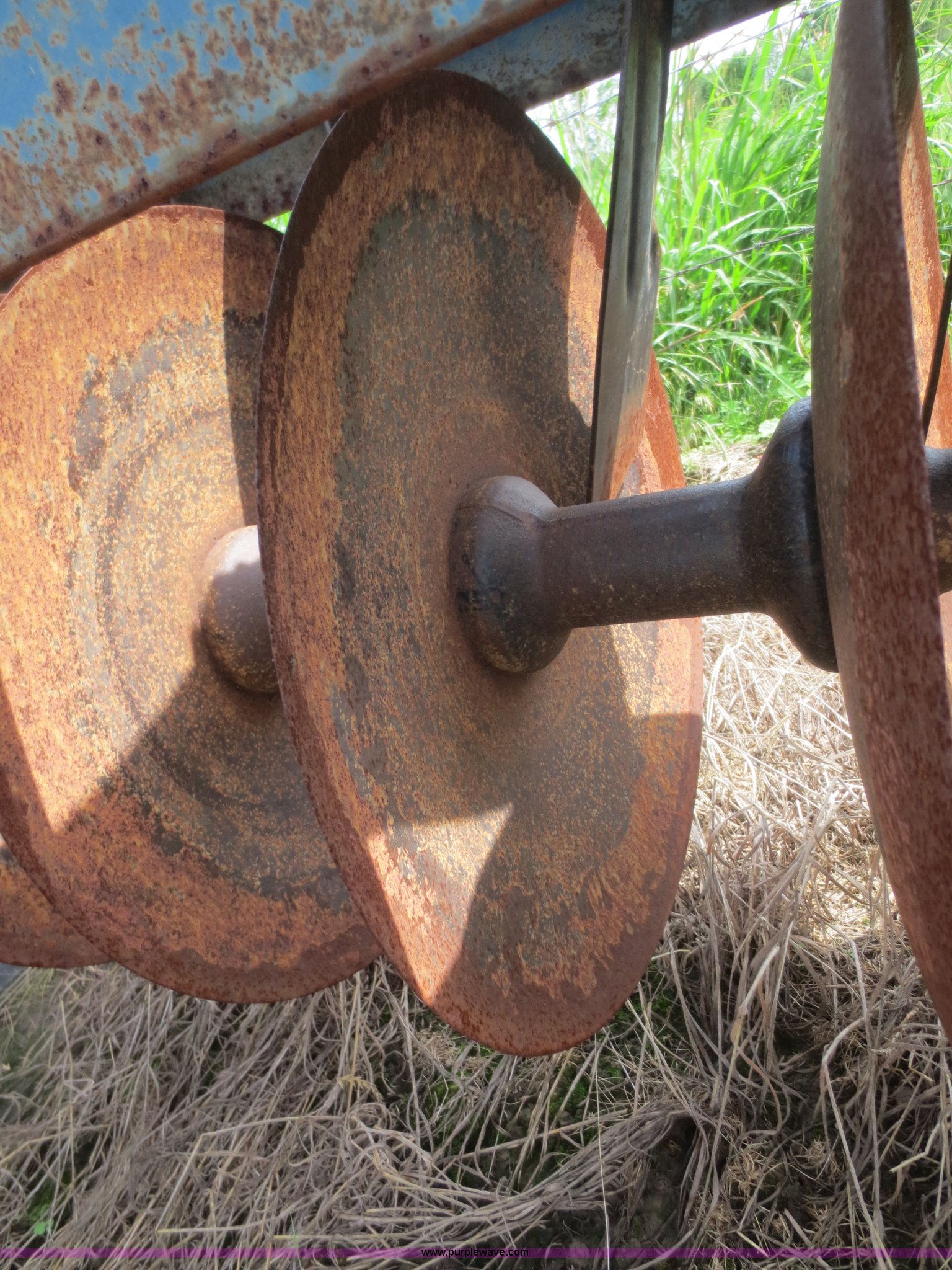 Purple Wave is selling a used Disk in Kansas. This item is a Ford 240 tandem off-set disk with the following: 13'W, 19" front blades, 20" rear blades, Hydraulic lift, Pin hitch, 11L-15 tires, Serial WN12232