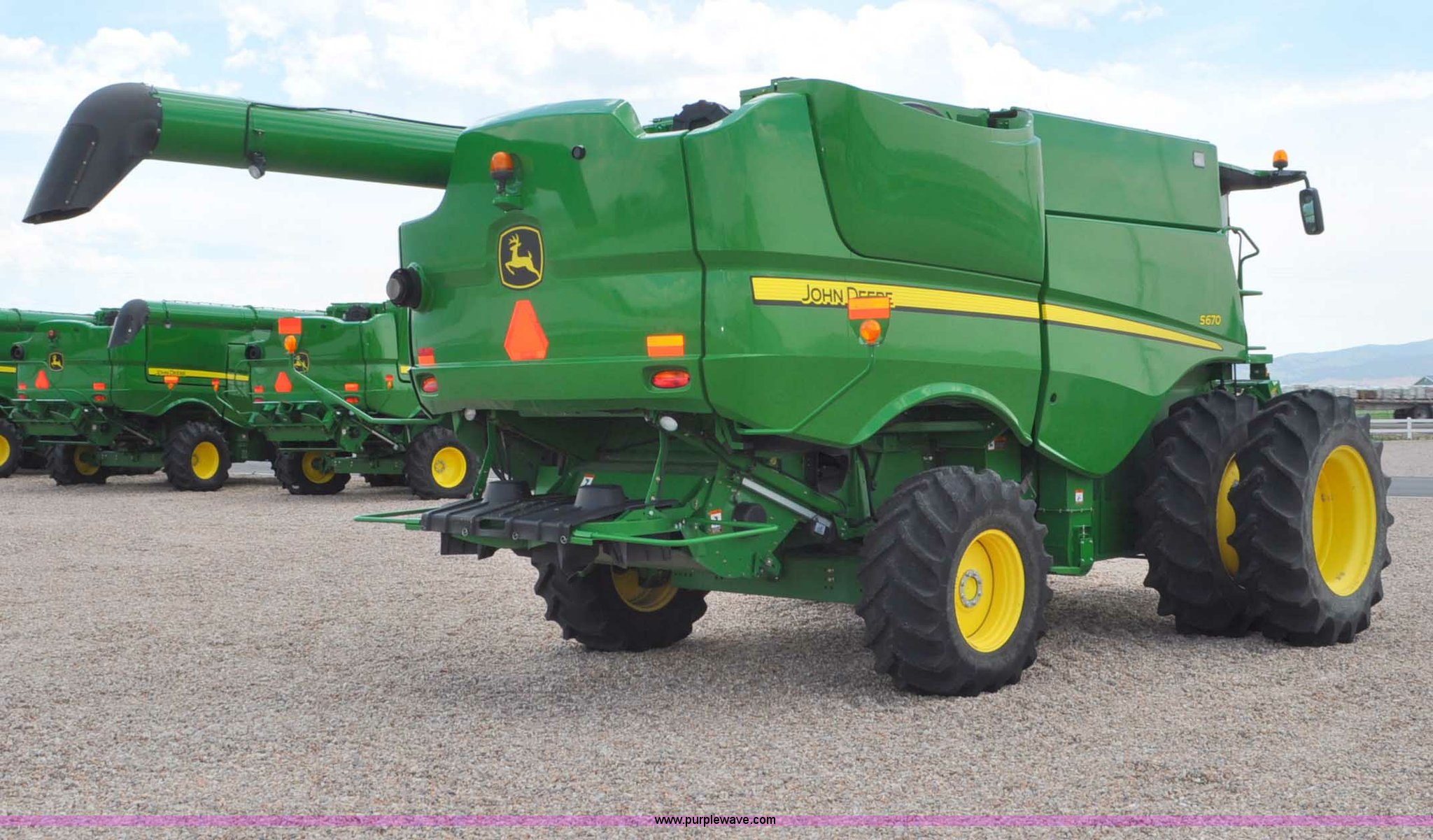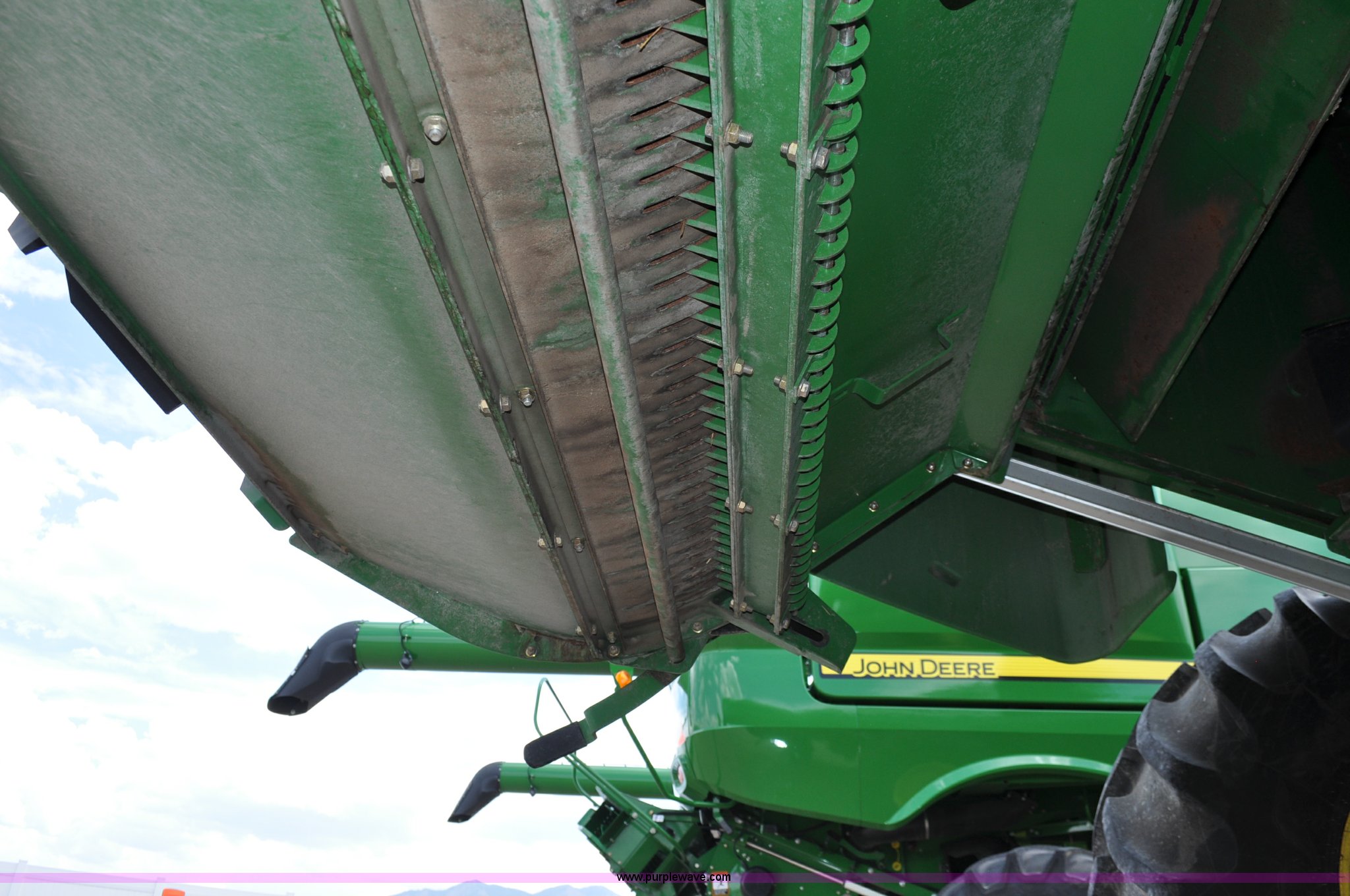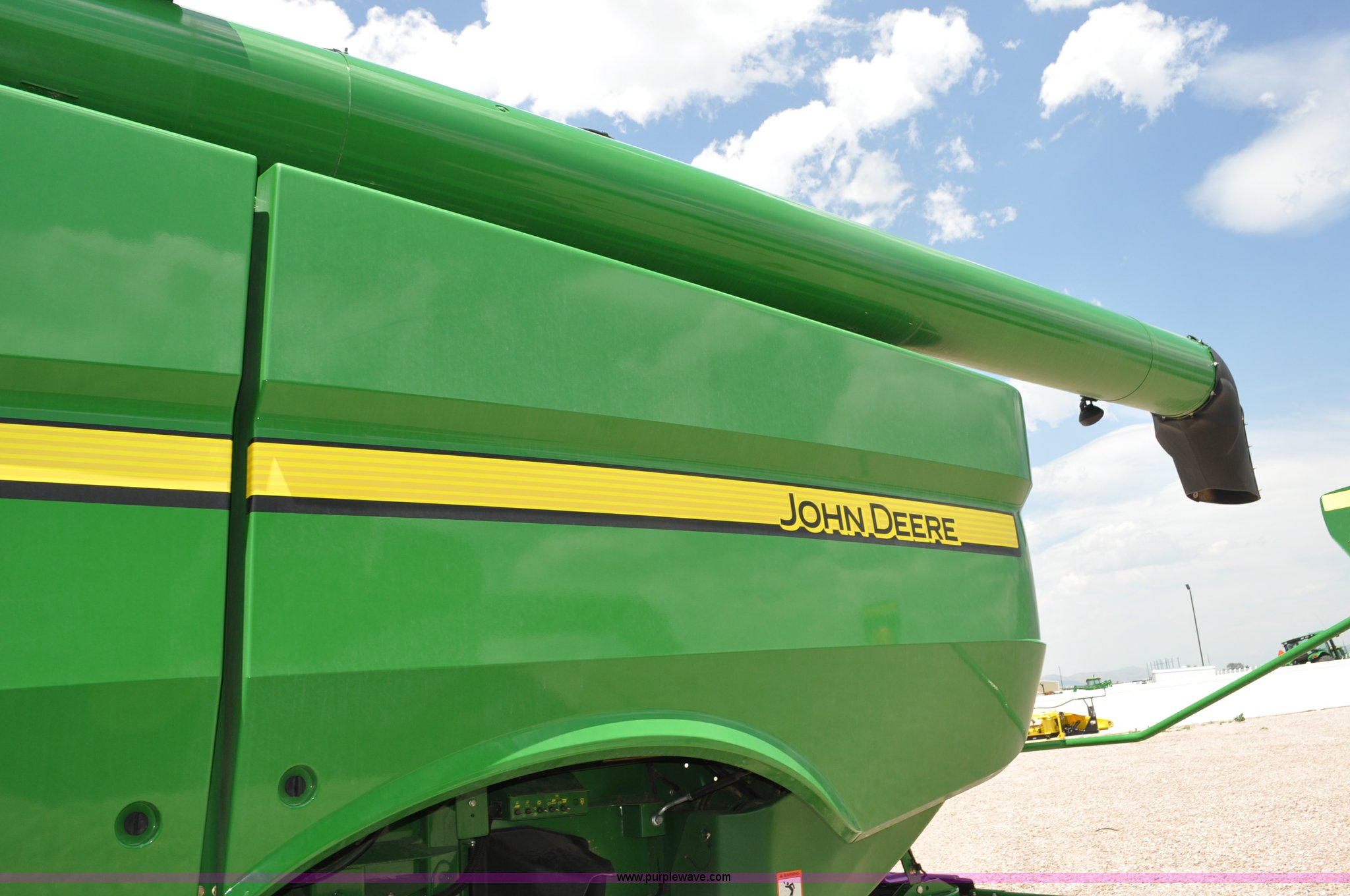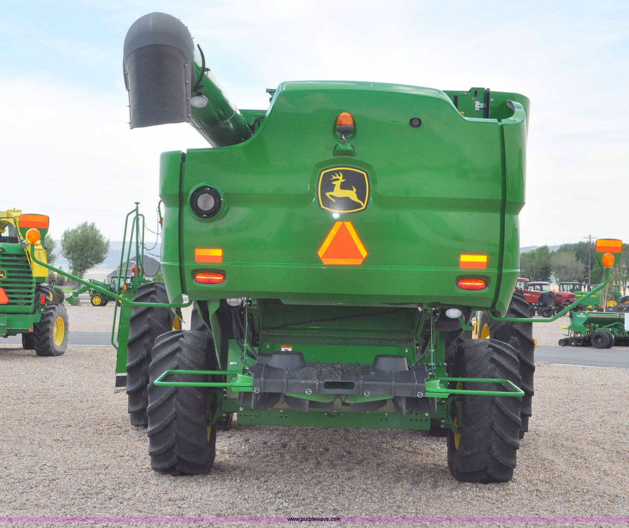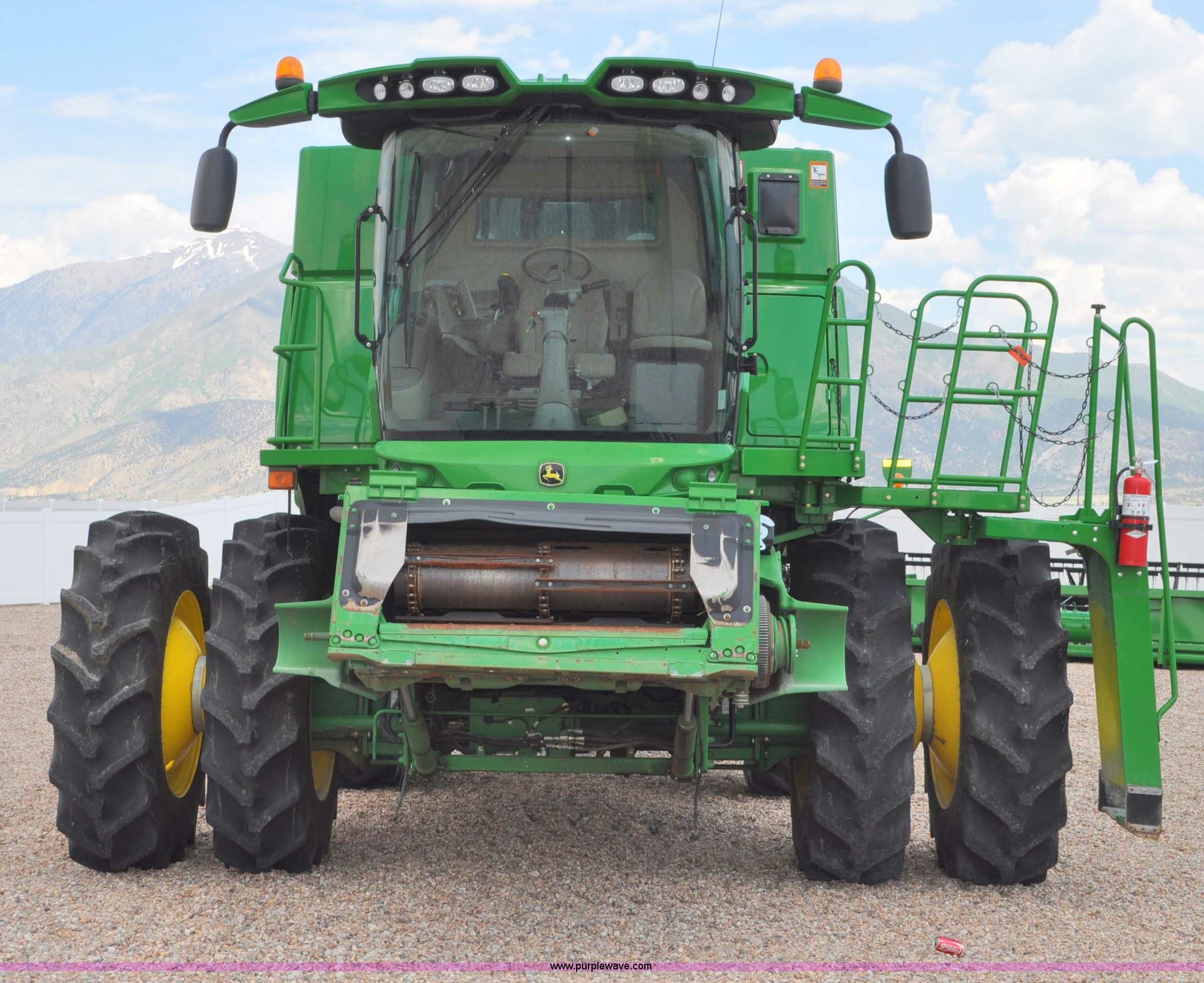 Purple Wave is selling a used Combine in Utah. This item is a 2012 John Deere S670 combine with the following: 615 engine hours on meter, 389 separator hours on meter, John Deere 6090 six cylinder diesel engine, 373 HP, Serial RG6090R017942, ProDrive hydrostatic transmission, 2F-2R gears, Contour Master feeder house, Reverser, Single point hookup, Straw chopper, Differential lock, Premium cab, AC and heat, AM/FM/CD/MP3/XM/weatherband/bluetooth, Air suspension seat, Instructor's seat, Tilt steering wheel, Shades and visors, GS3 2630 mounted on arm rest, Auto trac equipped, No GPS receiver, 12V refrigerator under instructor's seat, Power and heated mirrors, Bin extensions, Work lights, Straw spreader, Greenstar enabled, Yield monitor, Yield mapping, 300 bu. bin capacity, HarvestSmart feedrate control system, Powercast powered tailboard, Small wire concaves, 520/85R42 dual front tires, 600/65R28 rear tires, Operator's manual, Recently replaced batteries, Unit from Mormon Church Farm, Serial 1H0S670SJC0746257, Dealer Tag# U13J0695