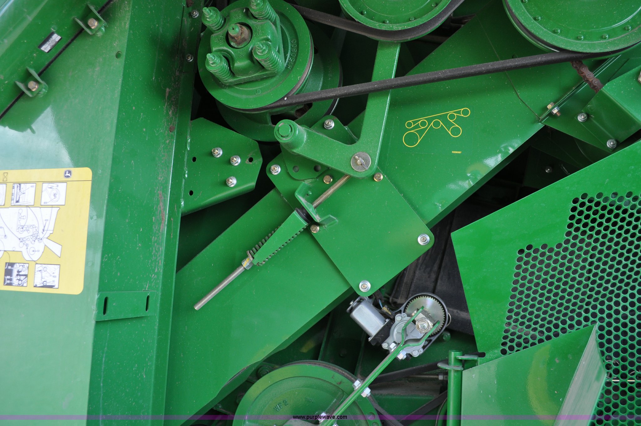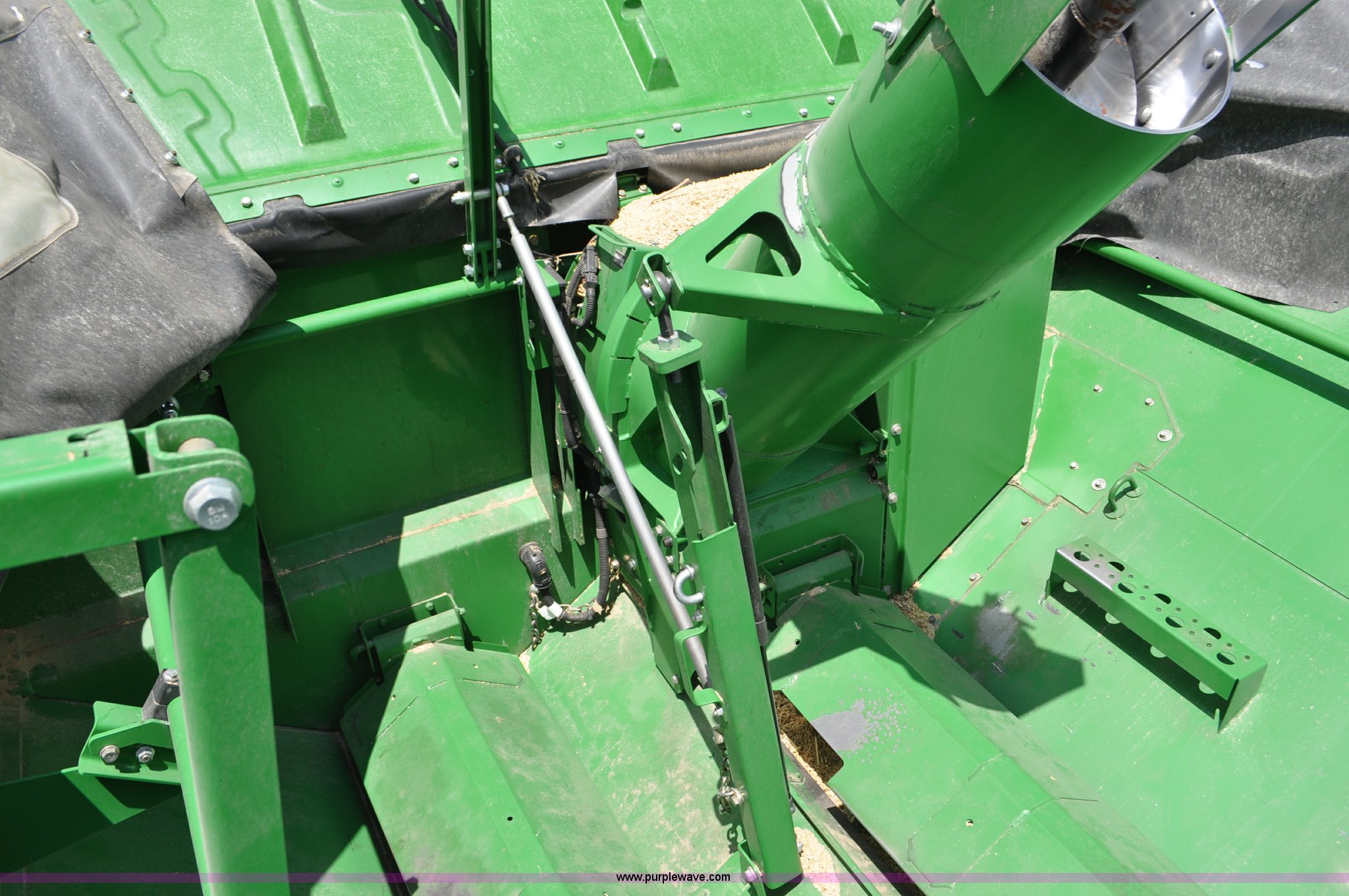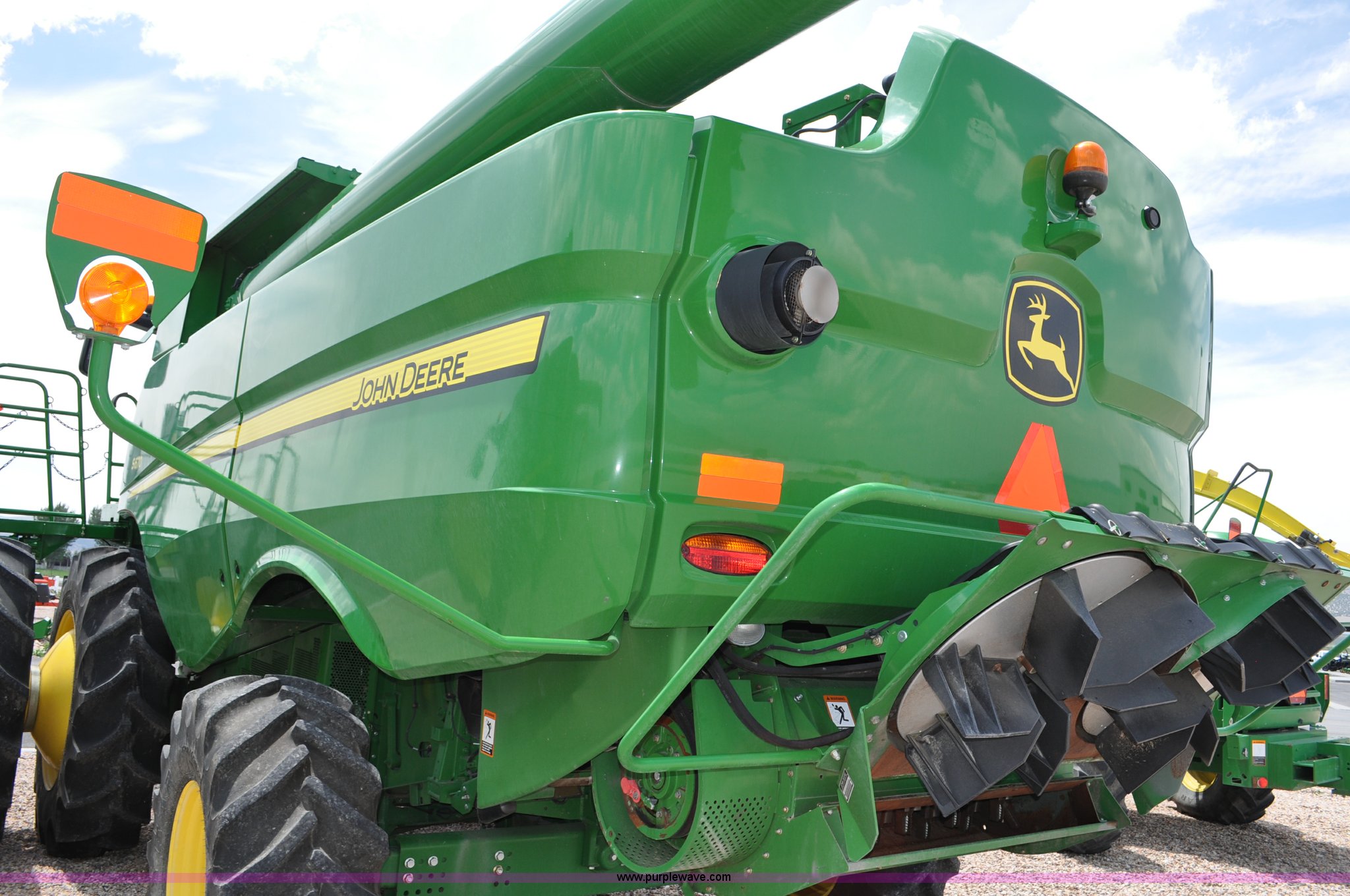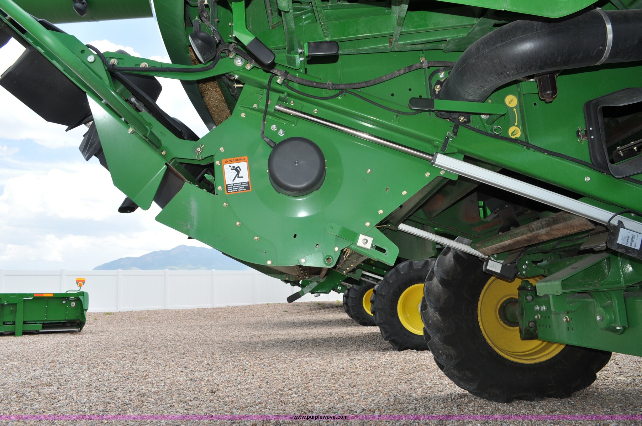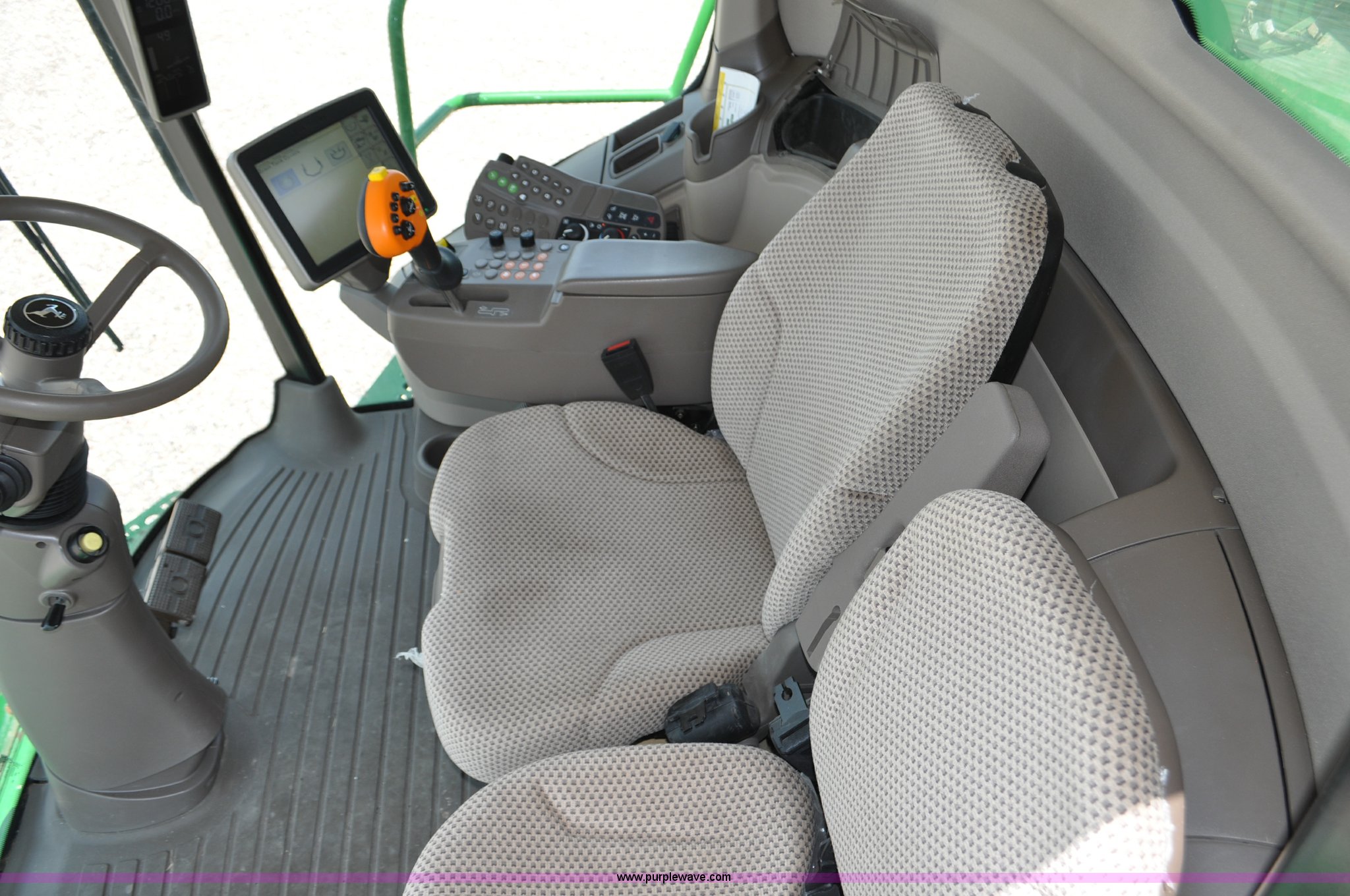 Purple Wave is selling a used Combine in Utah. This item is a 2012 John Deere S670 combine with the following: 615 engine hours on meter, 389 separator hours on meter, John Deere 6090 six cylinder diesel engine, 373 HP, Serial RG6090R017942, ProDrive hydrostatic transmission, 2F-2R gears, Contour Master feeder house, Reverser, Single point hookup, Straw chopper, Differential lock, Premium cab, AC and heat, AM/FM/CD/MP3/XM/weatherband/bluetooth, Air suspension seat, Instructor's seat, Tilt steering wheel, Shades and visors, GS3 2630 mounted on arm rest, Auto trac equipped, No GPS receiver, 12V refrigerator under instructor's seat, Power and heated mirrors, Bin extensions, Work lights, Straw spreader, Greenstar enabled, Yield monitor, Yield mapping, 300 bu. bin capacity, HarvestSmart feedrate control system, Powercast powered tailboard, Small wire concaves, 520/85R42 dual front tires, 600/65R28 rear tires, Operator's manual, Recently replaced batteries, Unit from Mormon Church Farm, Serial 1H0S670SJC0746257, Dealer Tag# U13J0695