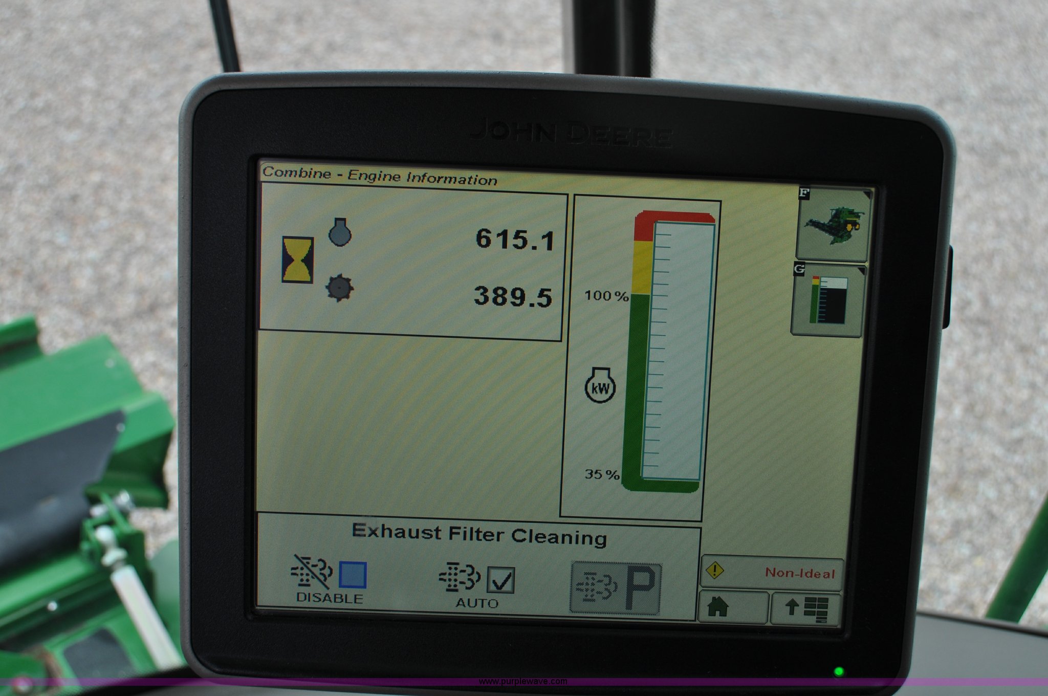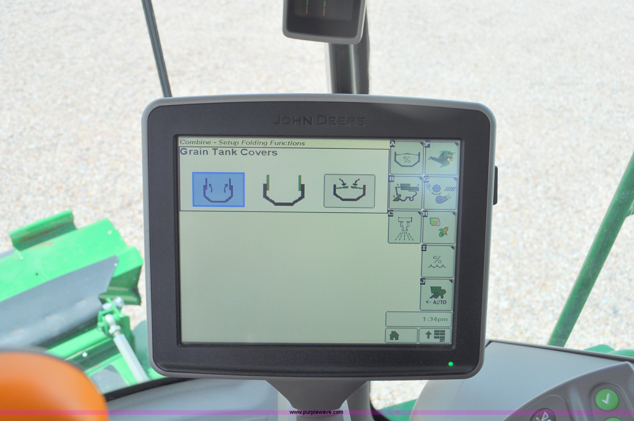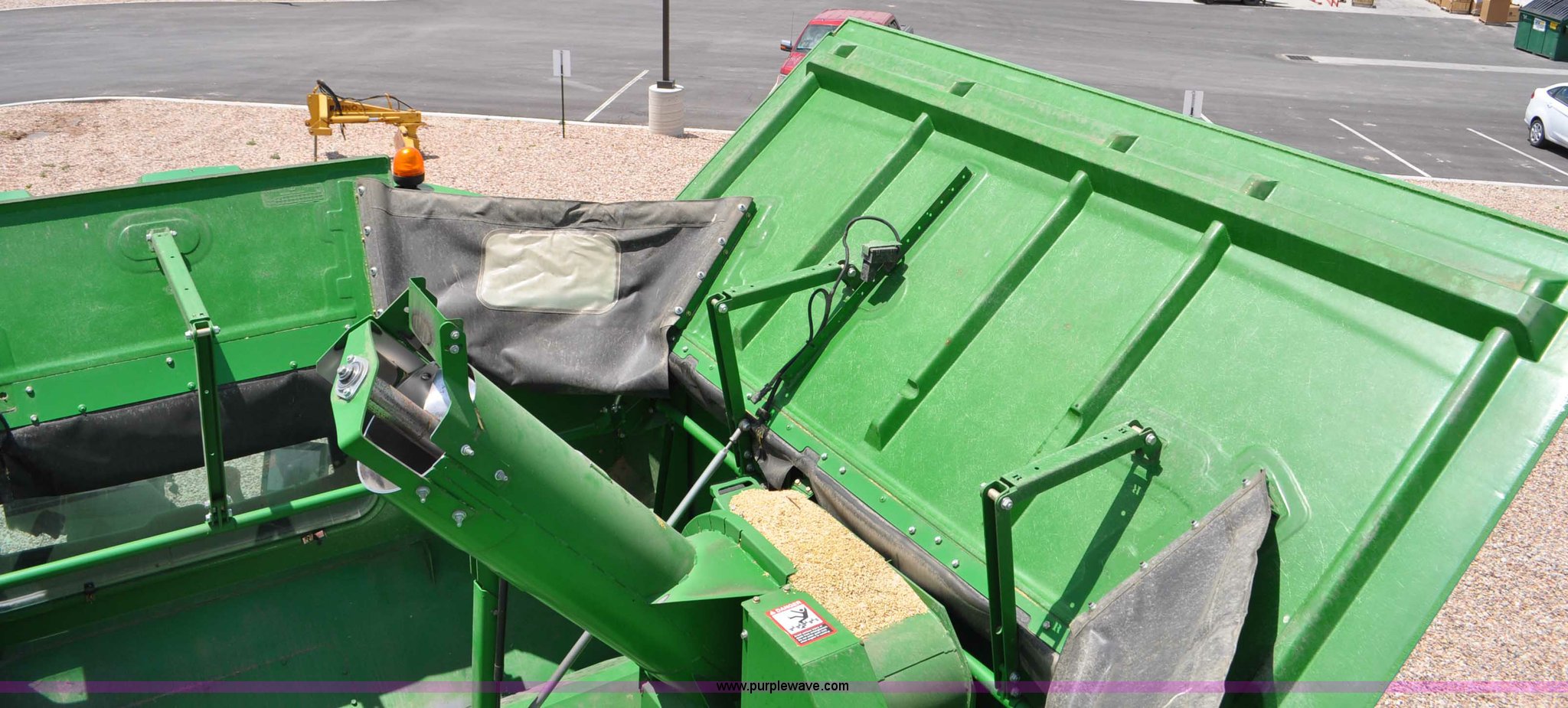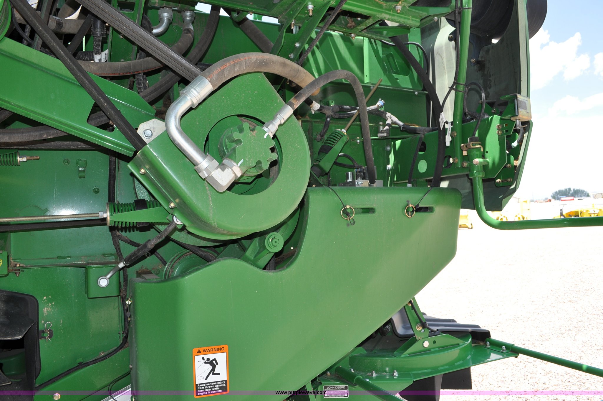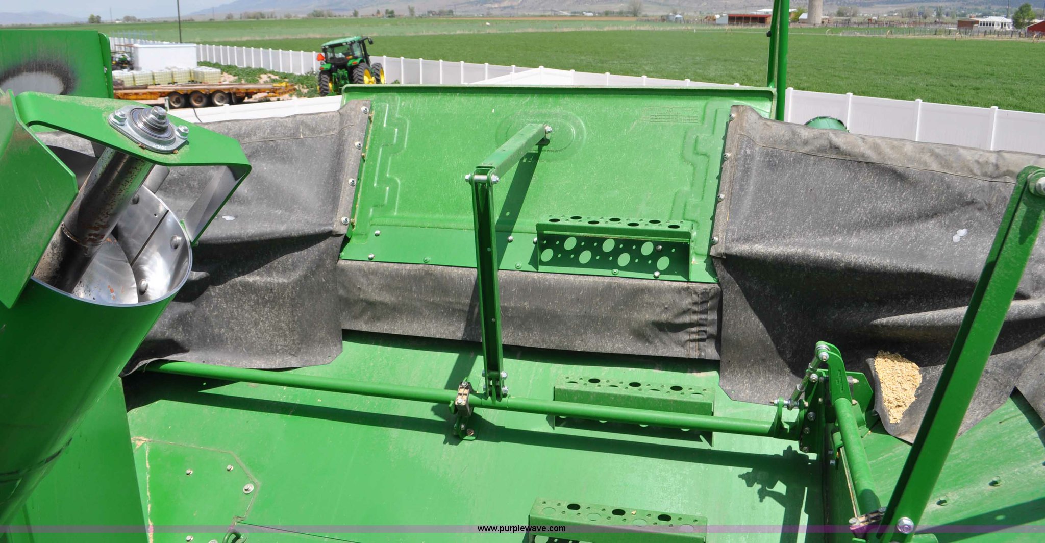 Purple Wave is selling a used Combine in Utah. This item is a 2012 John Deere S670 combine with the following: 615 engine hours on meter, 389 separator hours on meter, John Deere 6090 six cylinder diesel engine, 373 HP, Serial RG6090R017942, ProDrive hydrostatic transmission, 2F-2R gears, Contour Master feeder house, Reverser, Single point hookup, Straw chopper, Differential lock, Premium cab, AC and heat, AM/FM/CD/MP3/XM/weatherband/bluetooth, Air suspension seat, Instructor's seat, Tilt steering wheel, Shades and visors, GS3 2630 mounted on arm rest, Auto trac equipped, No GPS receiver, 12V refrigerator under instructor's seat, Power and heated mirrors, Bin extensions, Work lights, Straw spreader, Greenstar enabled, Yield monitor, Yield mapping, 300 bu. bin capacity, HarvestSmart feedrate control system, Powercast powered tailboard, Small wire concaves, 520/85R42 dual front tires, 600/65R28 rear tires, Operator's manual, Recently replaced batteries, Unit from Mormon Church Farm, Serial 1H0S670SJC0746257, Dealer Tag# U13J0695