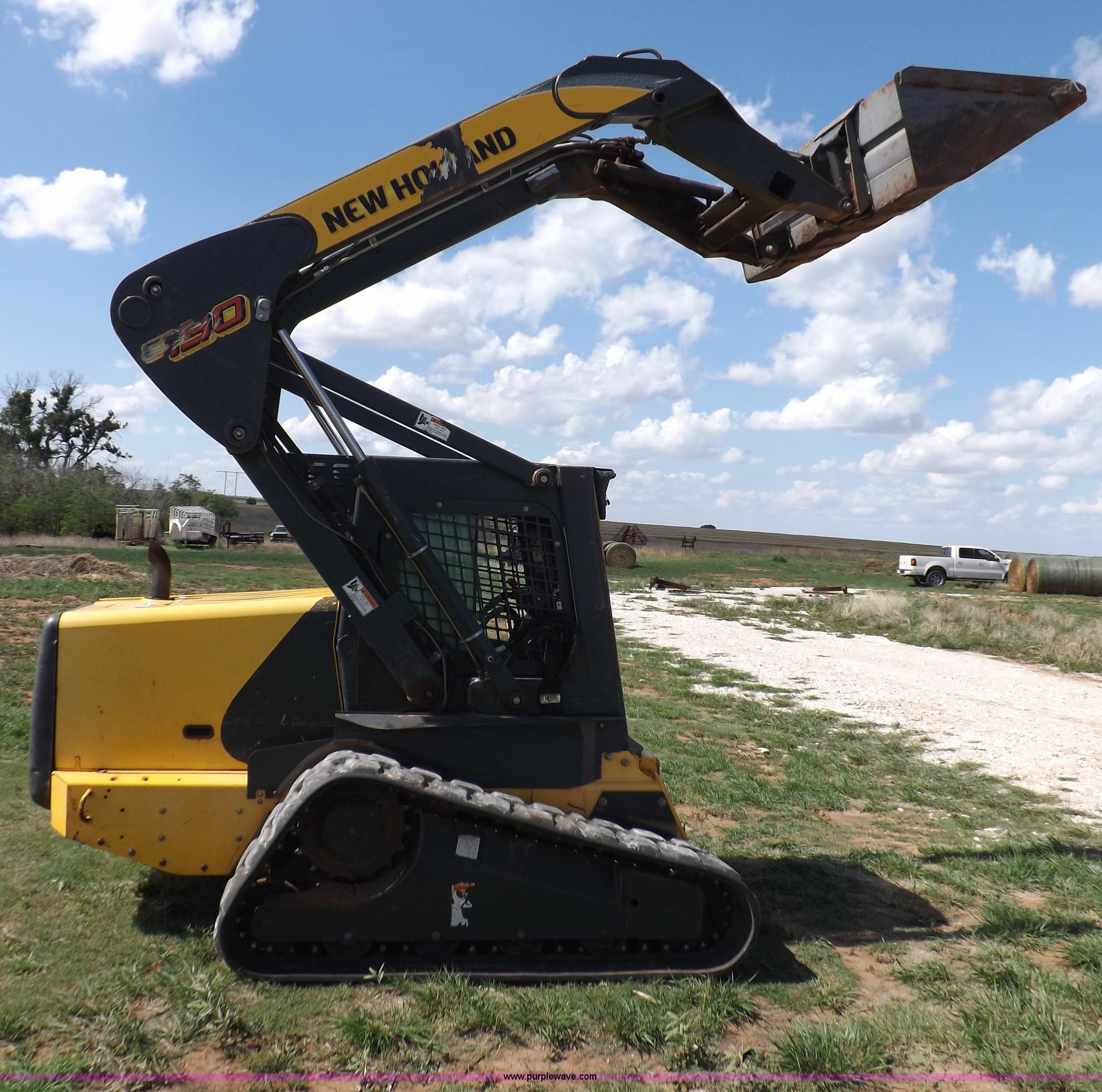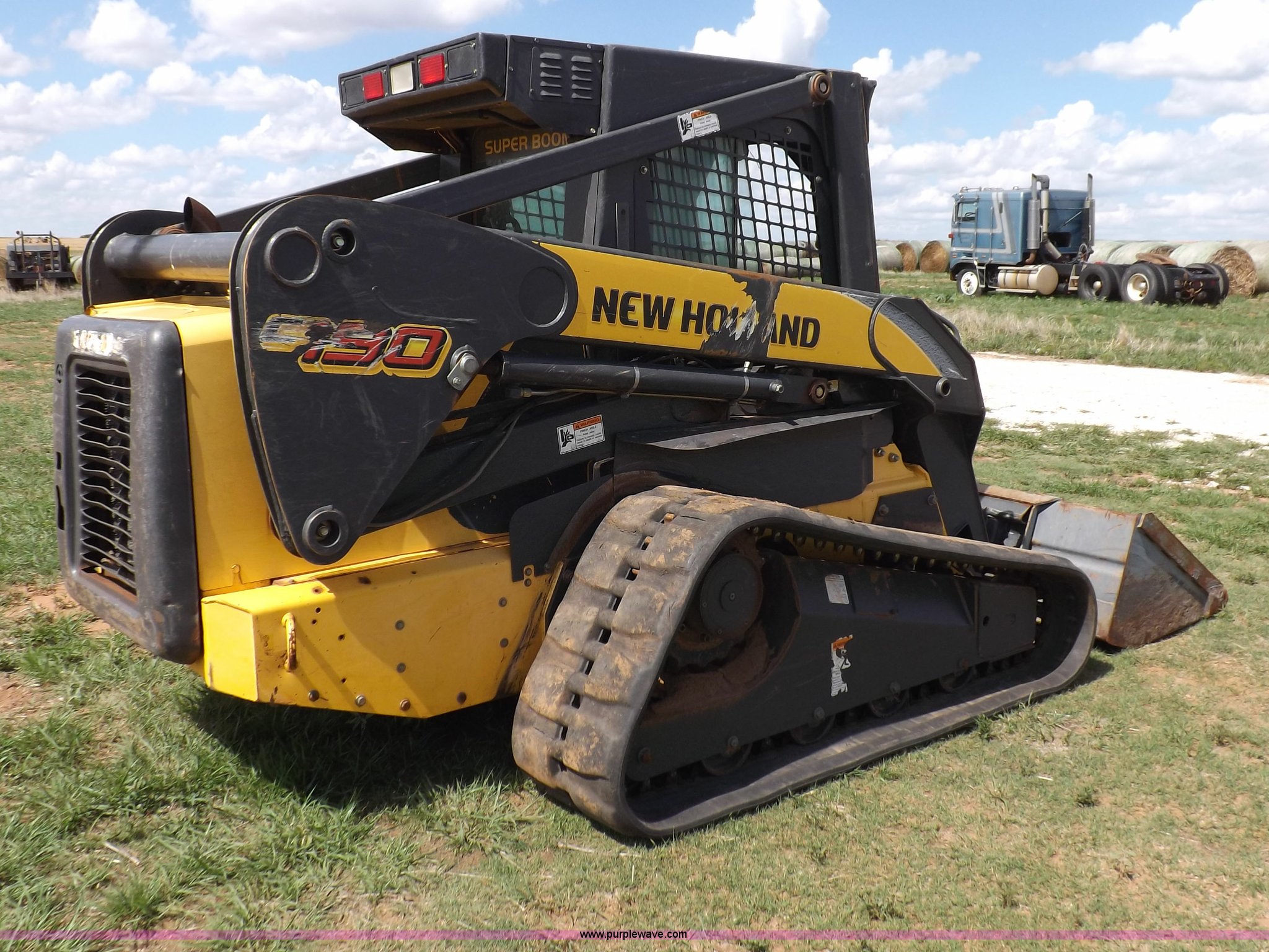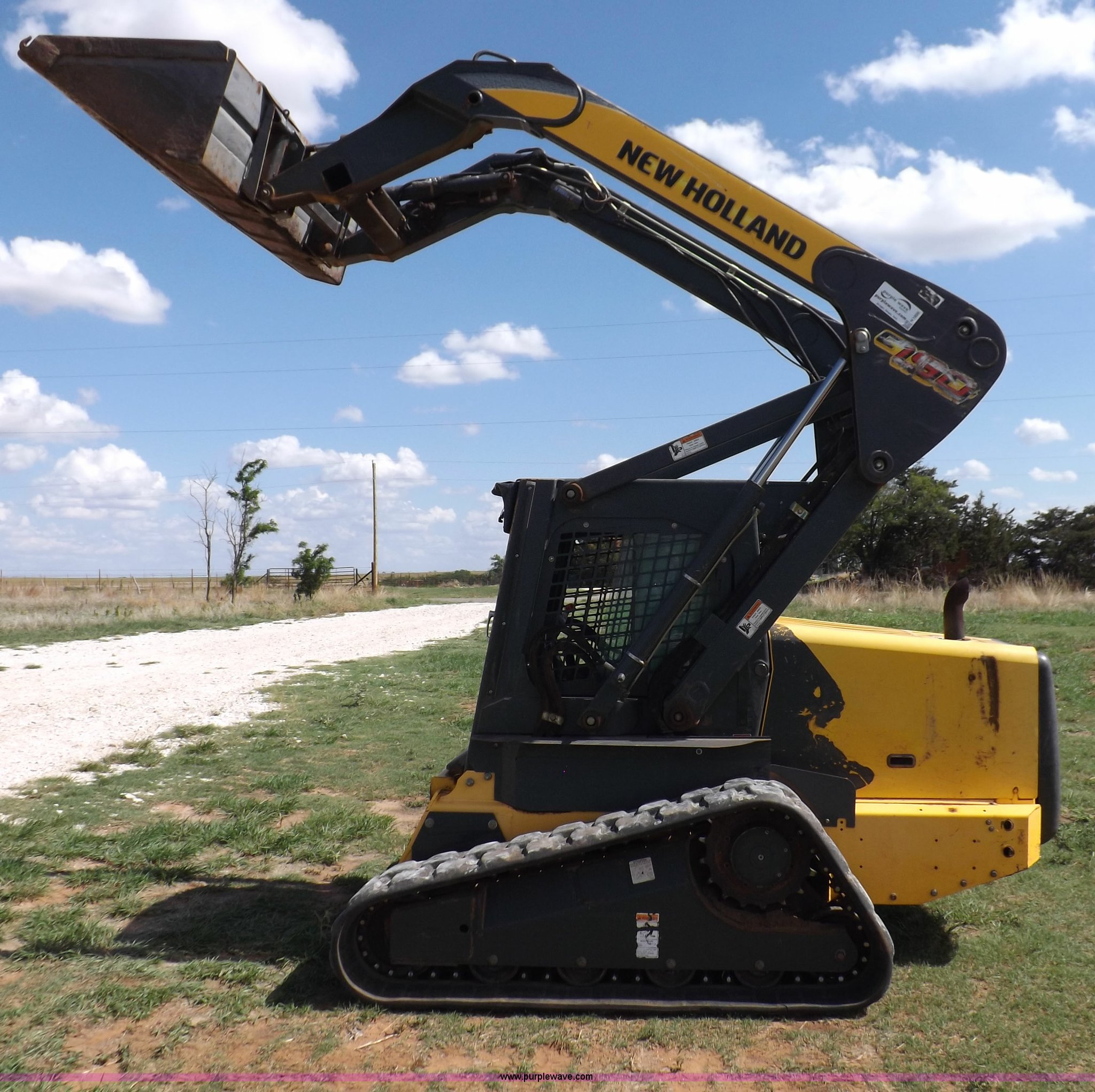 Purple Wave is selling a used Tracked Skid Steer Loader in Oklahoma. This item is a 2006 New Holland C190 track skid steer with the following: 985 hours on meter, Hours may vary, still in use, New Holland 445/M2 four cylinder diesel engine, 80 HP, Two speed hydrostatic transmission, Two speed inoperable, Enclosed cab, AC and heat, Hand and foot controls, Spring suspension seat, High-Flow auxiliary hydraulics, Manual quick coupler, 77"W bucket, Weld-on cutting edge, (4) bottom rollers, Bridgestone 17.5"W tracks, 450x55x86, 9,811 lbs. base operating weight, Door glass missing, AC does not work, Wiper arm missing, Front lights missing, Serial LMU0C190-N6M443506