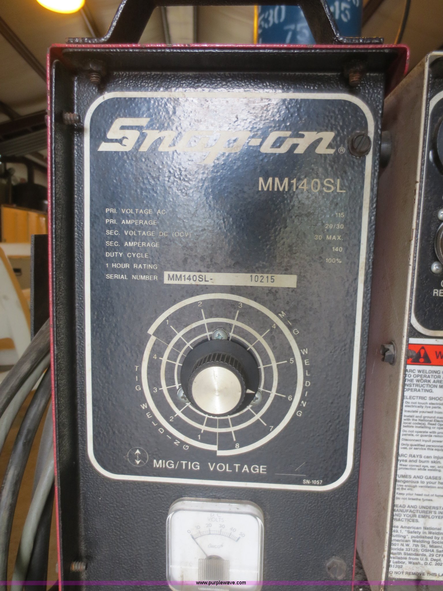 Purple Wave is selling a used Welder (Manual) in Kansas. This item is a Snap-On MM140SL mig and tig welder with the following: 110V, 20' ground lead, 15' mig lead, Bottle not included, No tig attachment, Serial MM140SL-10215