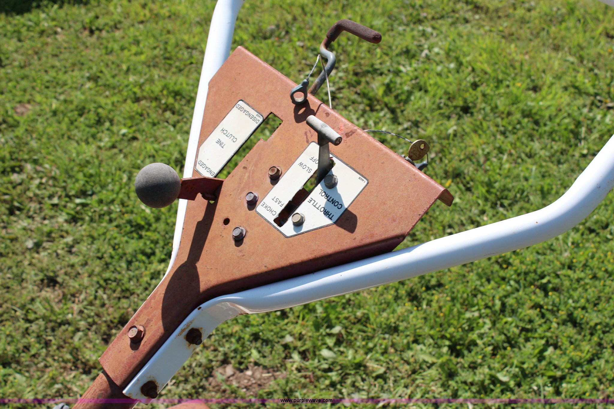 Purple Wave is selling a used Lawn and Garden in Kansas. This item is a Snapper R8000 tiller with the following: Briggs & Stratton 8 HP gas engine, Four speed transmission, 18"W, Gas tank is broken