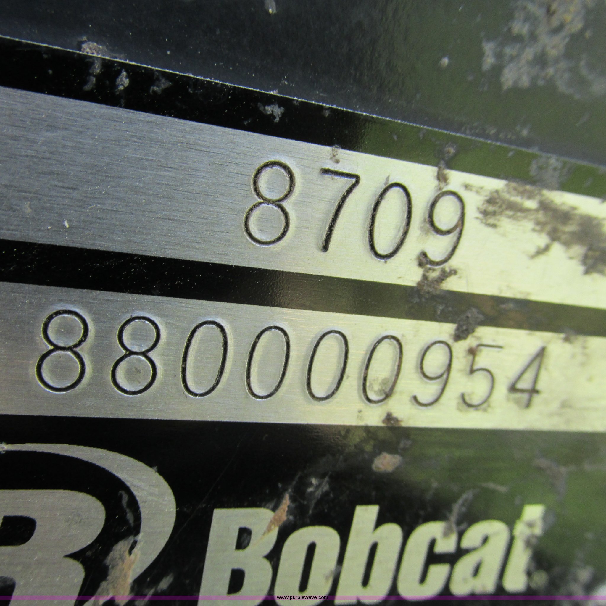 Purple Wave is selling a used Skid Steer Attach. in Missouri. This item is a Bobcat 8709 skid steer backhoe attachment with the following: Quick attach 17"W bucket, (4) bolt-on teeth, Hydraulic stabilizers, Seat torn, Serial 880000954