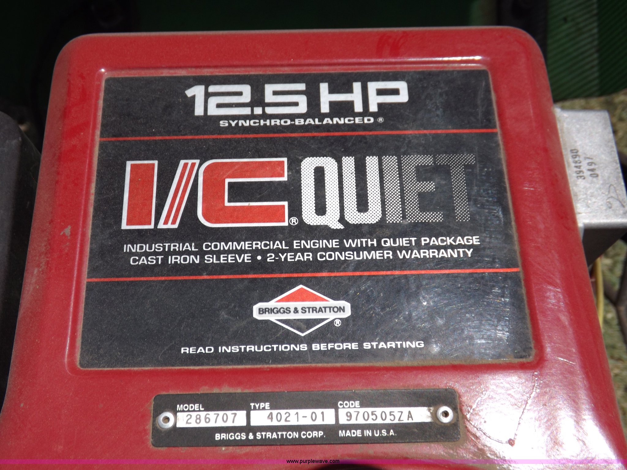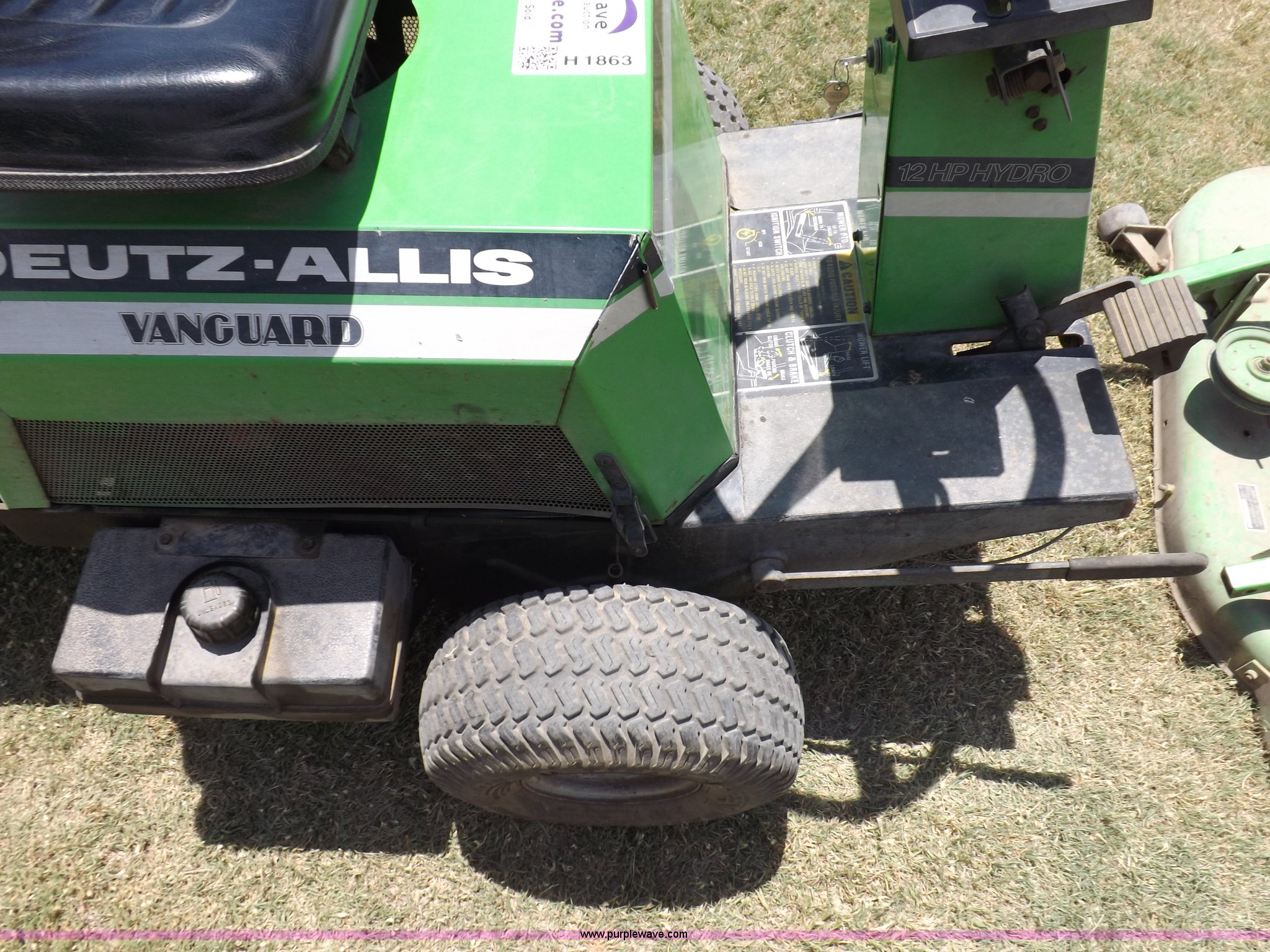 Purple Wave is selling a used Commercial Turf Mower in Kansas. This item is a Deutz Allis lawn mower with the following: Model FC124214, 36" cut, Briggs & Stratton 12.5 HP engine, Hydrostatic transmission, Rear counter weights, 15x6-6 drive tires, 4.10x3.5-4 rear tires, Recently replaced battery, Additional steering cables included, Serial 032616