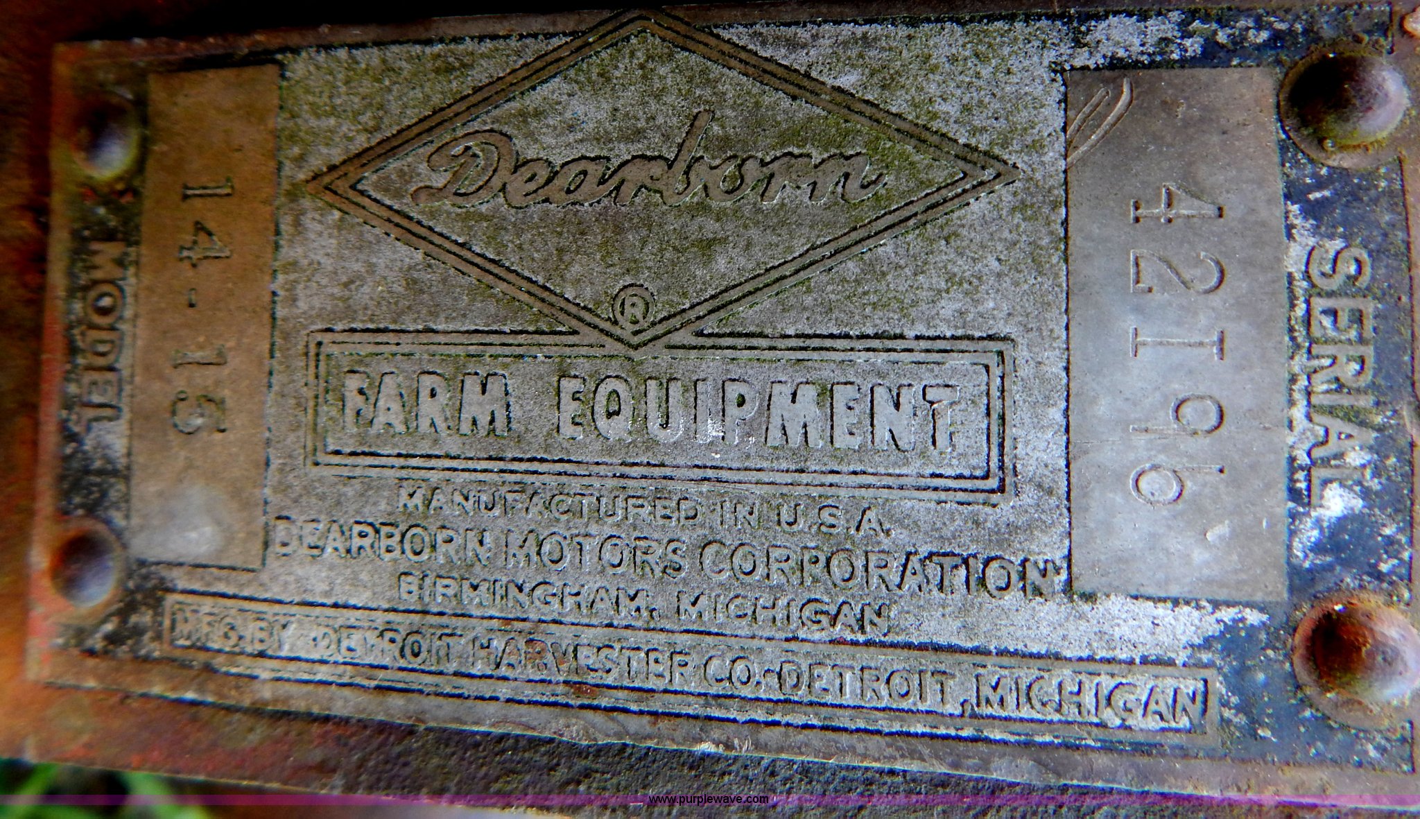 Purple Wave is selling a used Disc or Sickle Mower in Missouri. This item is a Dearborn 14-15 sickle mower with the following: 6'W, Three point, Unknown operating condition, Serial 42I96
