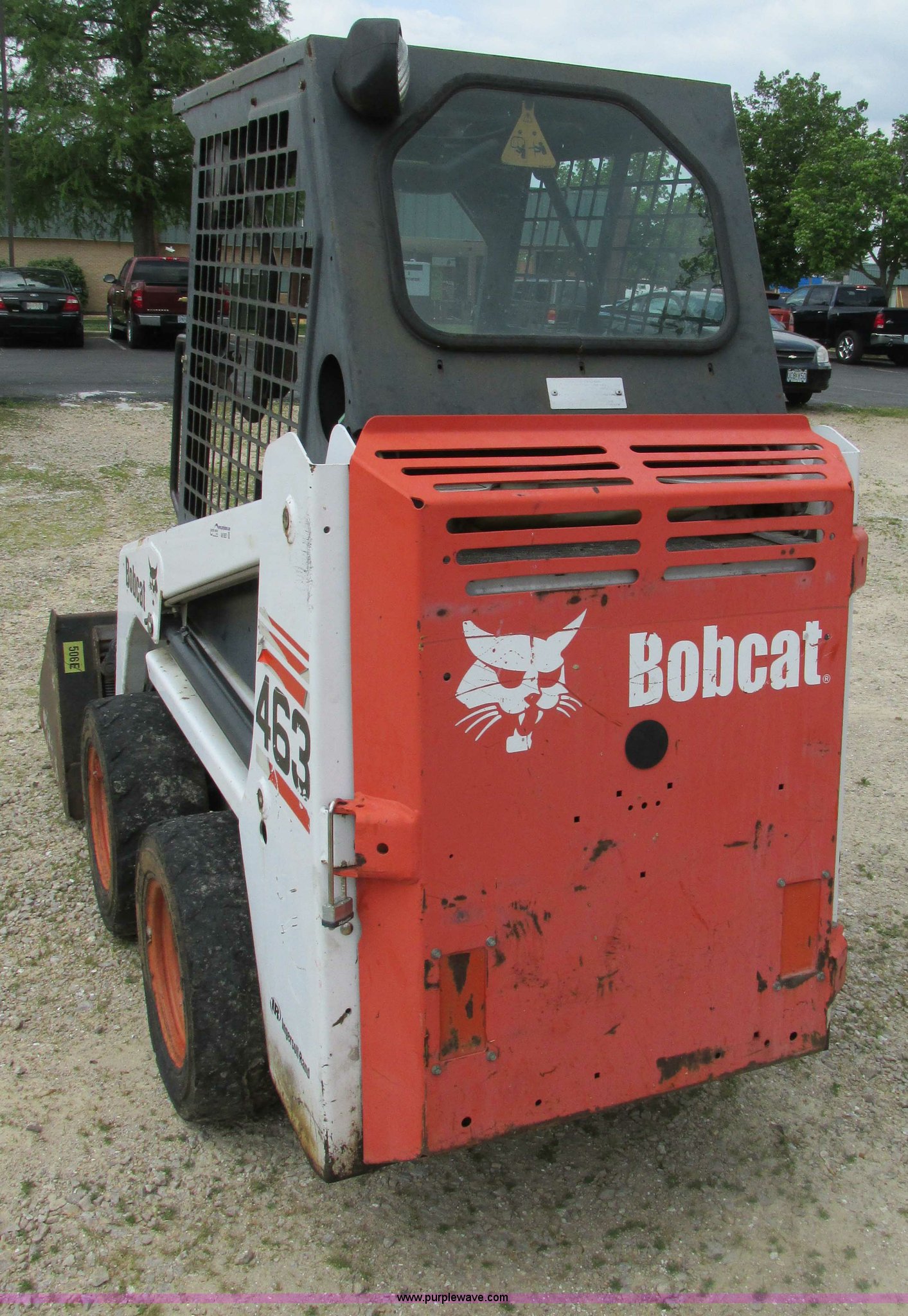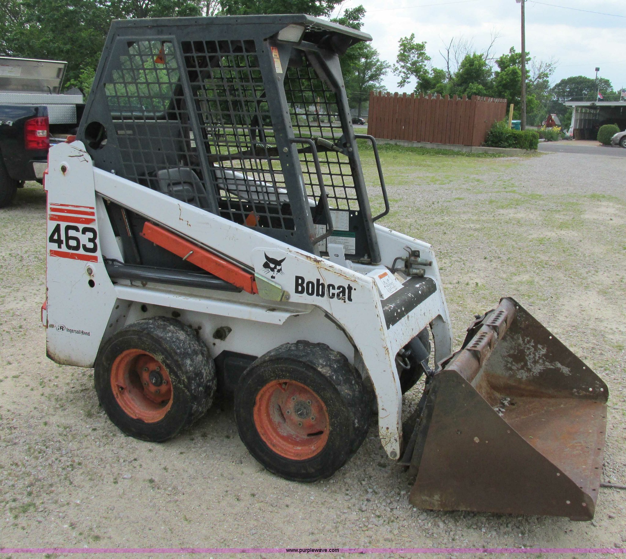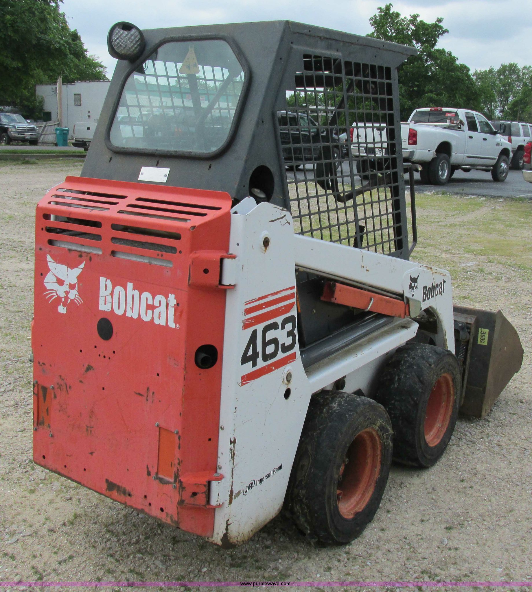 Purple Wave is selling a used Skid Steer Loader in Missouri. This item is a 2004 Bobcat 463 skid steer with the following: 506 actual hours, Kubota diesel engine, 22.5 HP, Hydrostatic transmission, Traction lock, BICS system, Hand and foot controls, Front and rear work lights, 6.5 mph travel speed, 44"W bucket, Quick attach, Cutting edge, Auxiliary hydraulics, 700 lbs rated operating capacity, 1,455 lbs tipping load, 6.5 gallon fuel tank, 8.50-12 foam-filled tires, Tires worn, has rough tread spots, 2,708 lbs. base operating weight, Serial 522212657