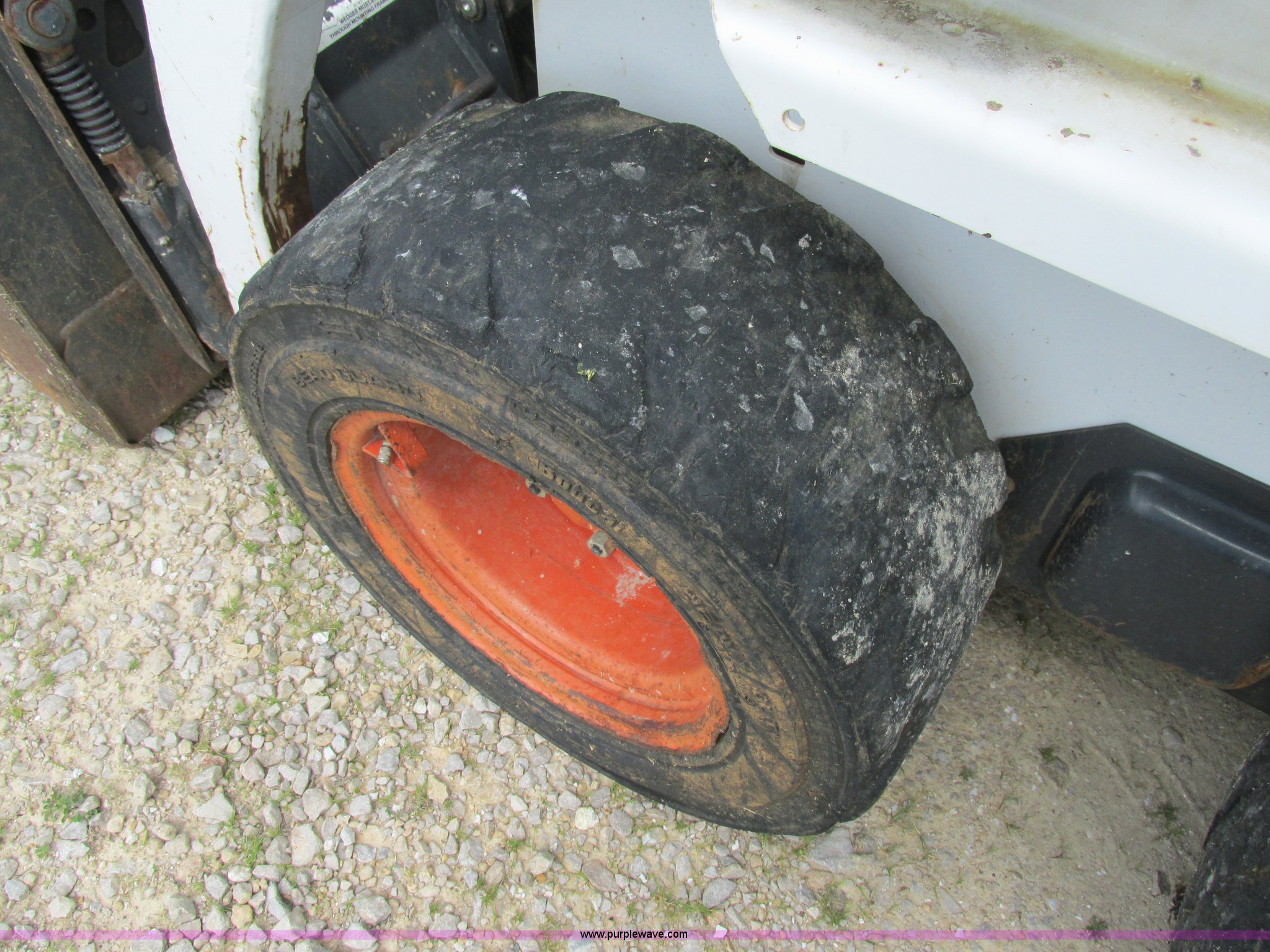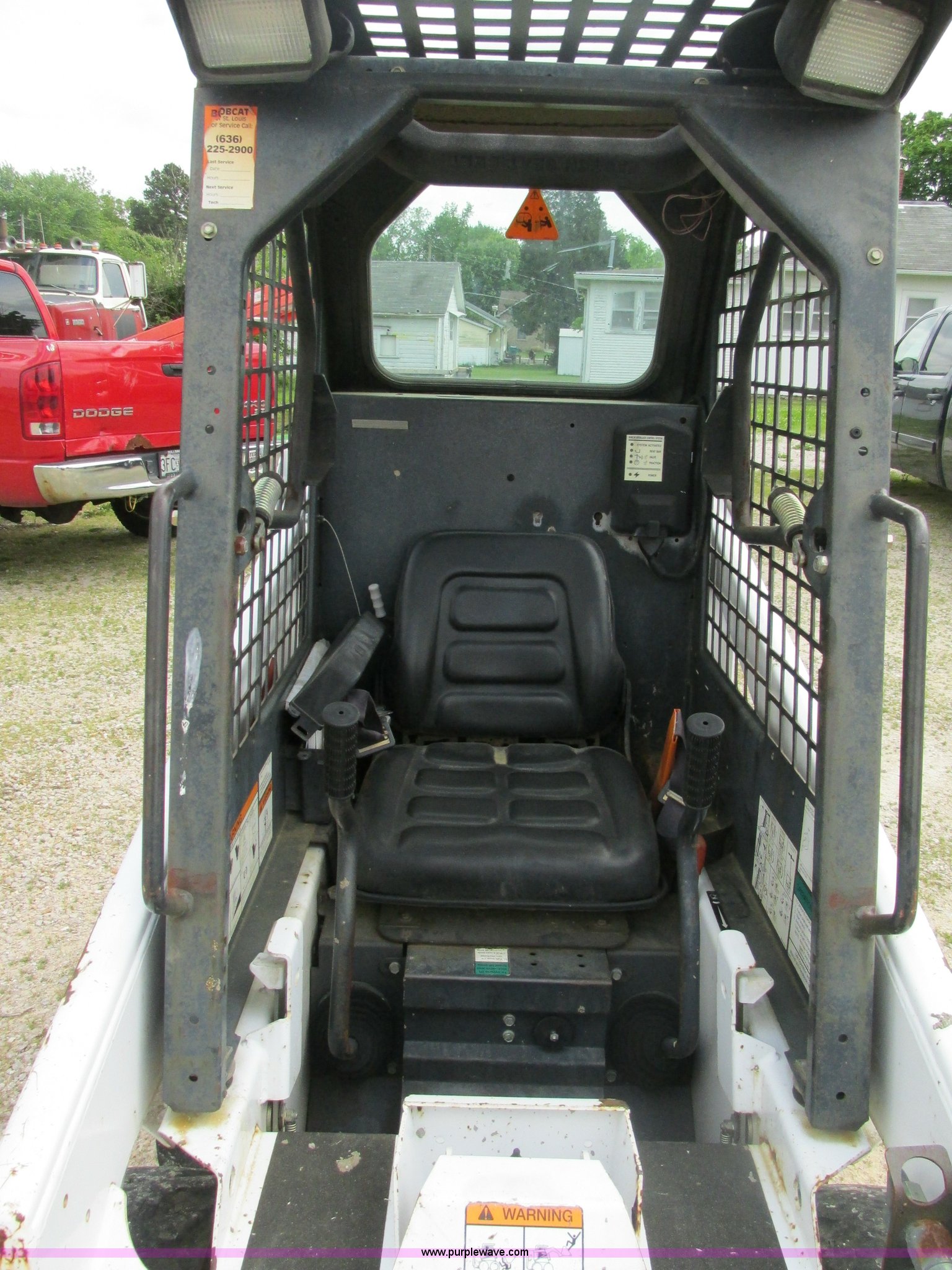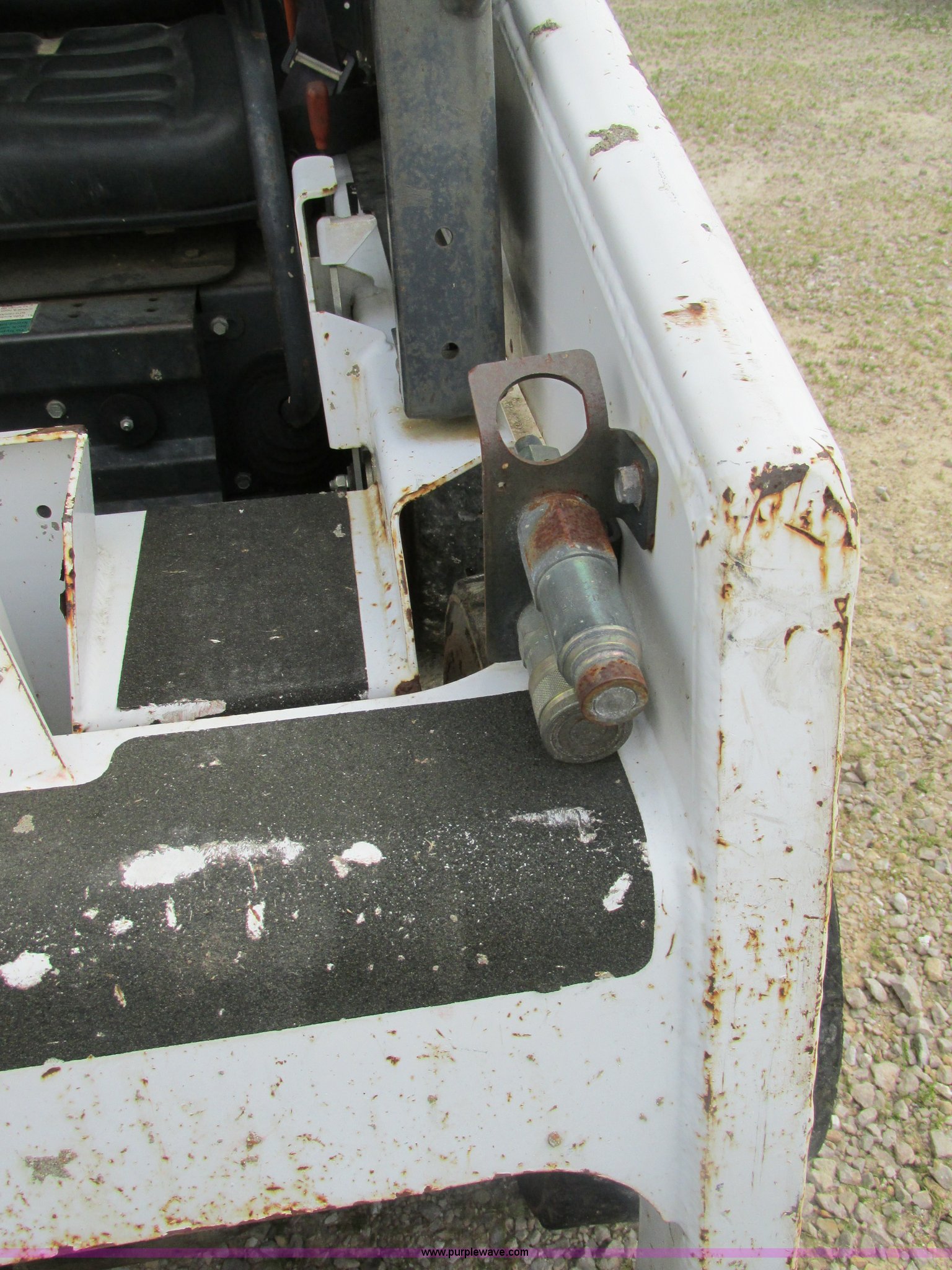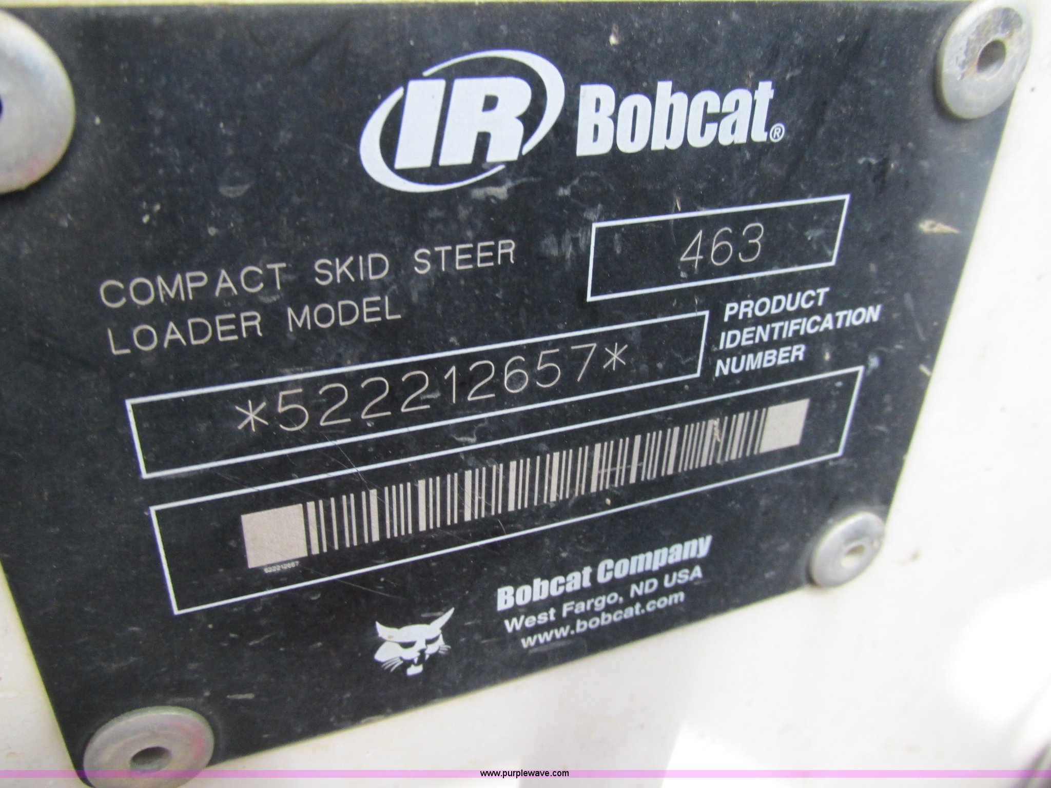 Purple Wave is selling a used Skid Steer Loader in Missouri. This item is a 2004 Bobcat 463 skid steer with the following: 506 actual hours, Kubota diesel engine, 22.5 HP, Hydrostatic transmission, Traction lock, BICS system, Hand and foot controls, Front and rear work lights, 6.5 mph travel speed, 44"W bucket, Quick attach, Cutting edge, Auxiliary hydraulics, 700 lbs rated operating capacity, 1,455 lbs tipping load, 6.5 gallon fuel tank, 8.50-12 foam-filled tires, Tires worn, has rough tread spots, 2,708 lbs. base operating weight, Serial 522212657