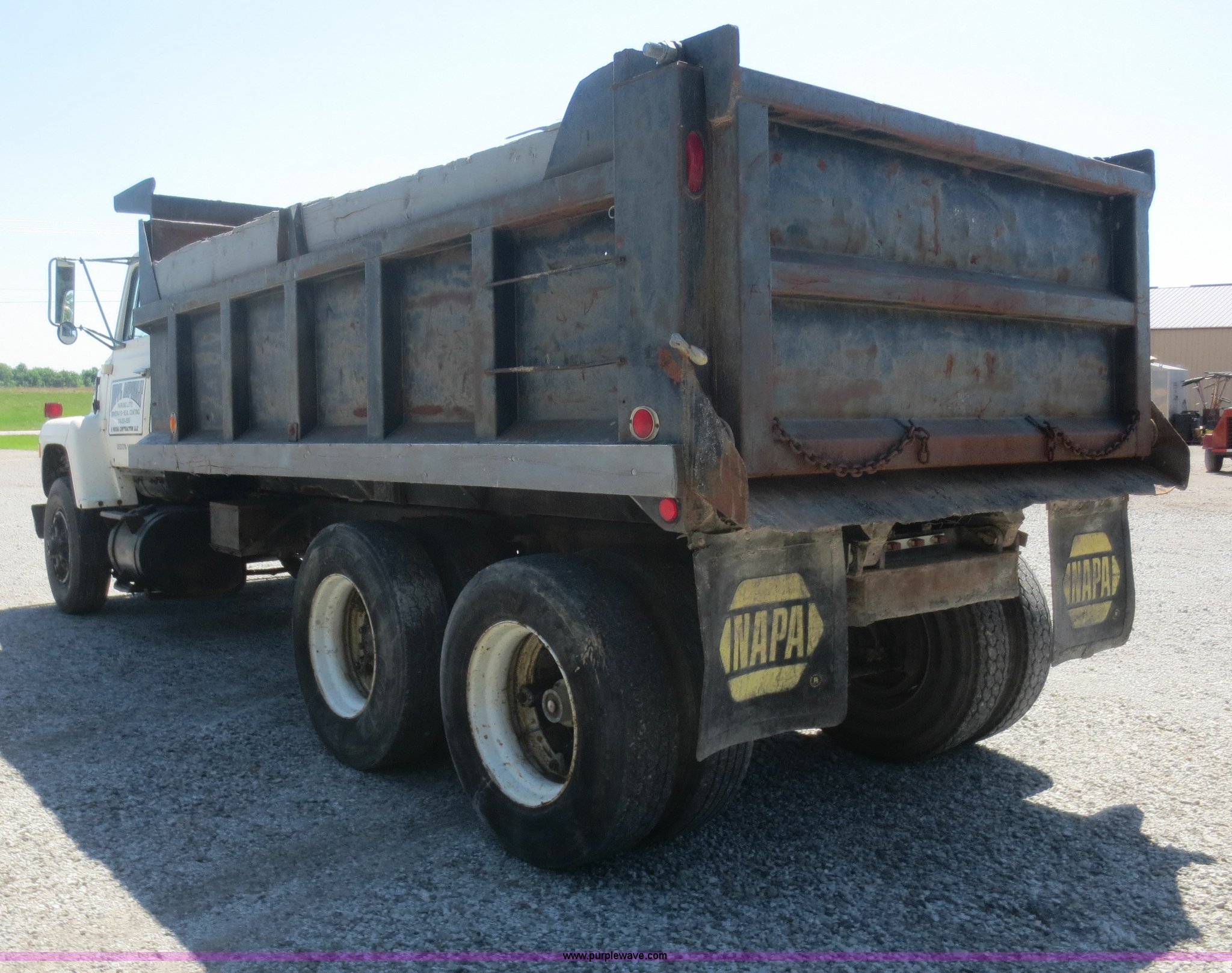 Purple Wave is selling a used Construction Dump Truck in Kansas. This item is a 1976 Ford 8000 dump truck with the following: 73,948 miles on odometer, Caterpillar 3208 diesel engine, 10 speed manual transmission, Twin screw, Heat, AM/FM/cassette, Air suspension seat, PTO, Master battery disconnect switch, 15'L dump bed, Air operated end gate, Single ram three stage hoist, Dual fuel tanks, Spring suspension, Air brakes, 295/75R22.5 tires, Left hood mount needs repair