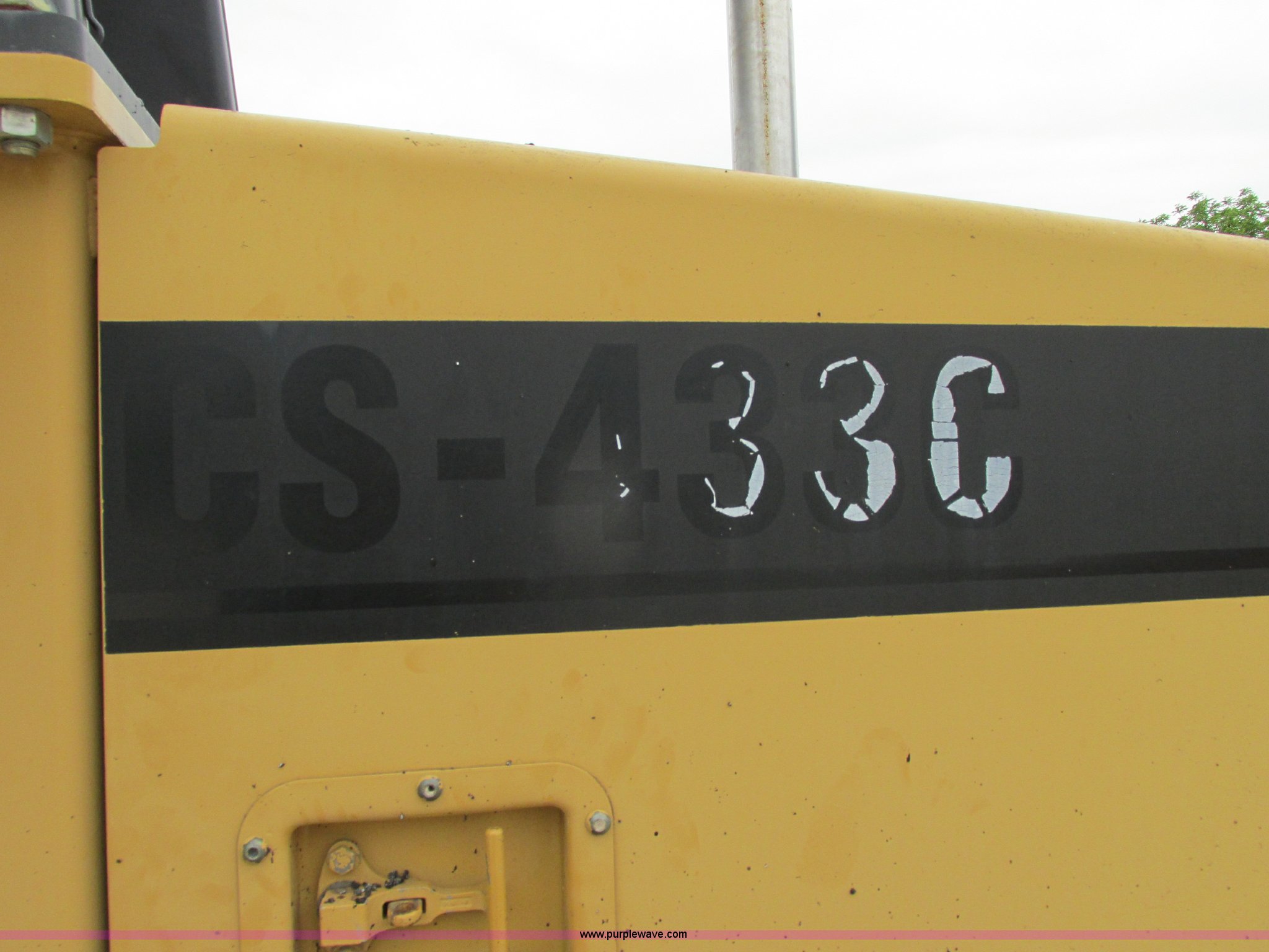 1996 Caterpillar CS-433C vibratory roller. 1,403 hours on meter, Caterpillar 3054 turbo diesel engine 100 HP, Hydrostatic transmission Hi-Lo, OROPS, Spring suspension seat, 66"W x 48" diameter drum, 14.9 x 24 tires, Service records available, One owner, Serial 5HK38478. Benton County Road One District. 30503 Highway MM. Warsaw, MO 65355