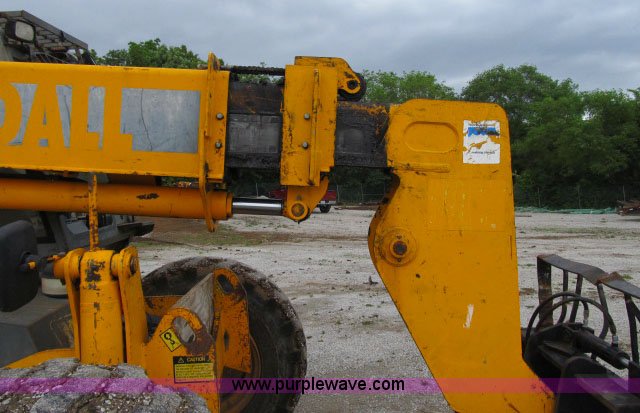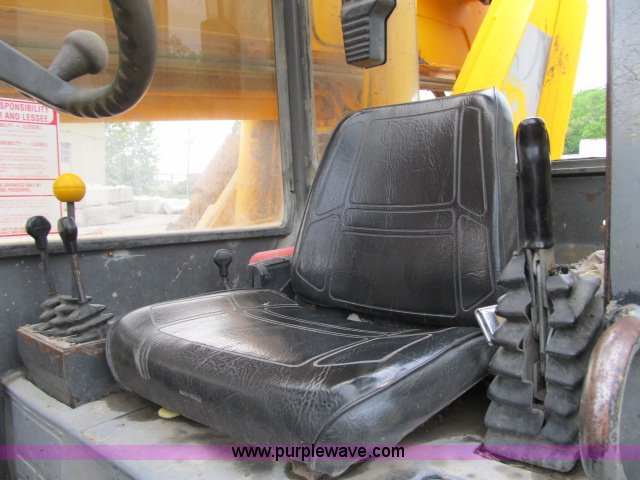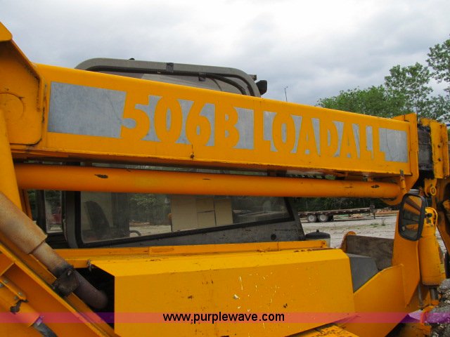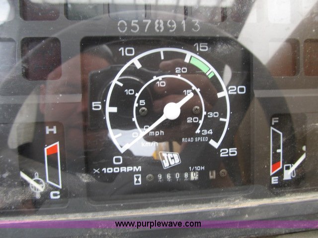 Purple Wave is selling a used Telehandler in Missouri. This item is a 1996 JCB 506B telehandler with the following: 9,608 hours on meter, Perkins four cylinder diesel engine, 75 HP, Powershift transmission, 4F-4R gears, Four wheel drive, ROPS, Crab steer, Circle steer, 6,000 lbs maximum lift capacity, 36' reach length, Three boom sections, 48"L forks, 4'W carriage, Auxiliary hydraulics, Tilt carriage, Rotating carriage, Hydraulic leveling, Quick attach, 15.5-25 tires, 21,040 lbs. base operating weight, Alternator replaced at 9,603 hours, Torque converter and pump replaced at 9,510 hours, Starter replaced at 7,660 hours, Hydraulic pump replaced at 7,812 hours, Door latch broken, Service records available, Serial SLP506B0VE0578913
