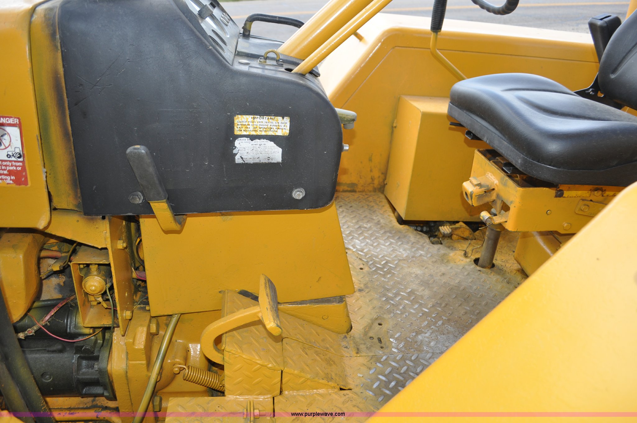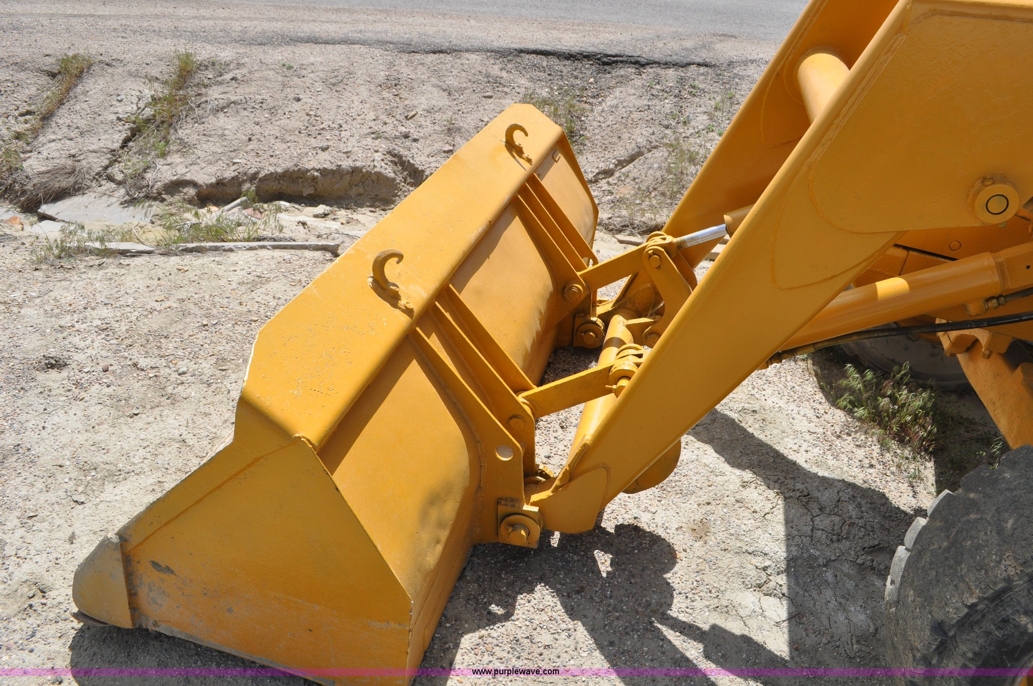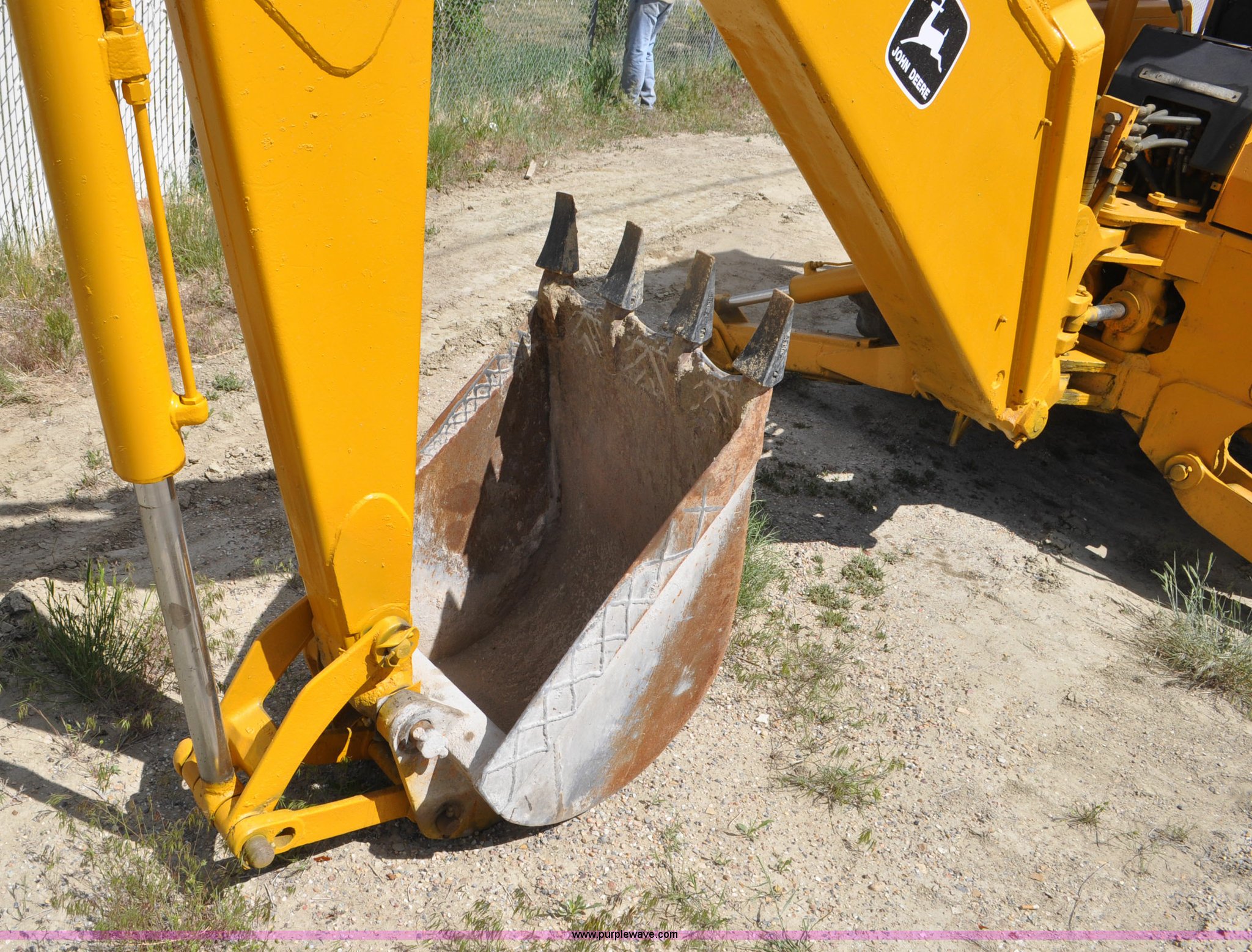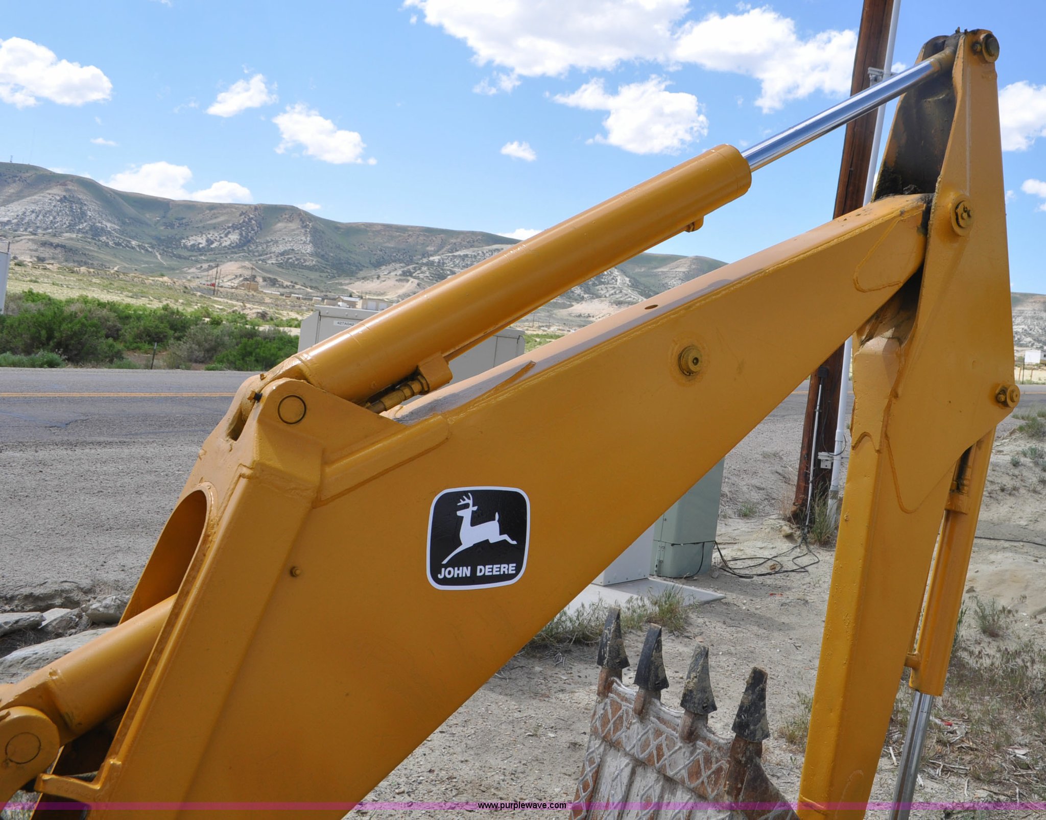 Purple Wave is selling a used Tractor Loader Backhoe in Wyoming. This item is a John Deere 500C backhoe with the following: John Deere four cylinder diesel engine, Serial 284355R, Powershift transmission, 8F-4R gears, Canopy, Spring suspension seat, Wobble stick backhoe controls, 24"W toothed backhoe bucket, 88"W loader bucket, Bolt-on cutting edge, 14-17.5 front tires, Denman 18.4-28 rear tires, Serial 154869B